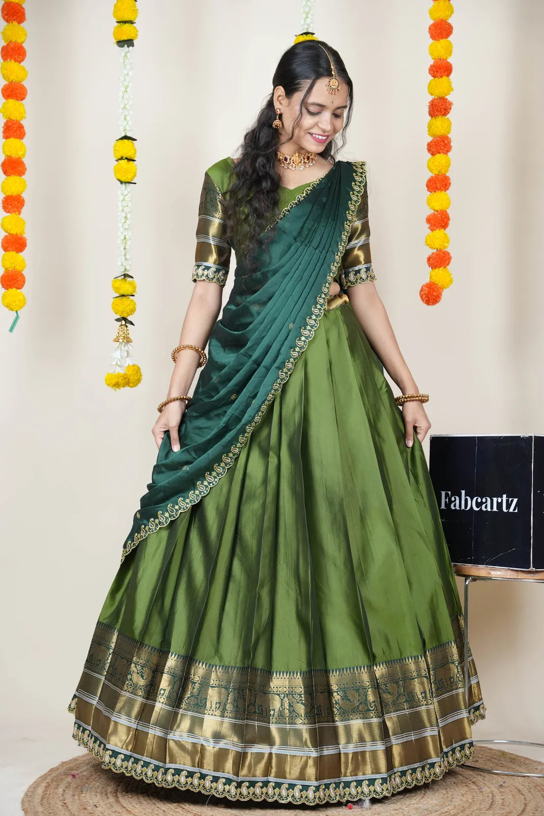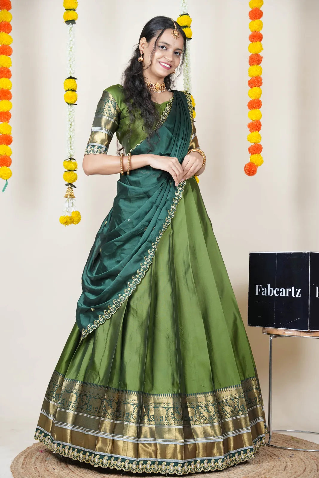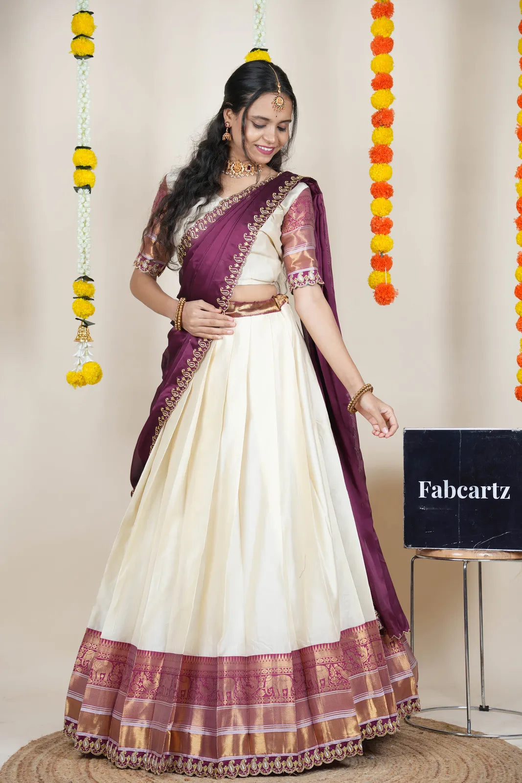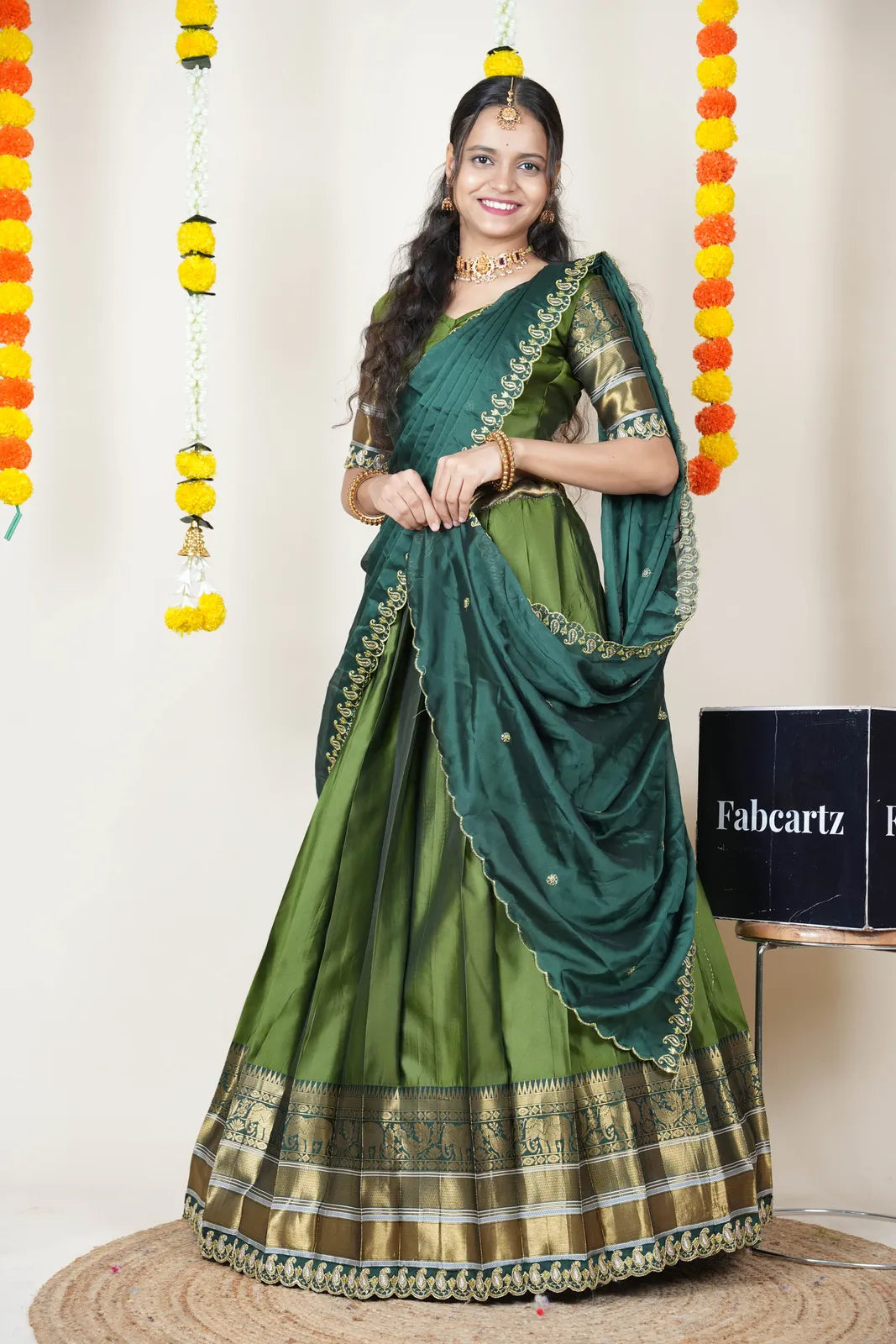 (Adhira) South Indian Festival Traditional Half Saree with Embroidered Blouse & Dupatta