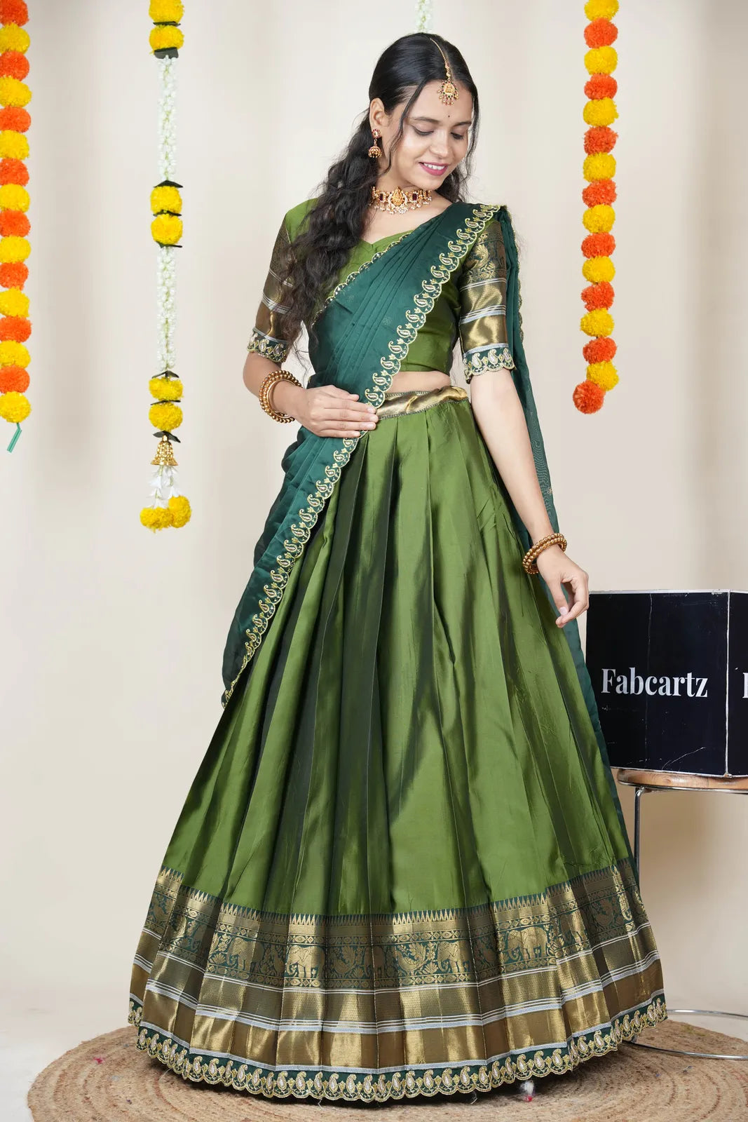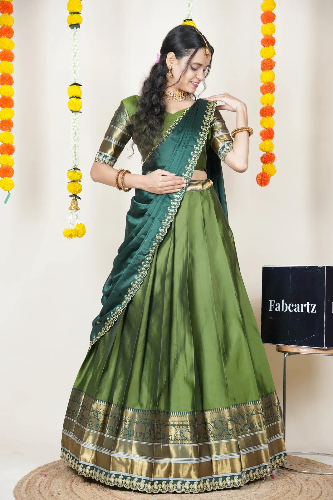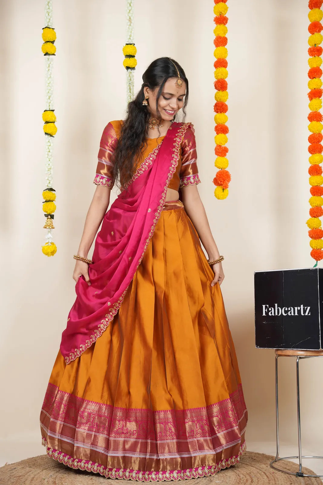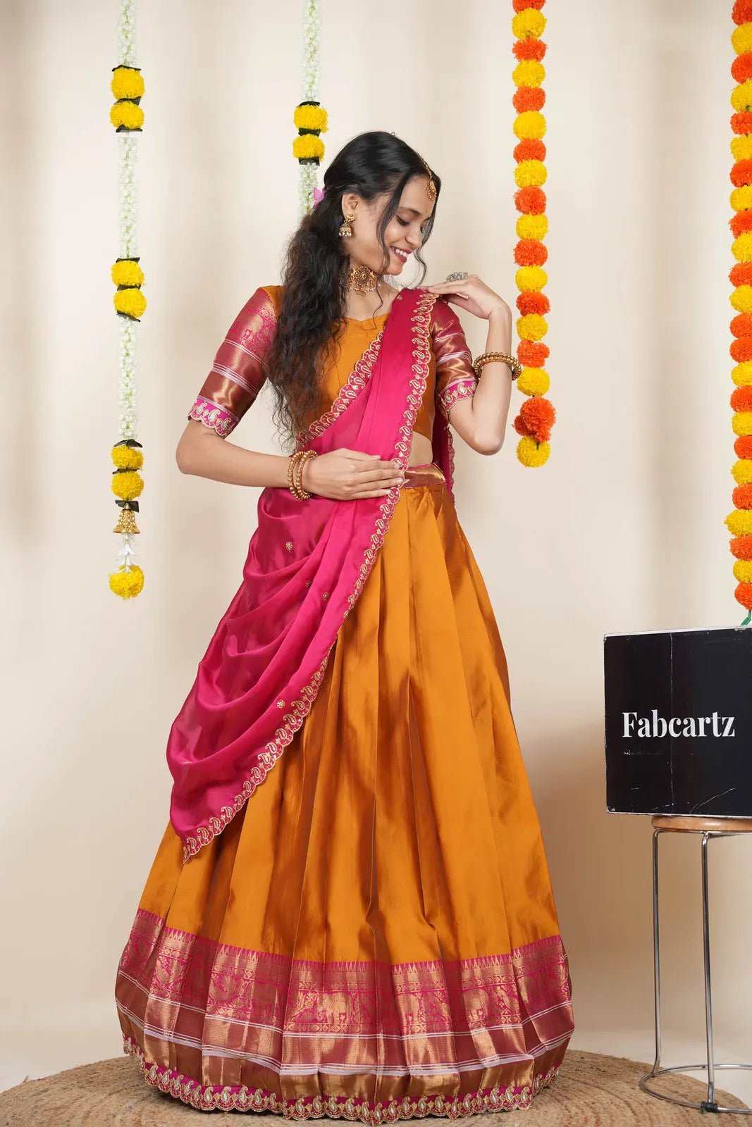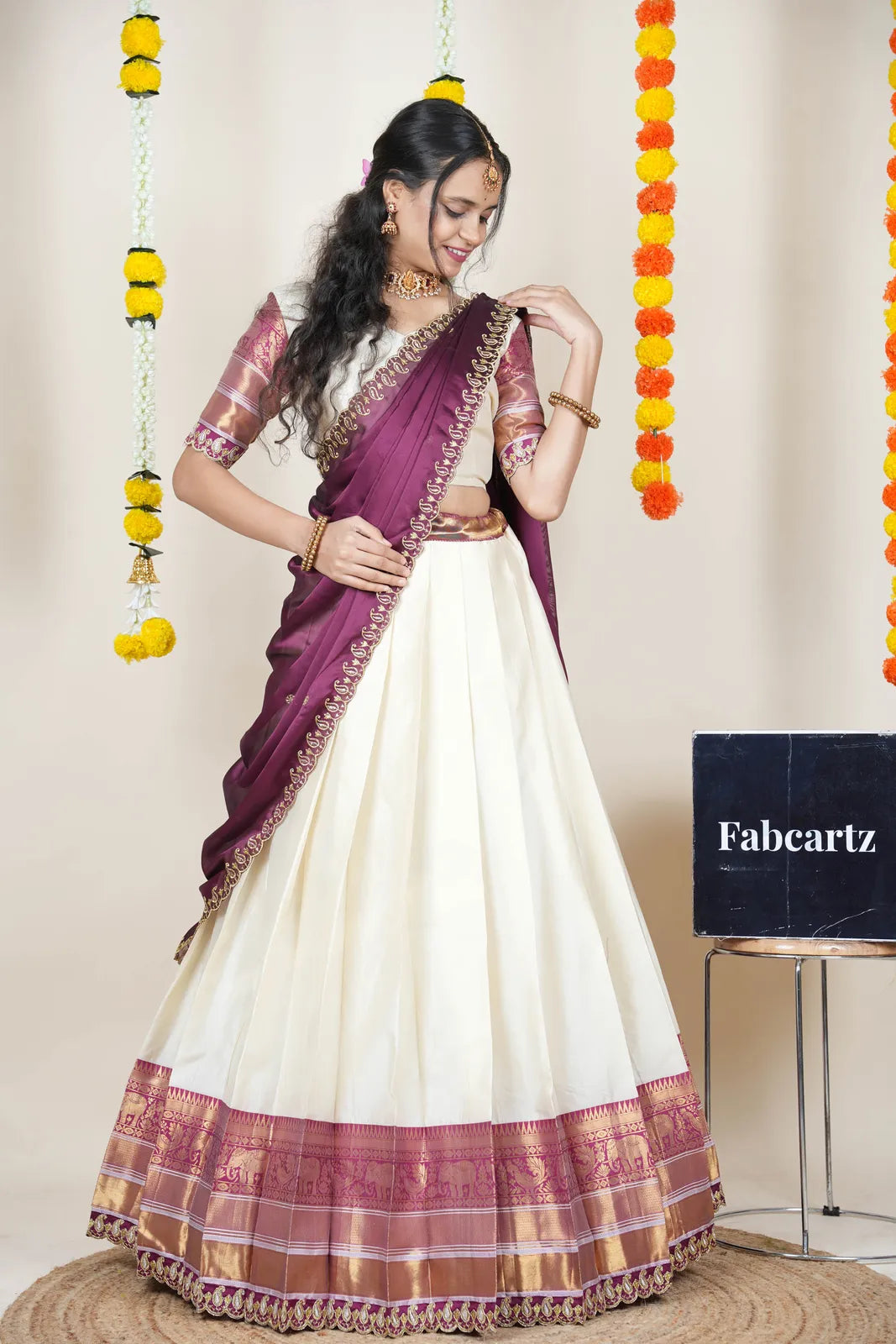 (Adhira) South Indian Festival Traditional Half Saree with Embroidered Blouse & Dupatta