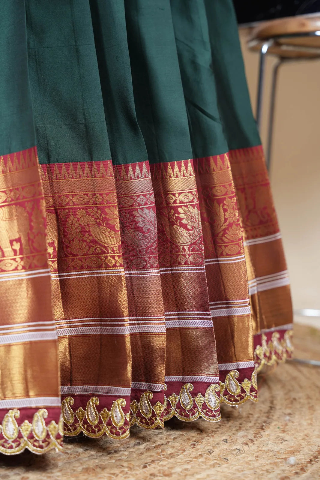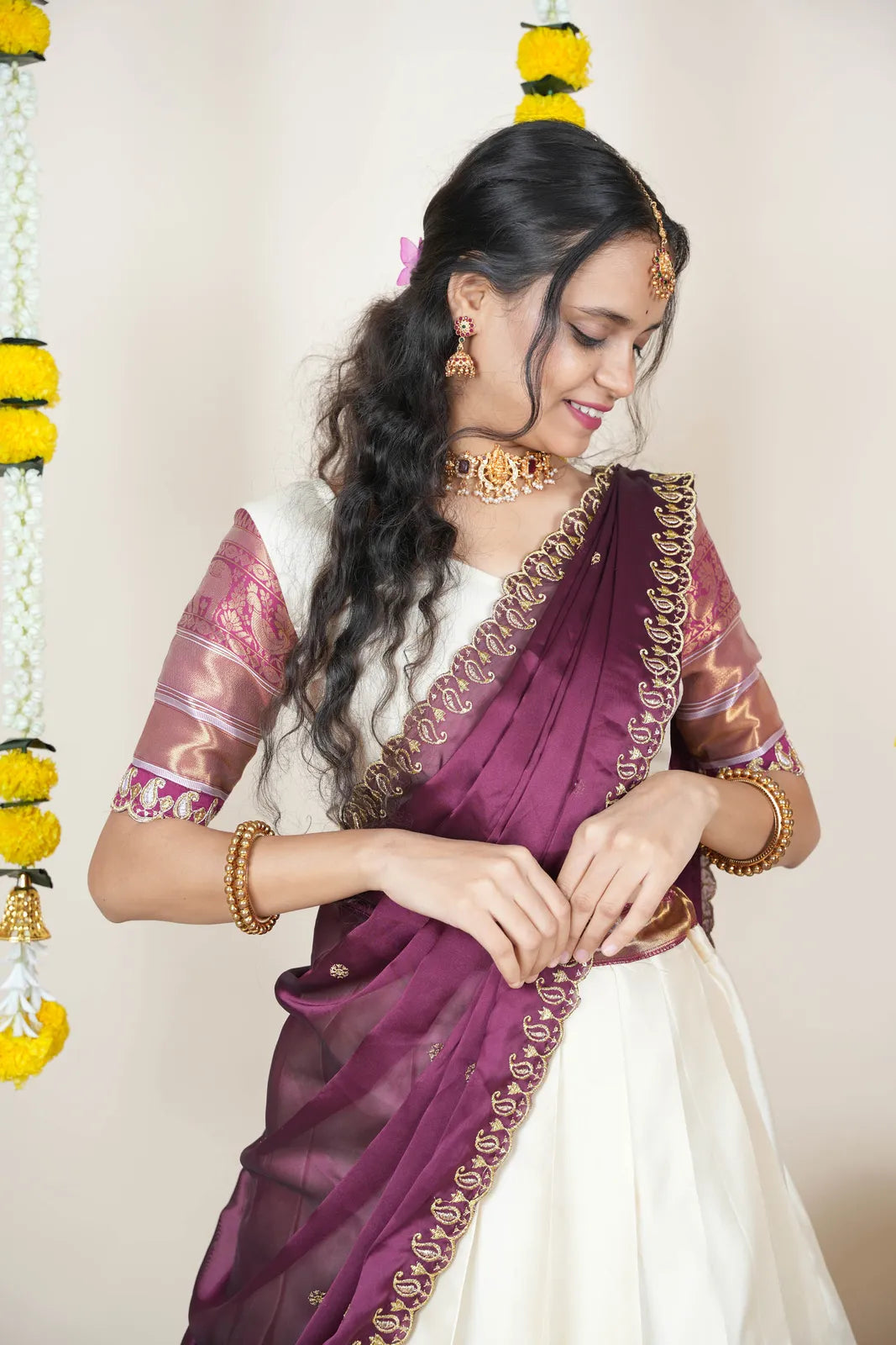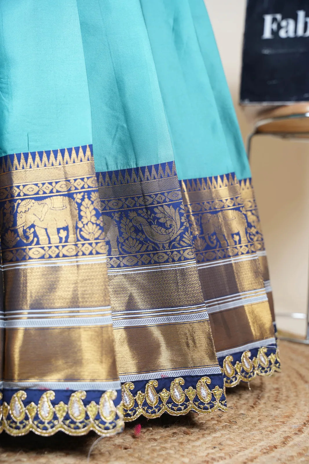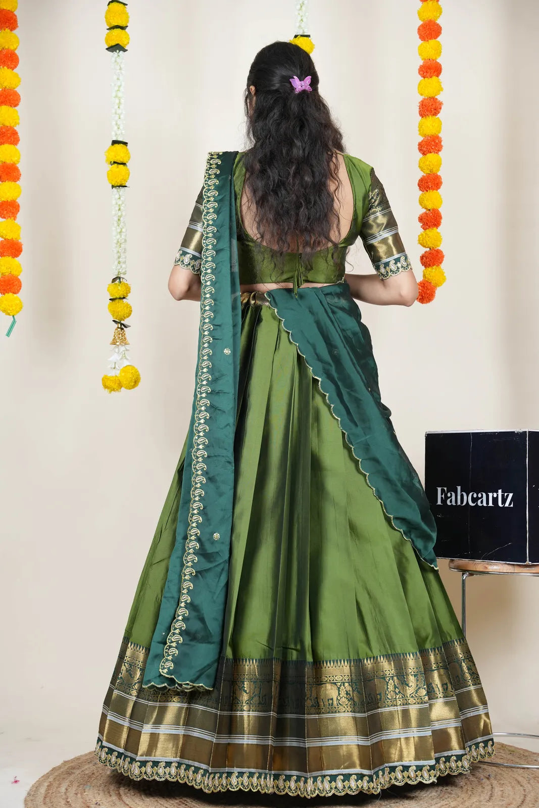 (Adhira) South Indian Festival Traditional Half Saree with Embroidered Blouse & Dupatta