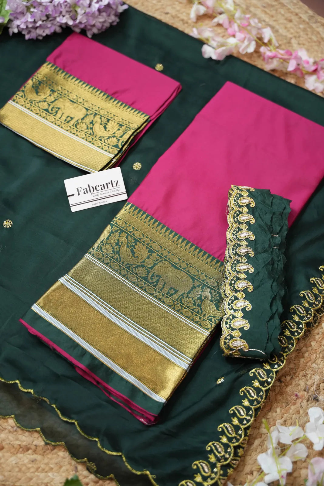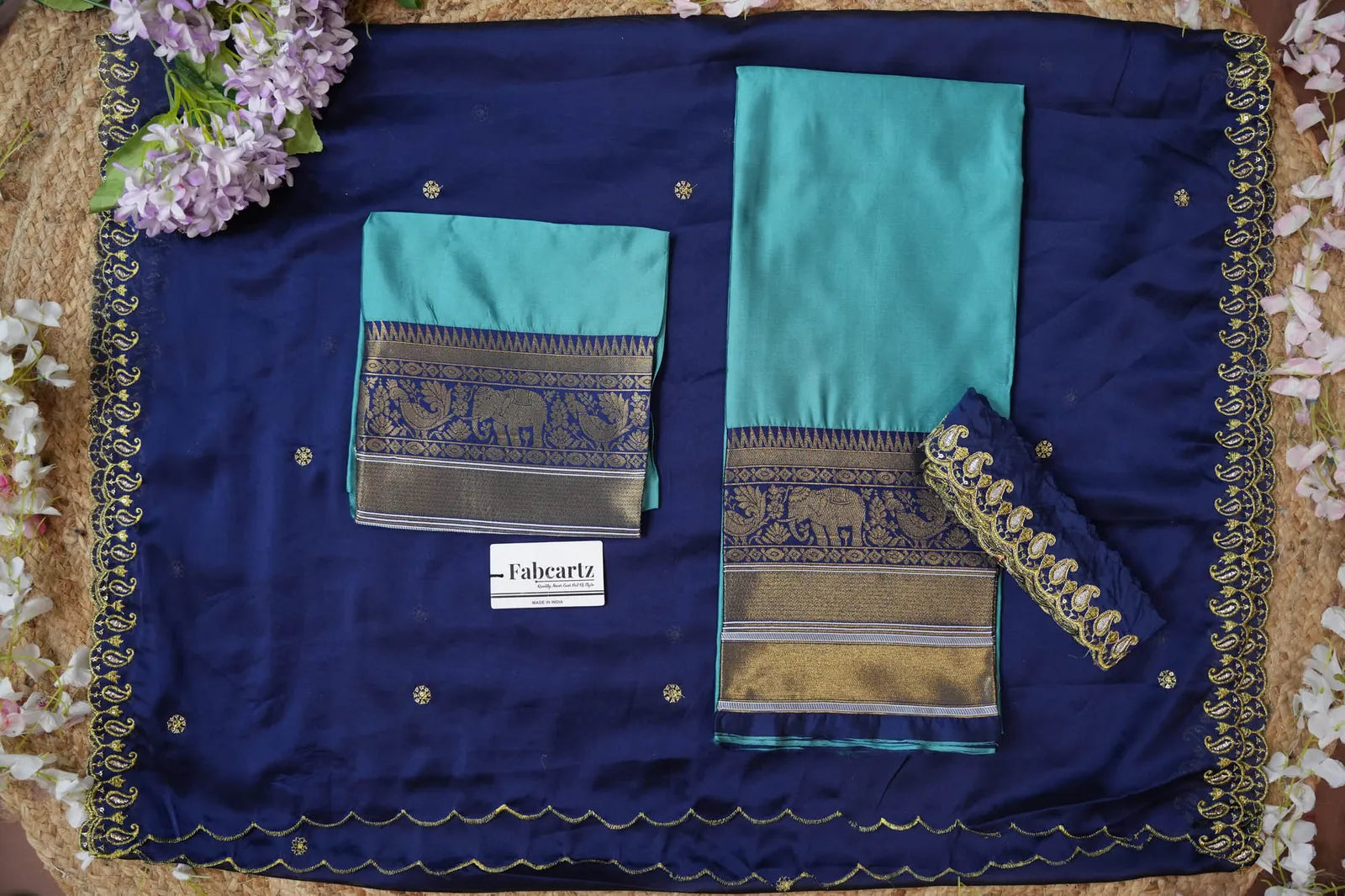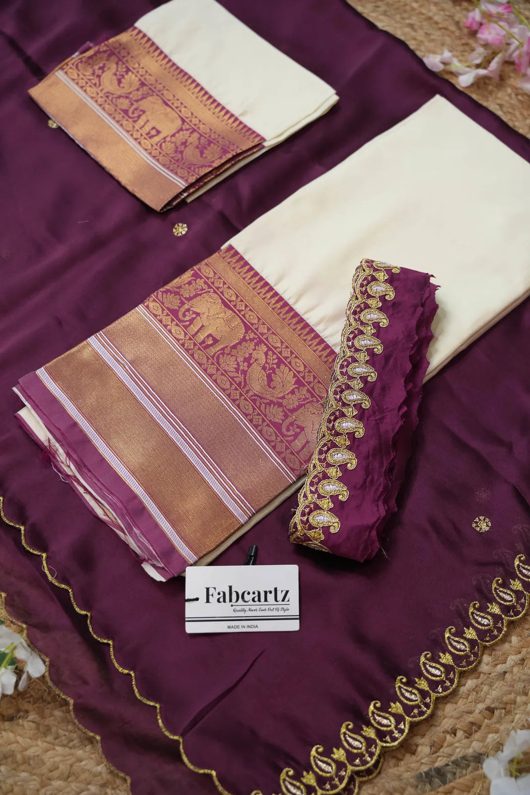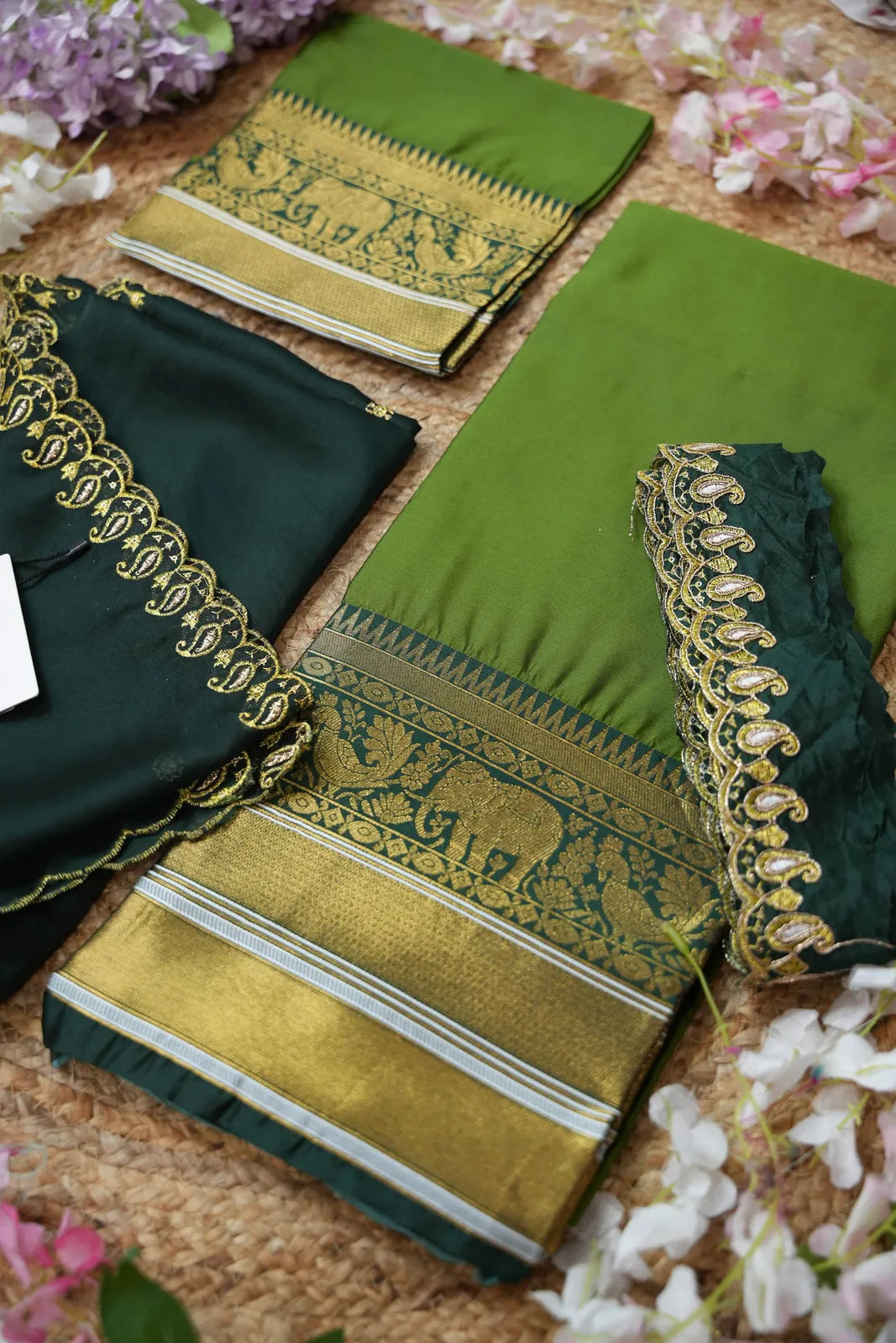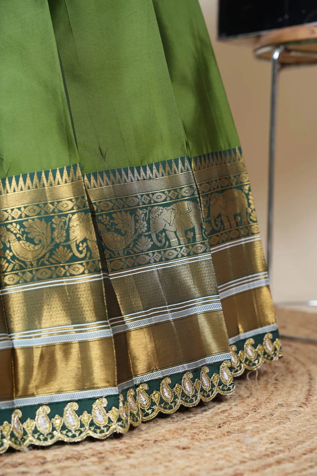 (Adhira) South Indian Festival Traditional Half Saree with Embroidered Blouse & Dupatta