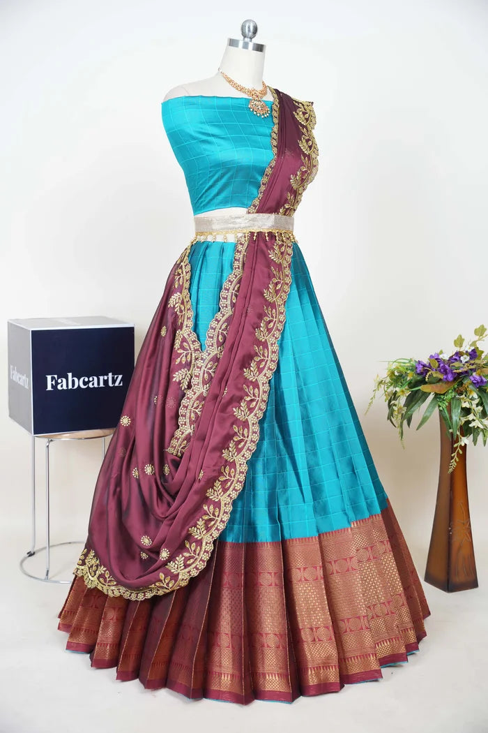 (Adhira) South Indian Festival Traditional Half Saree with Embroidered Blouse & Dupatta