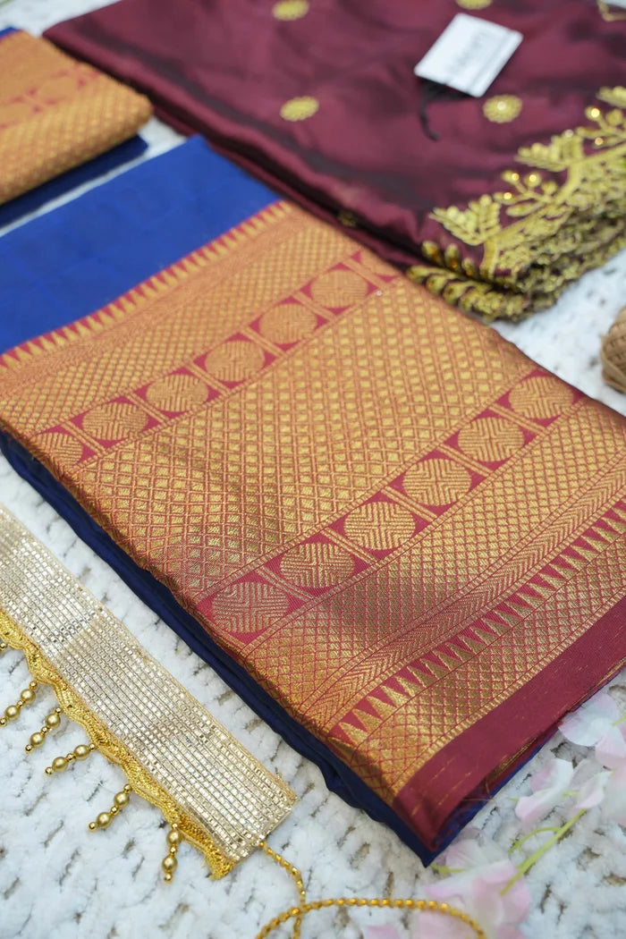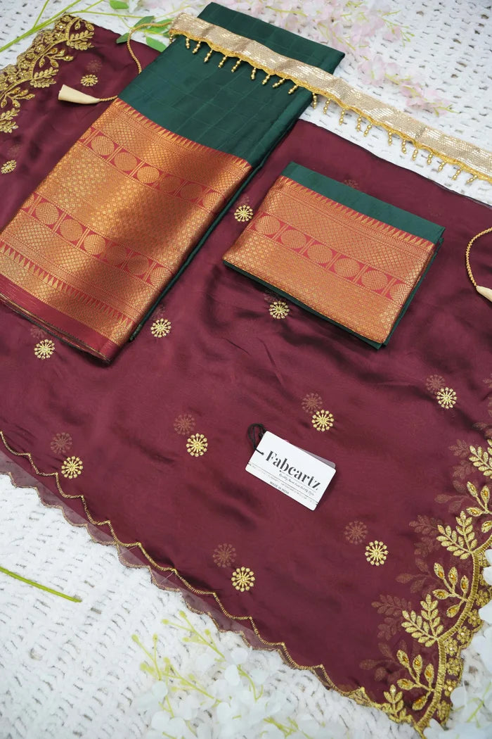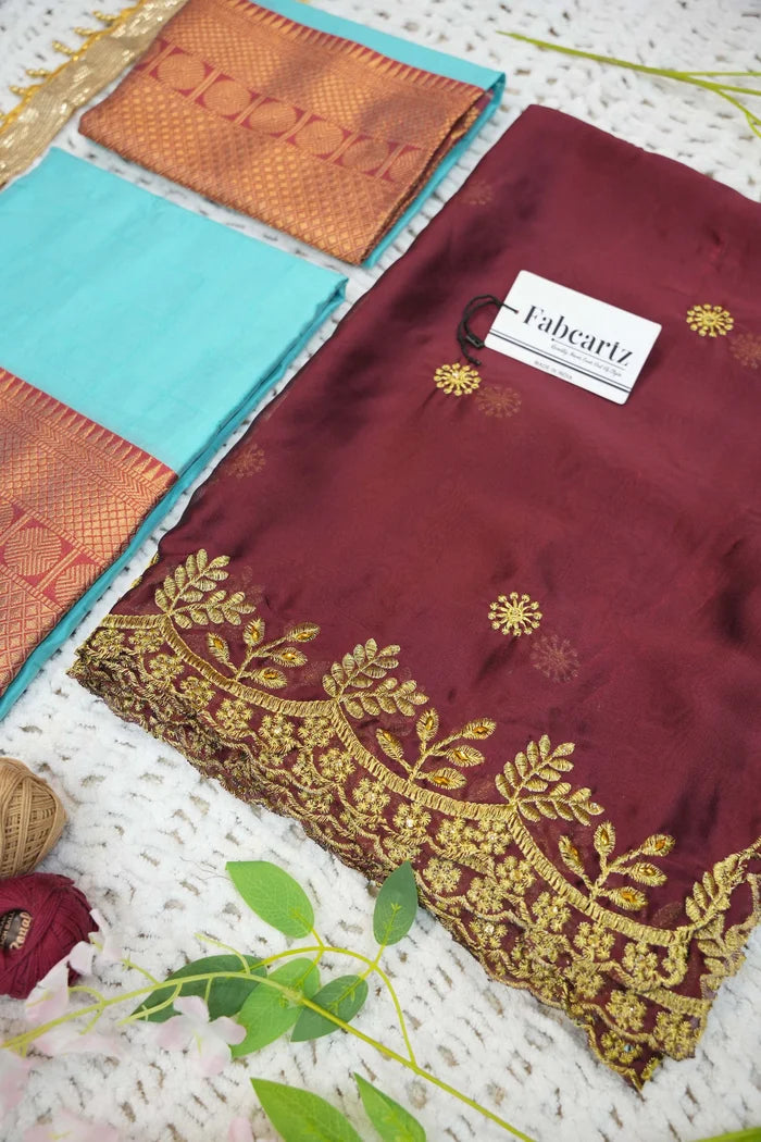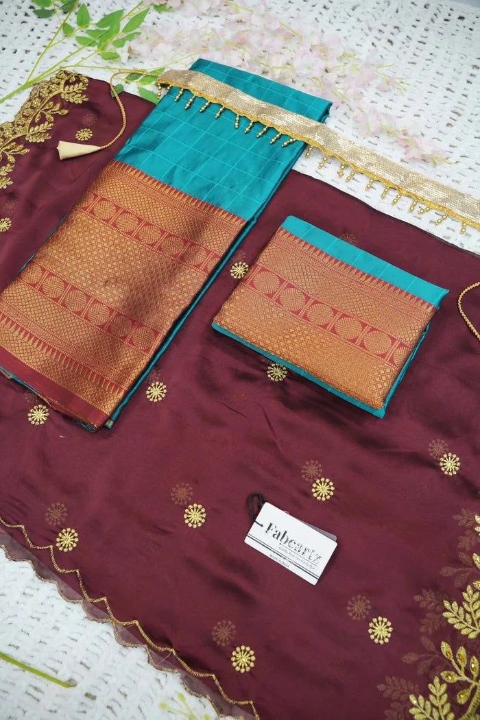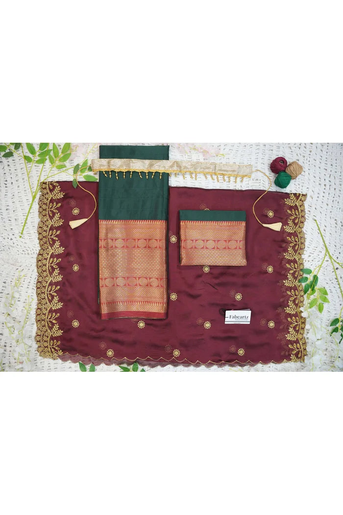 Crafted from Taffeta Satin (Litchi Silk) with intricate Zari work, offering a rich and elegant look.