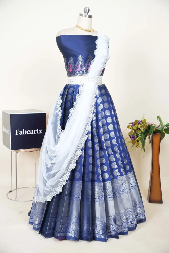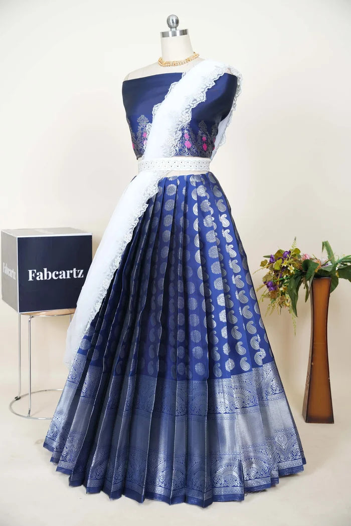 (ButtaBomma) South Indian Festival Traditional Half Saree with Embroidered Blouse & Dupatta
