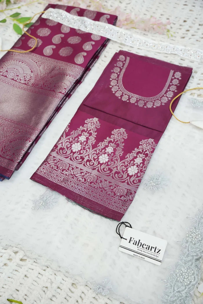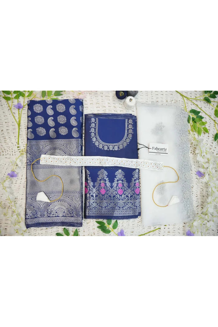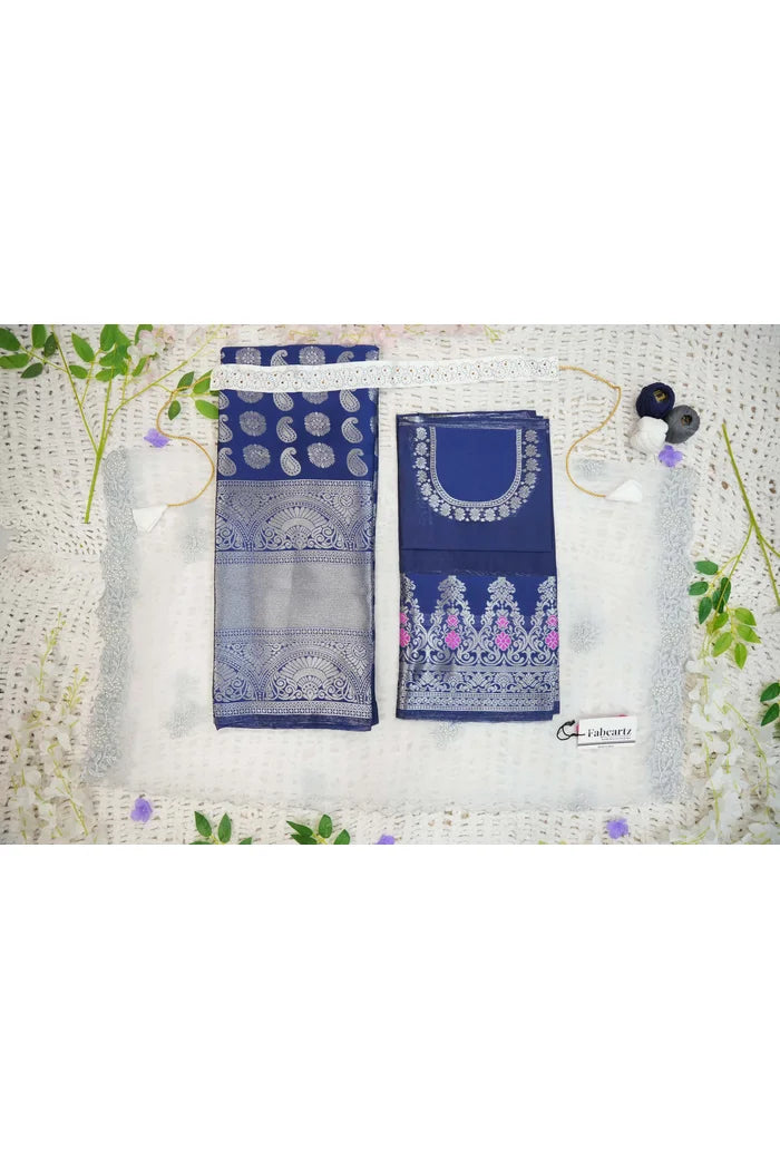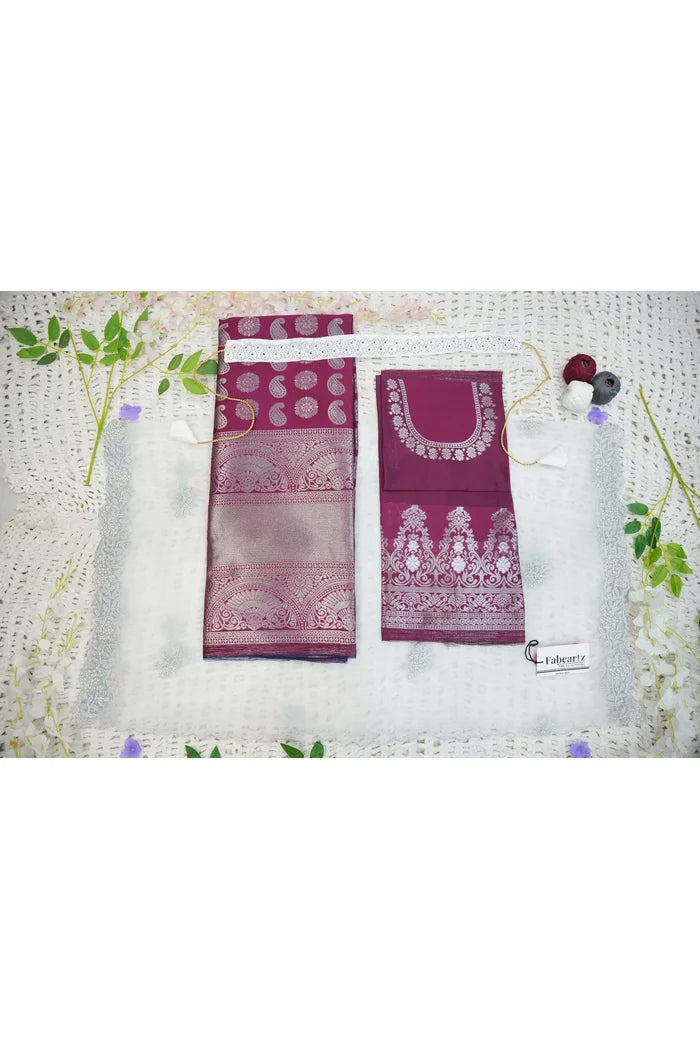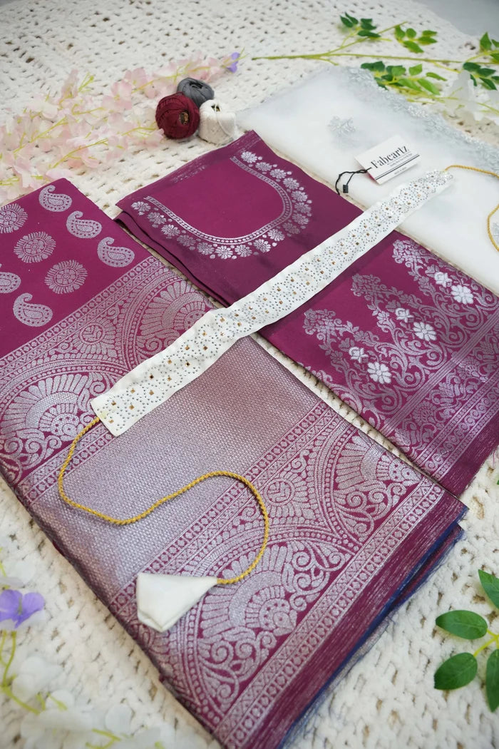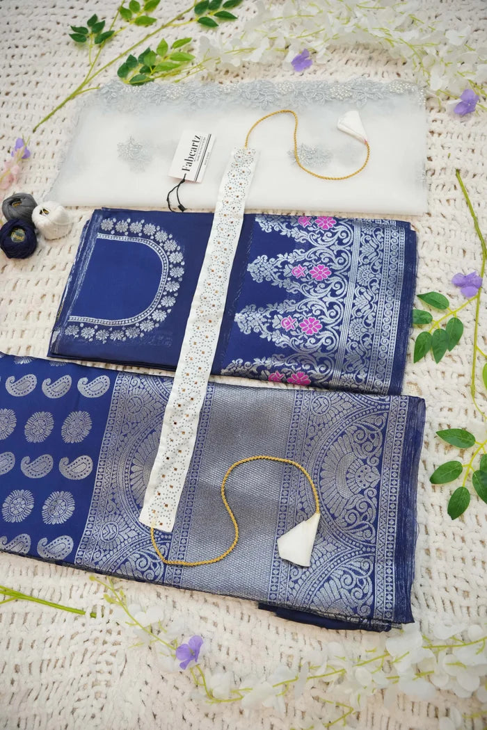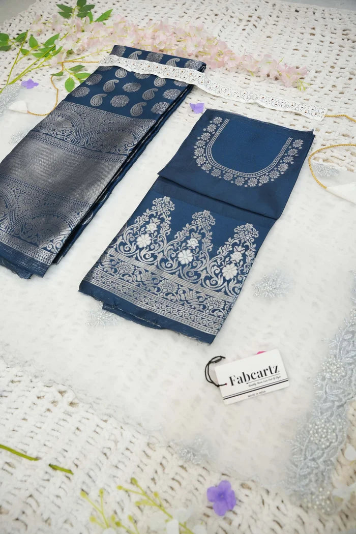 Crafted from Taffeta Satin (Litchi Silk) with intricate Zari work, offering a rich and elegant look.