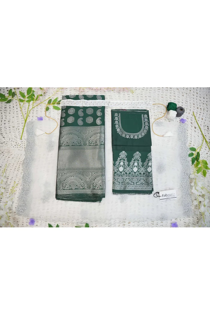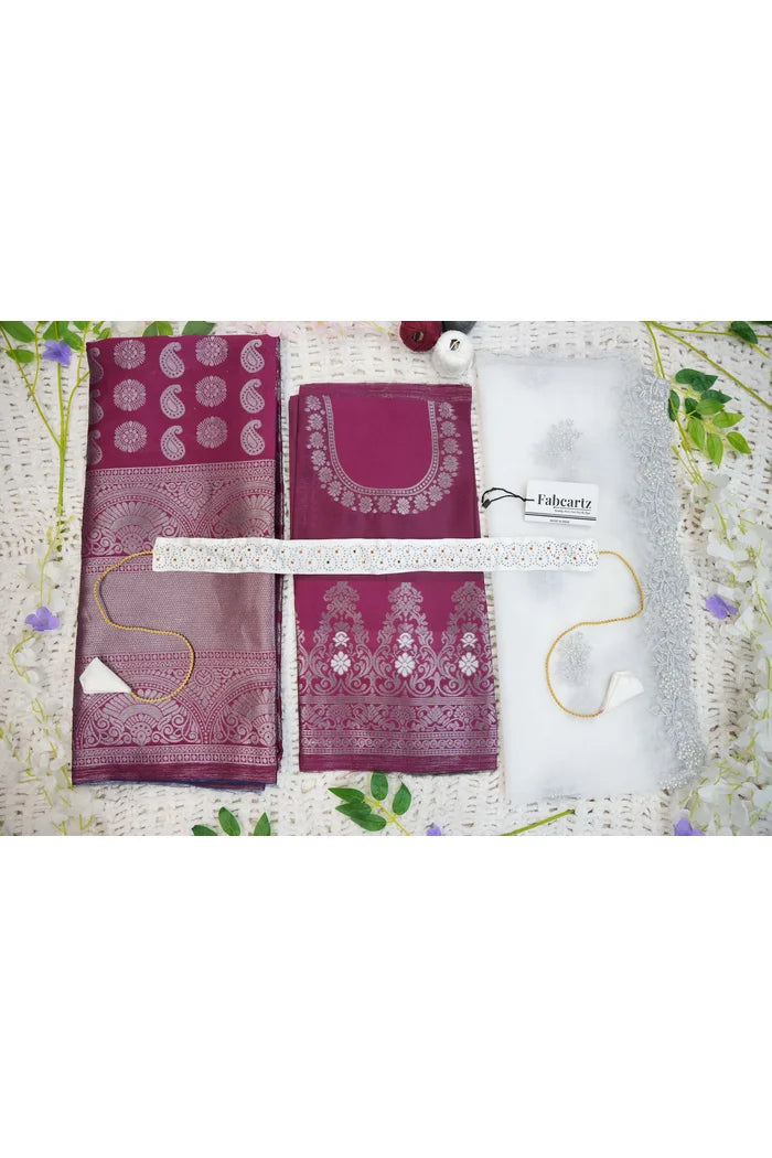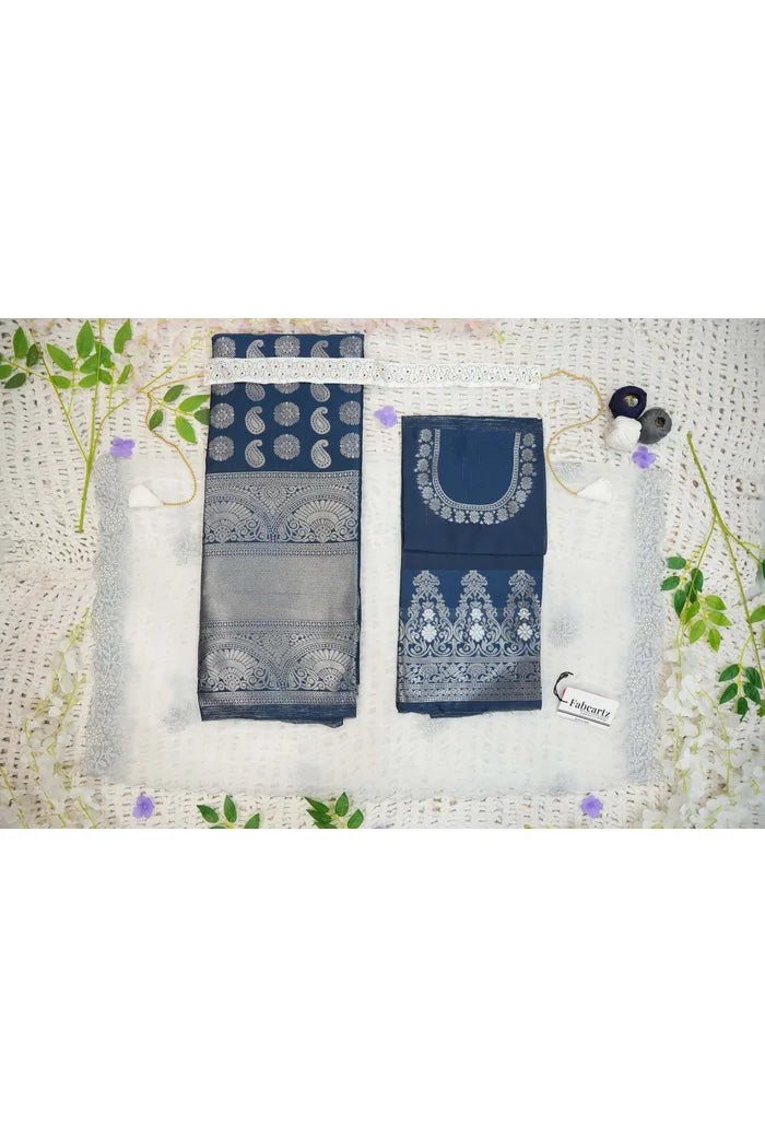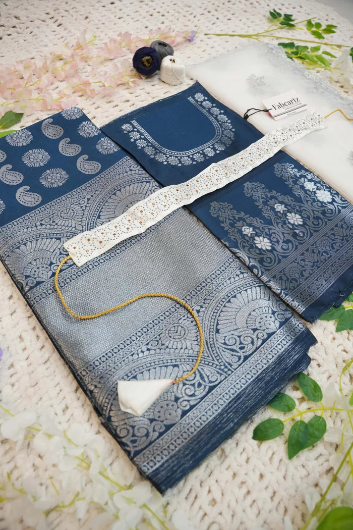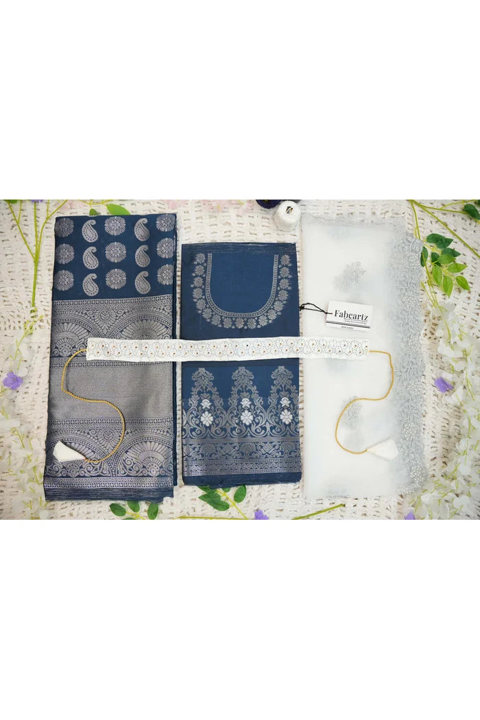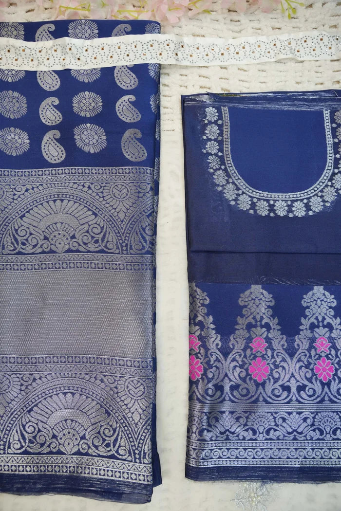 Crafted from Taffeta Satin (Litchi Silk) with intricate Zari work, offering a rich and elegant look.