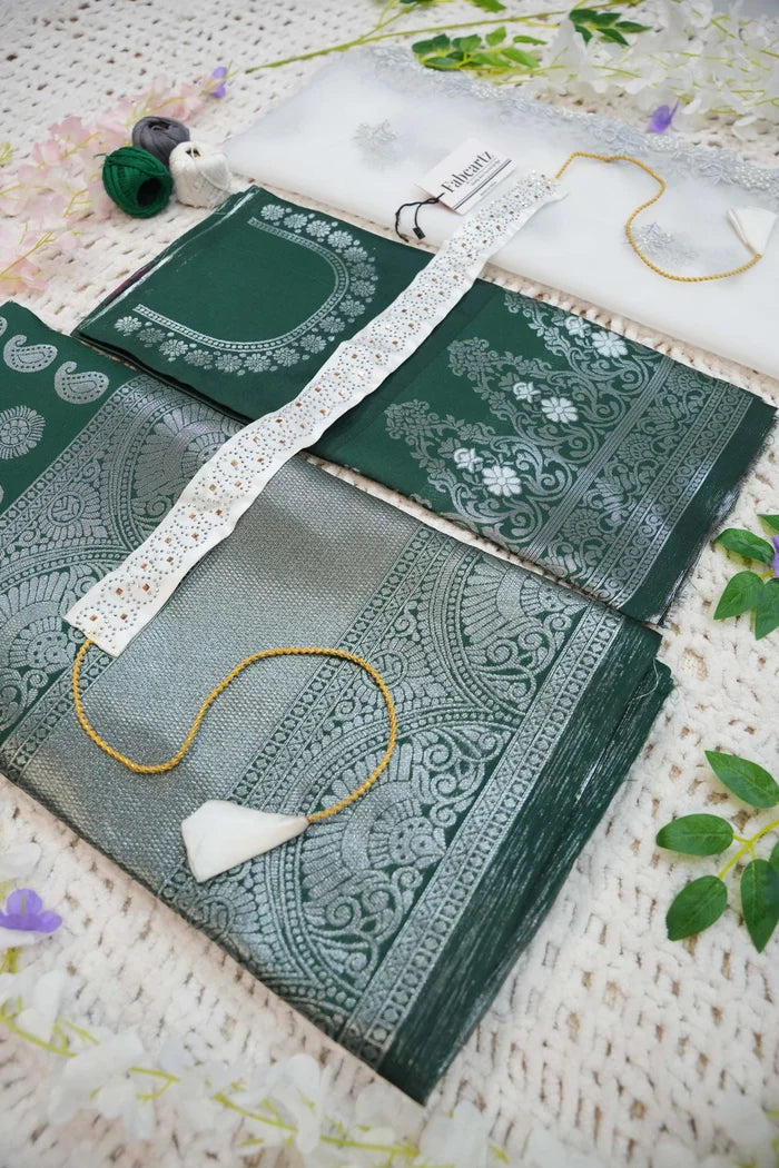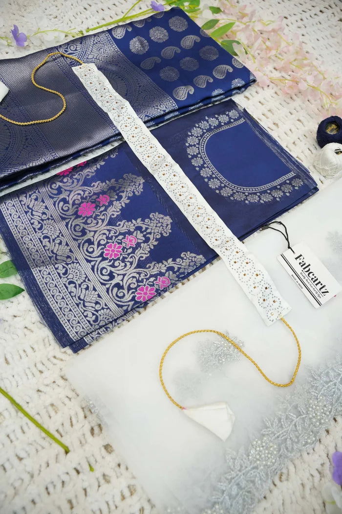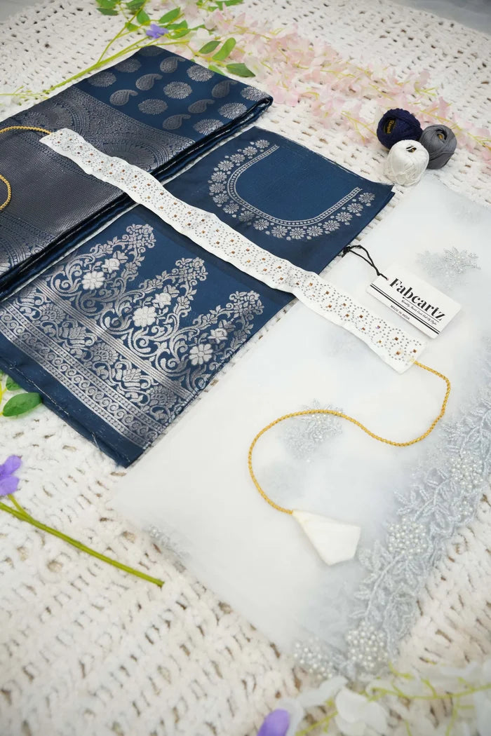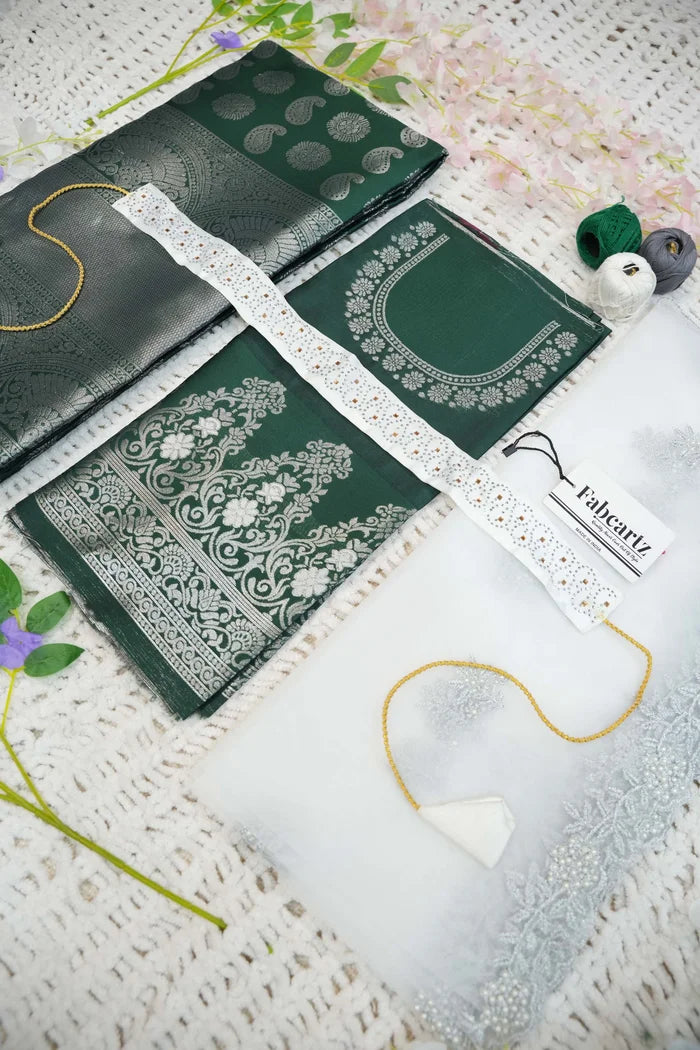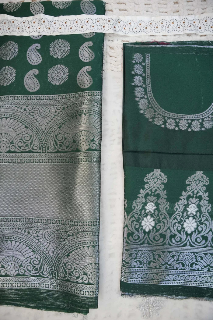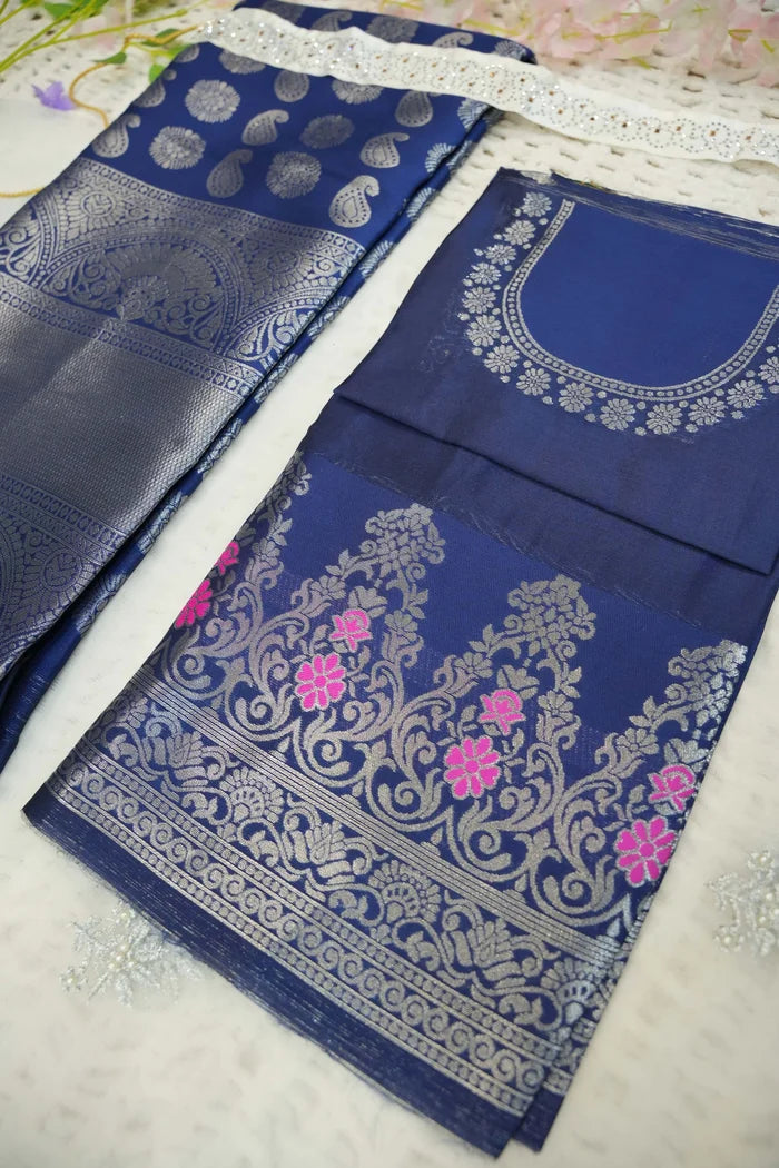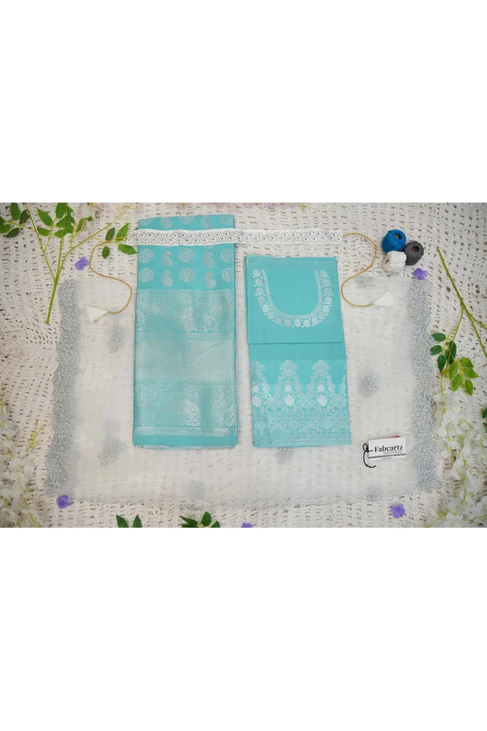 Crafted from Taffeta Satin (Litchi Silk) with intricate Zari work, offering a rich and elegant look.