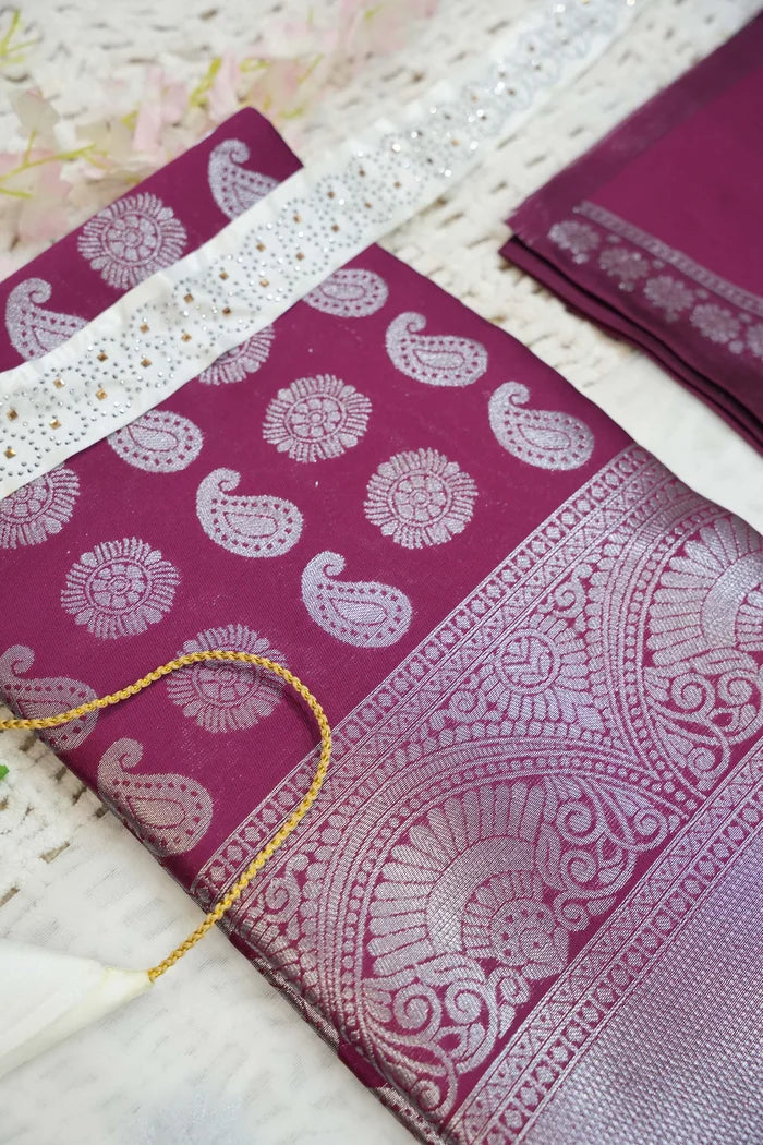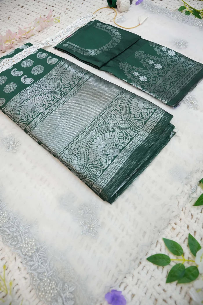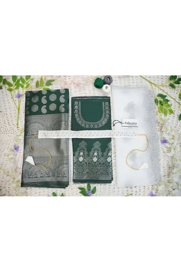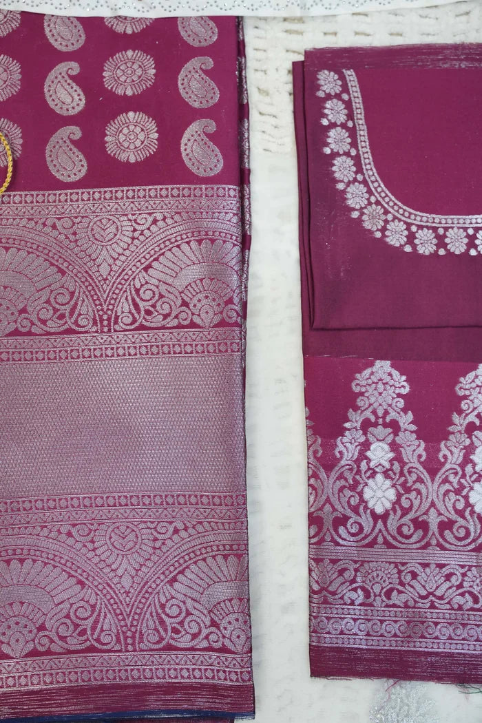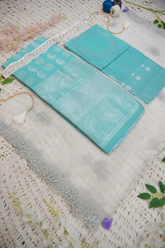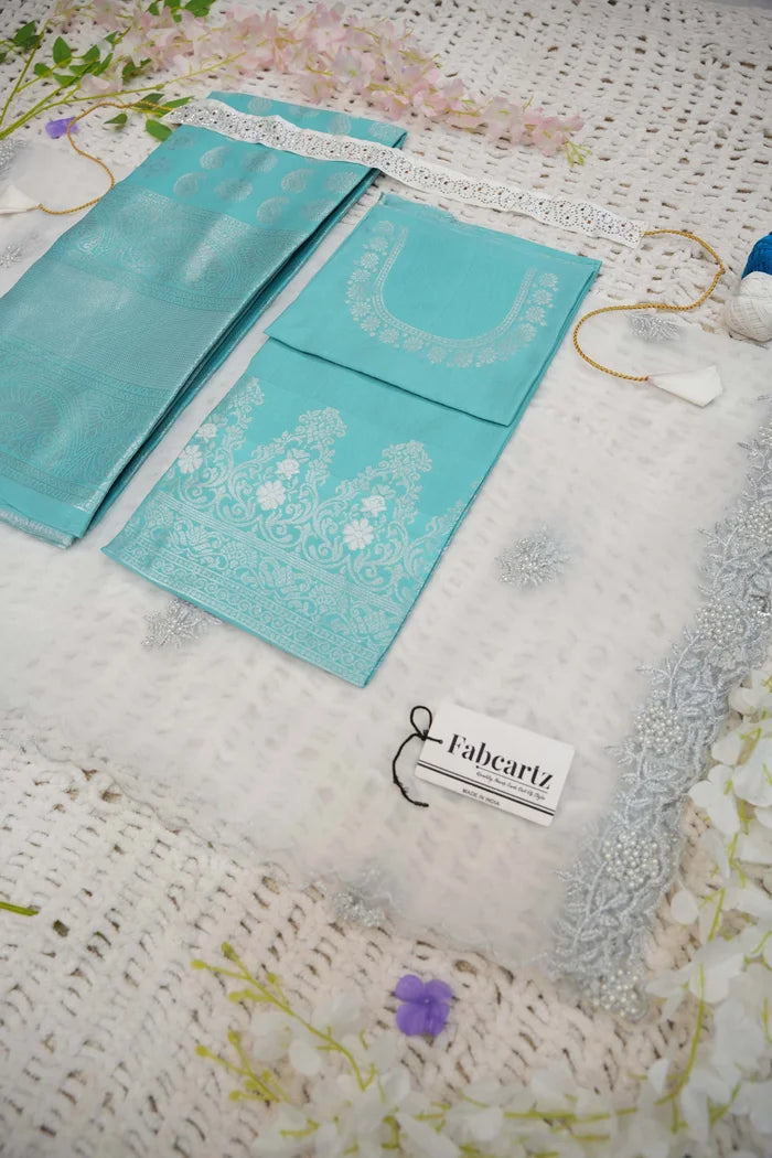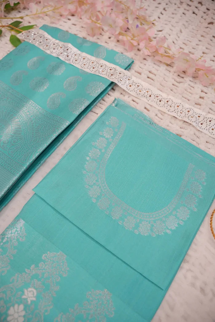 Crafted from Taffeta Satin (Litchi Silk) with intricate Zari work, offering a rich and elegant look.