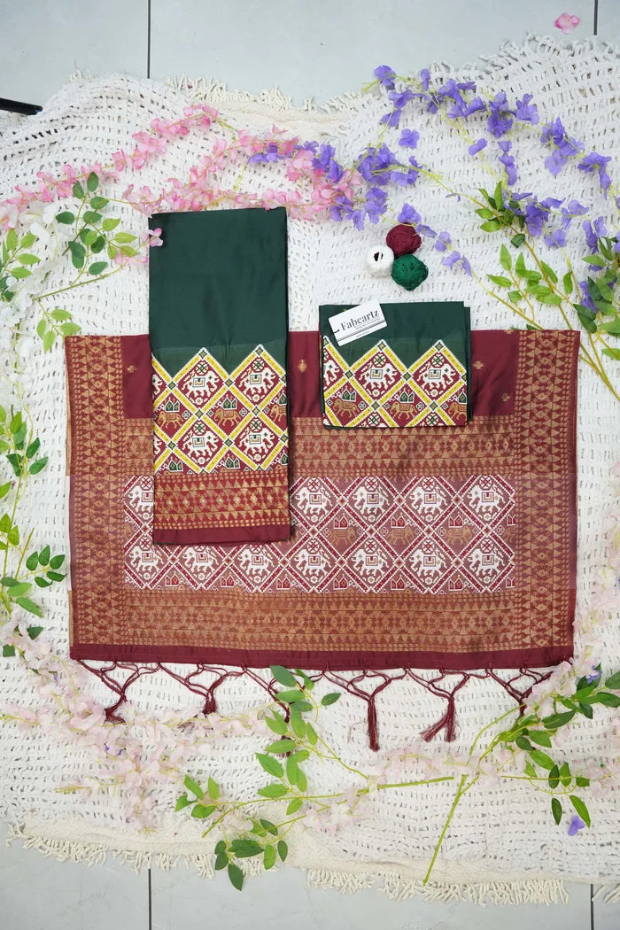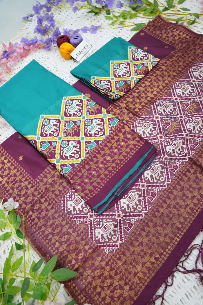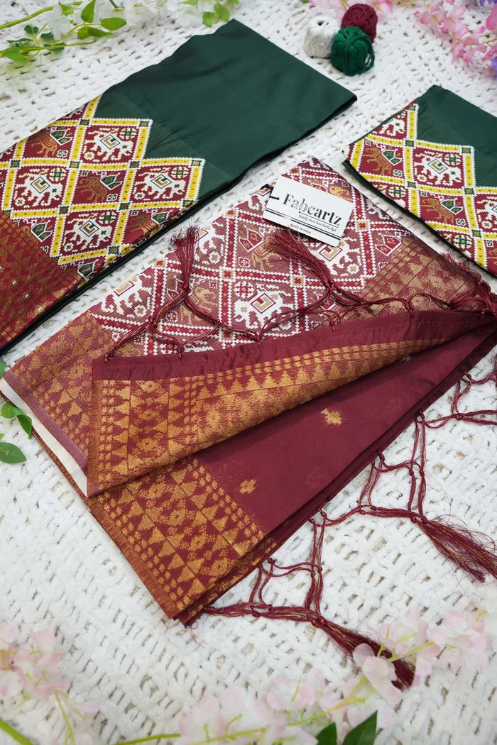 Crafted from Taffeta Satin (Litchi Silk) with intricate Zari work, offering a rich and elegant look.