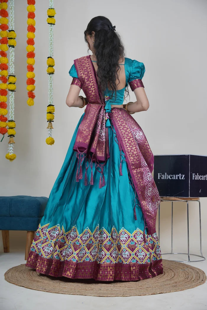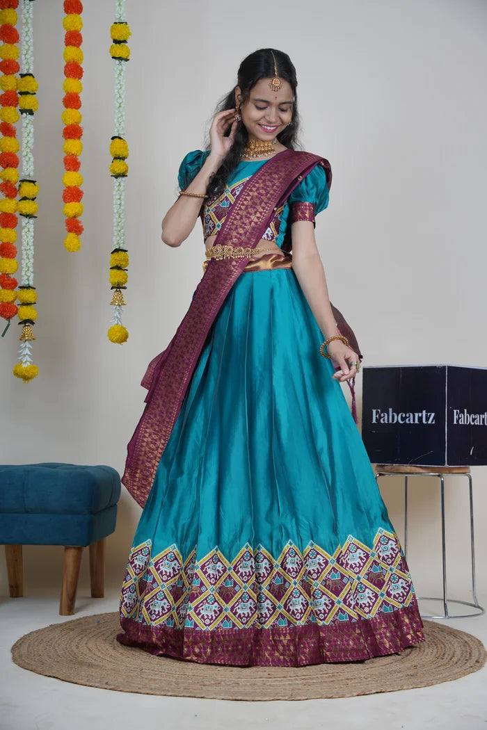 (ButtaBomma) South Indian Festival Traditional Half Saree with Embroidered Blouse & Dupatta