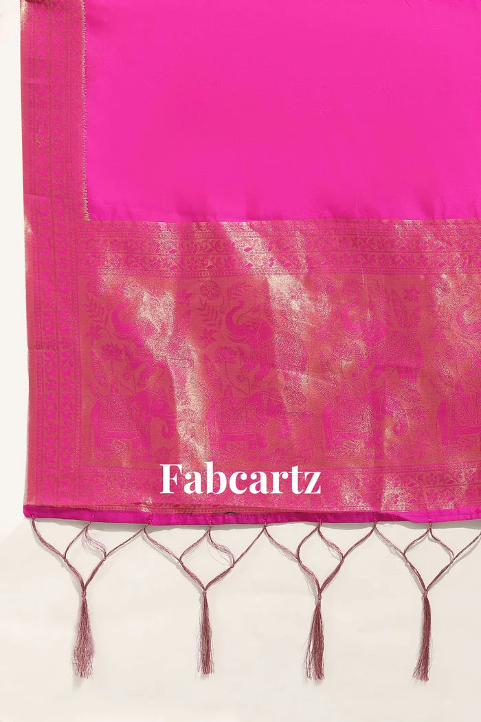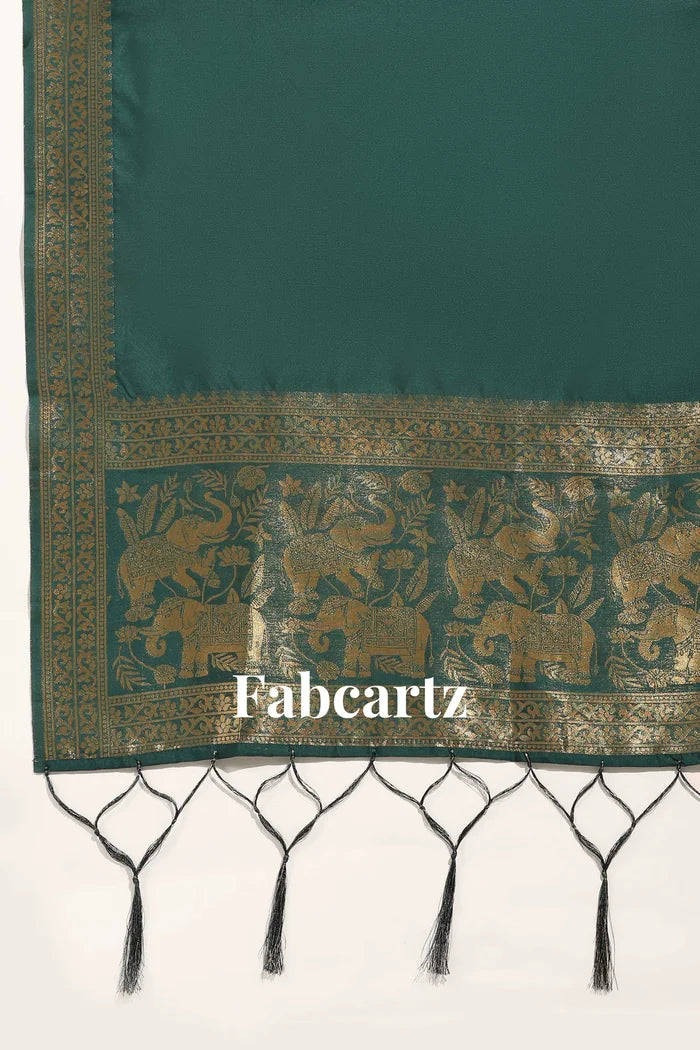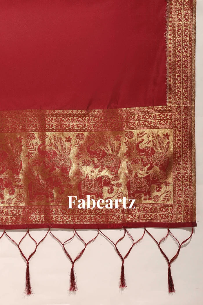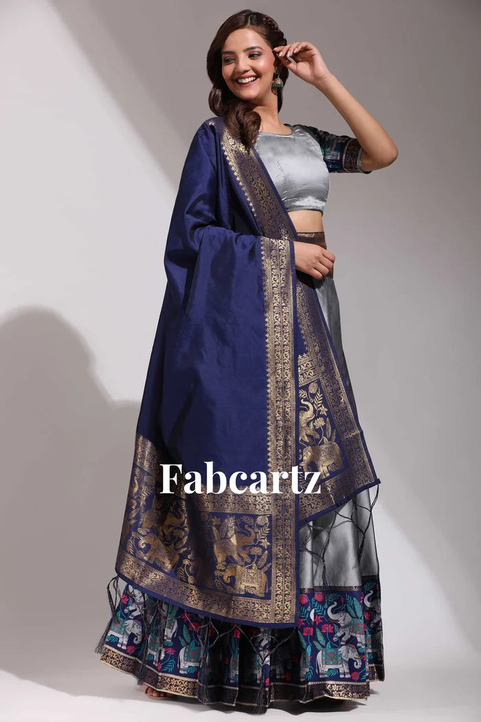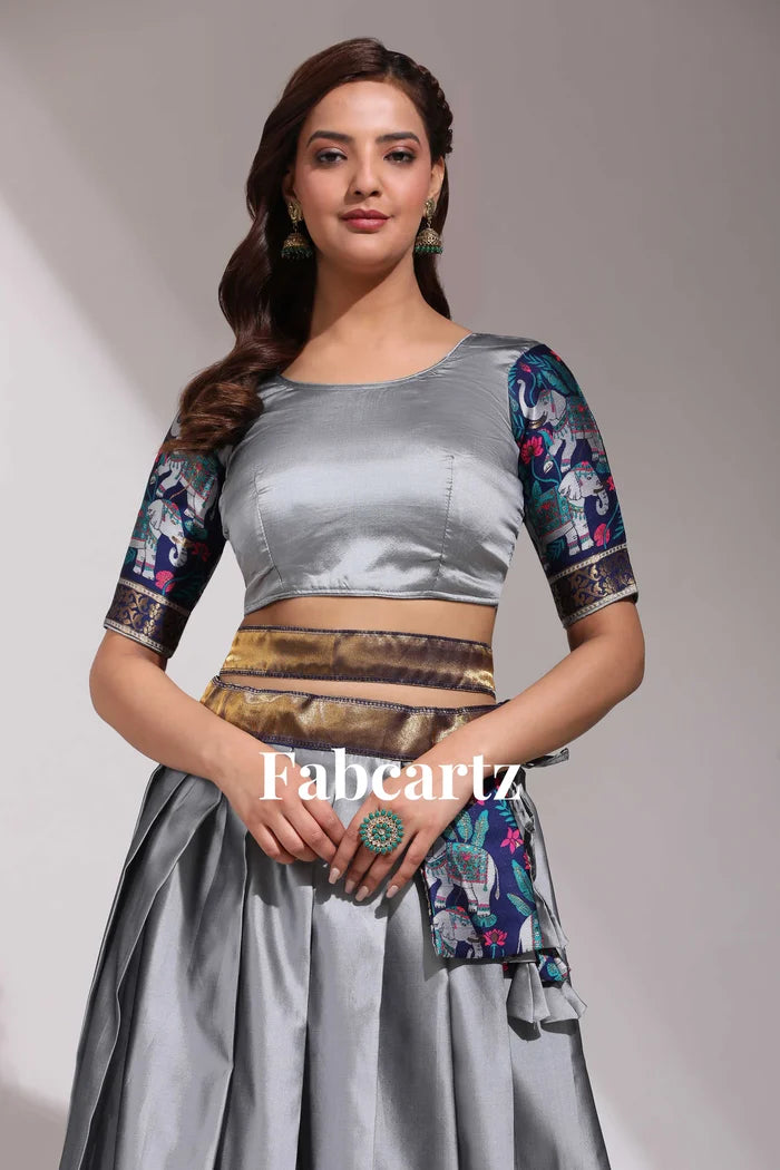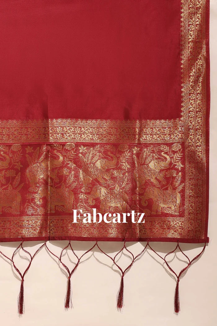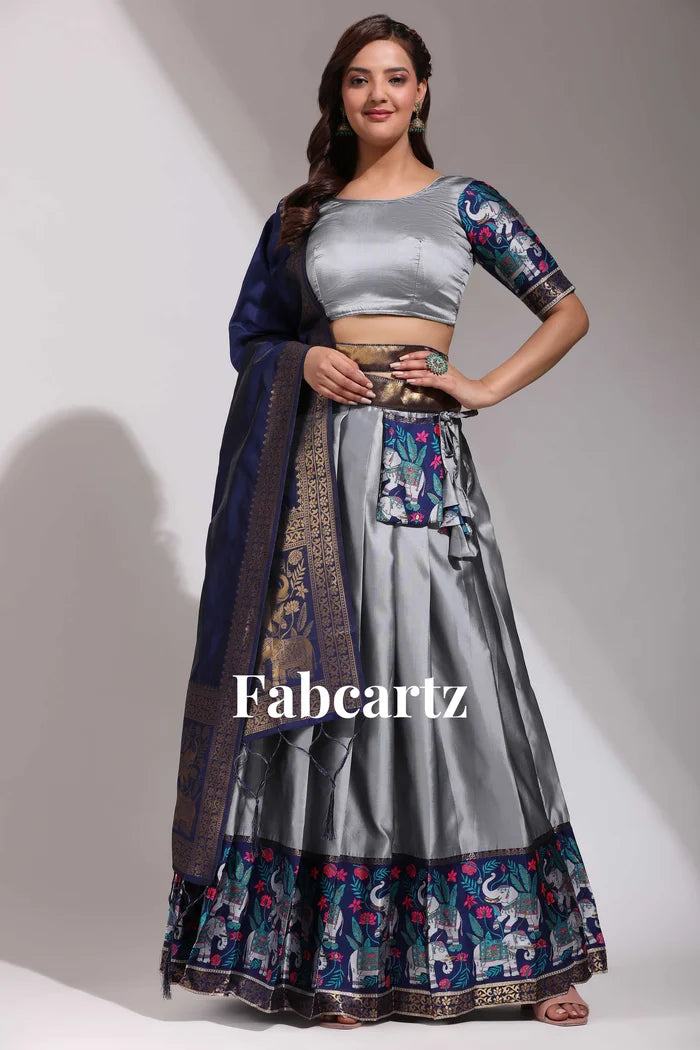Crafted from Taffeta Satin (Litchi Silk) with intricate Zari work, offering a rich and elegant look.