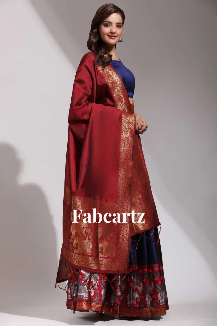 (Adhira) South Indian Festival Traditional Half Saree with Embroidered Blouse & Dupatta