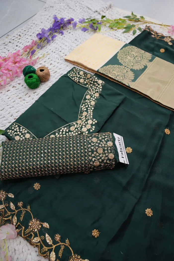 Crafted from Taffeta Satin (Litchi Silk) with intricate Zari work, offering a rich and elegant look.