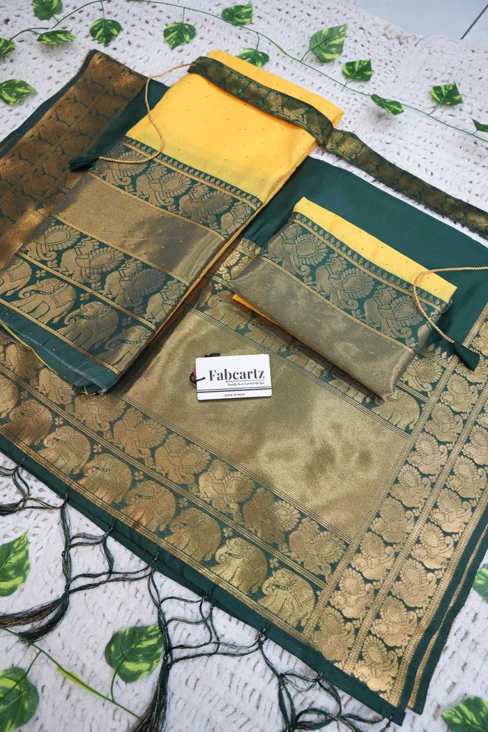 Crafted from Taffeta Satin (Litchi Silk) with intricate Zari work, offering a rich and elegant look.