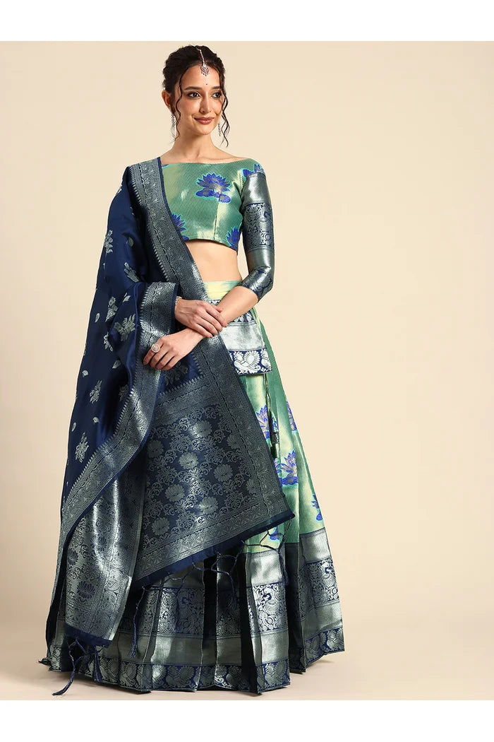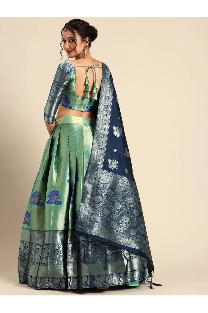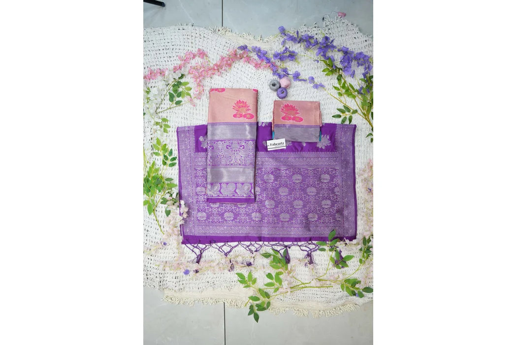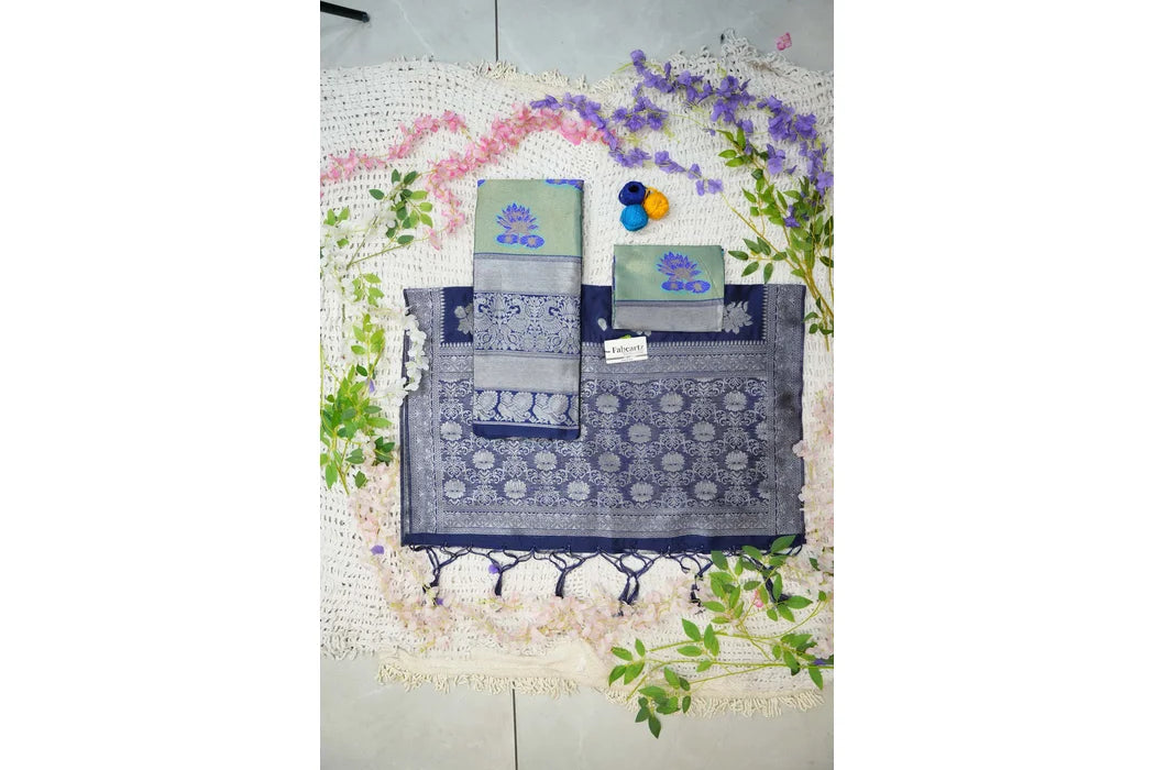 Crafted from Taffeta Satin (Litchi Silk) with intricate Zari work, offering a rich and elegant look.