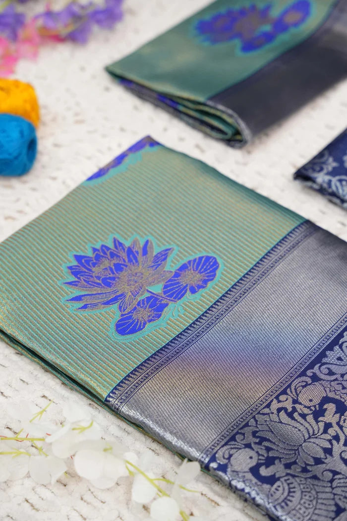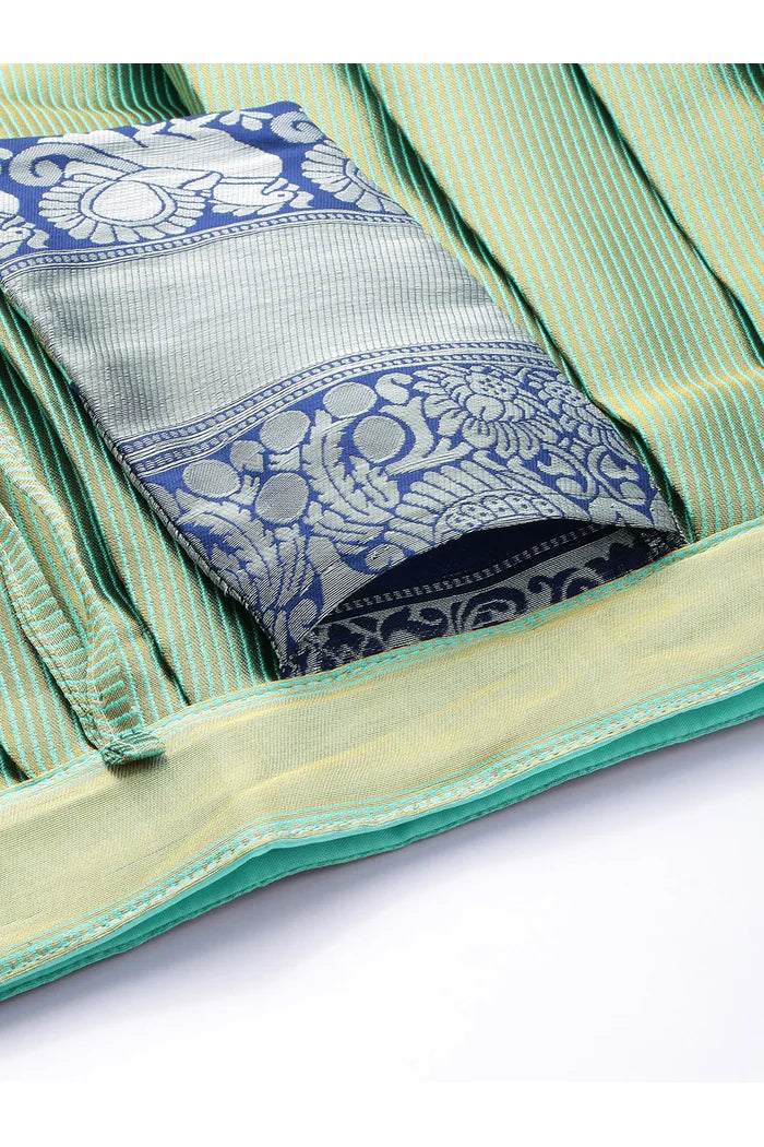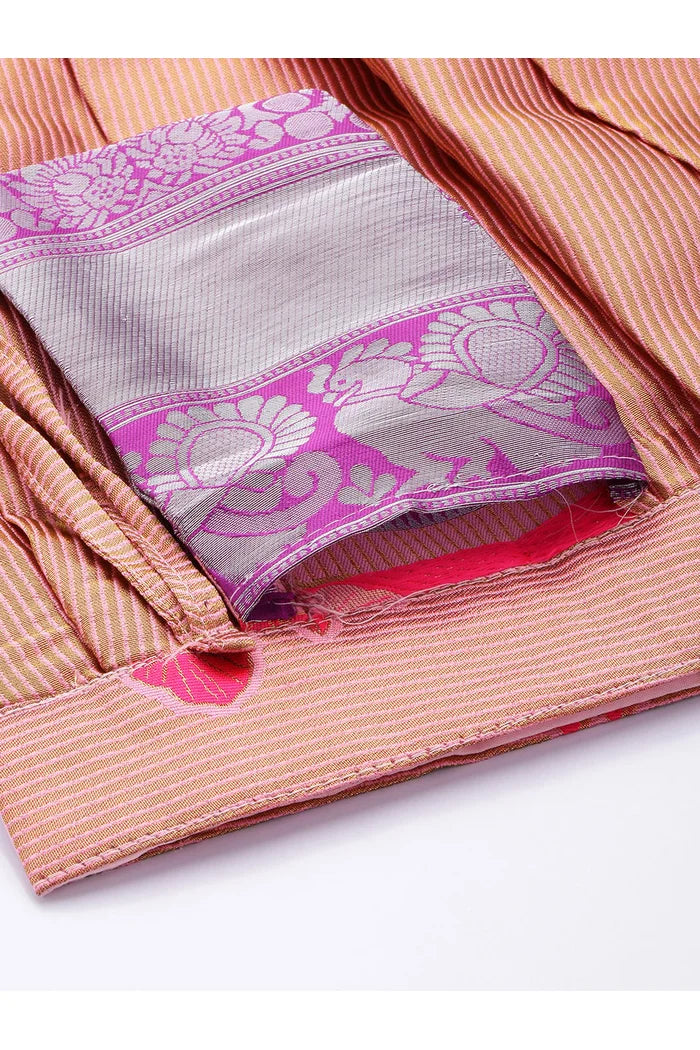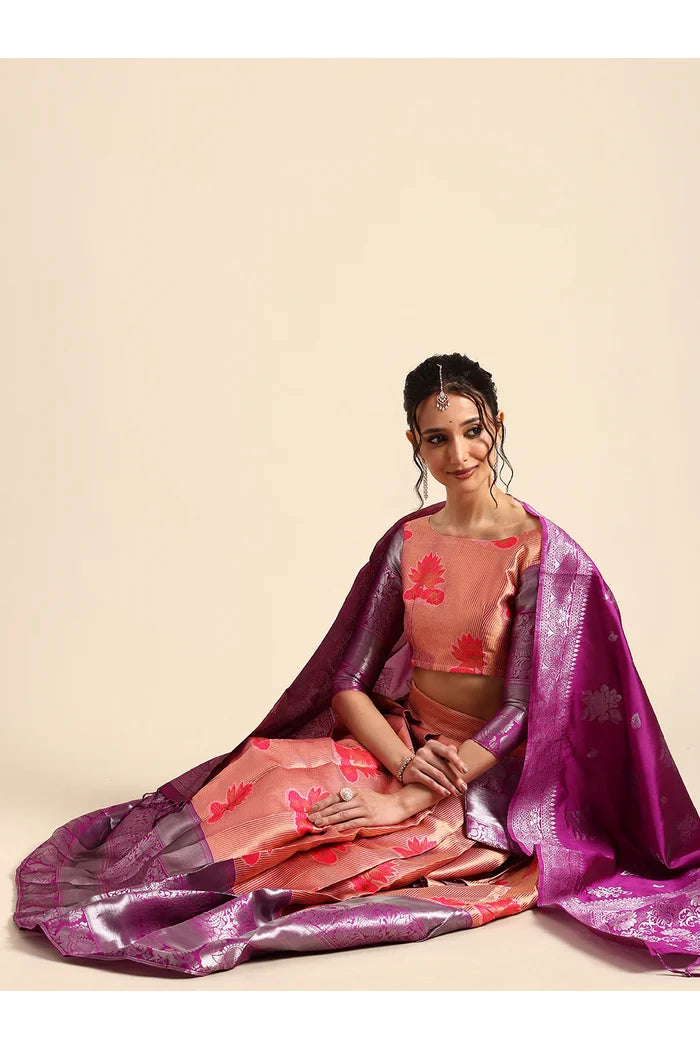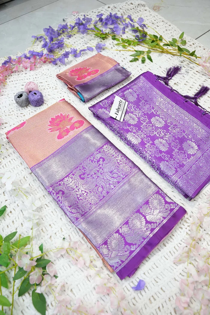 Crafted from Taffeta Satin (Litchi Silk) with intricate Zari work, offering a rich and elegant look.