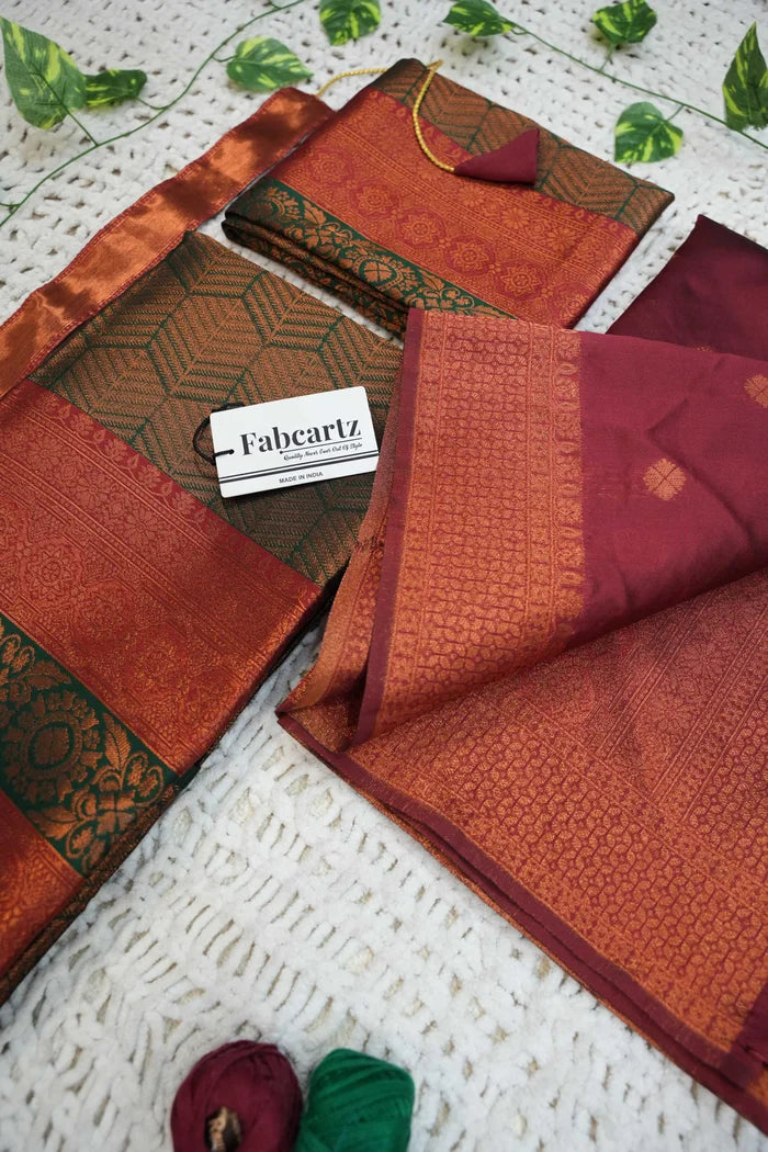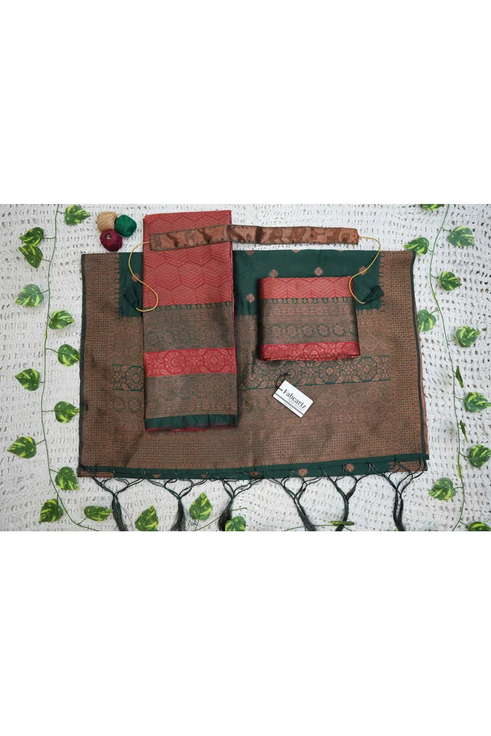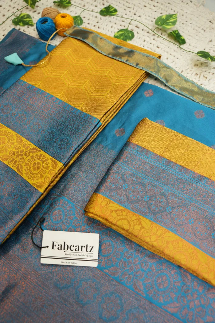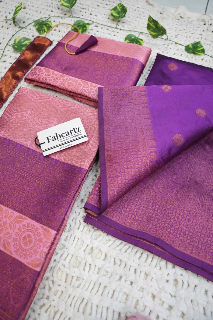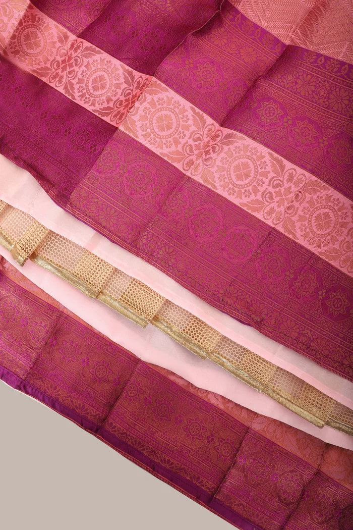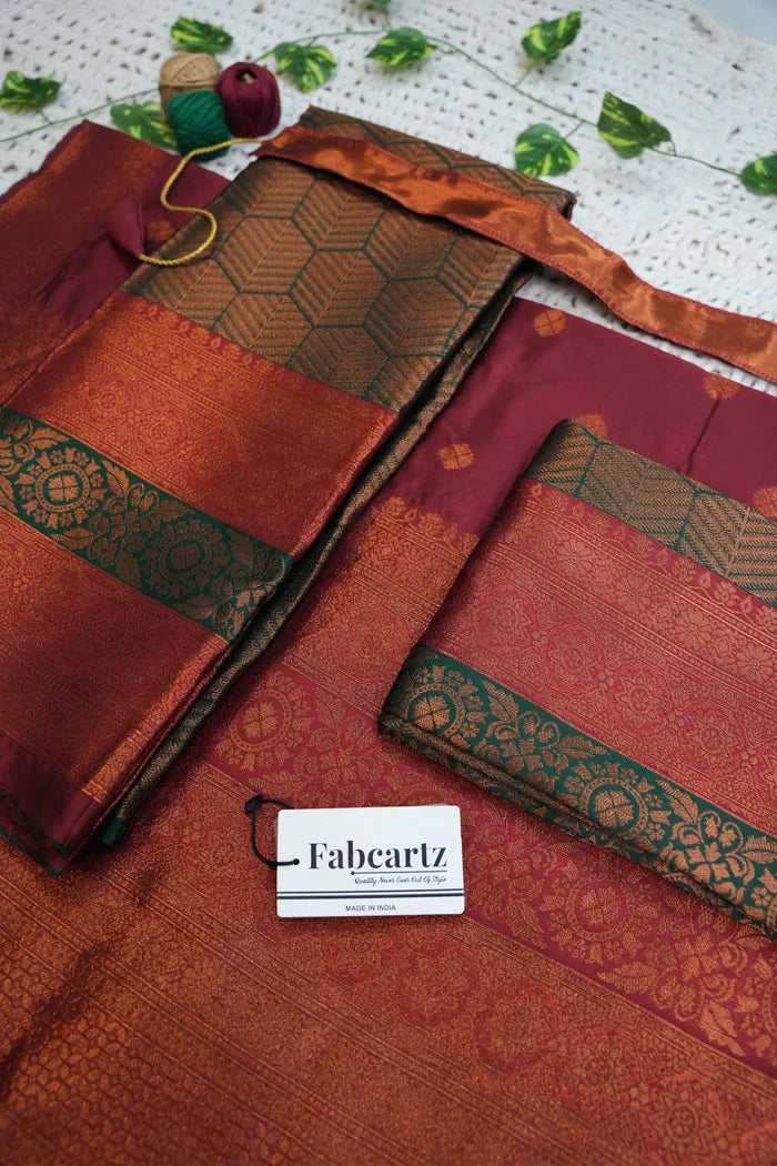 Crafted from Taffeta Satin (Litchi Silk) with intricate Zari work, offering a rich and elegant look.