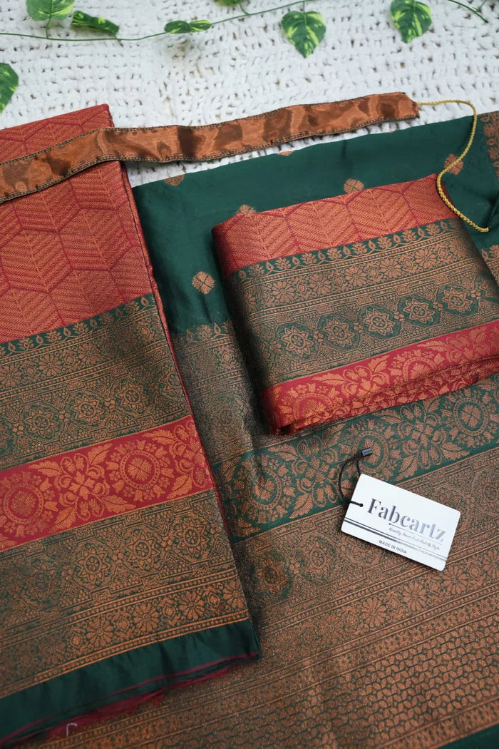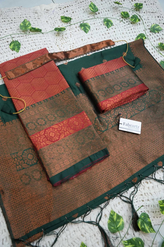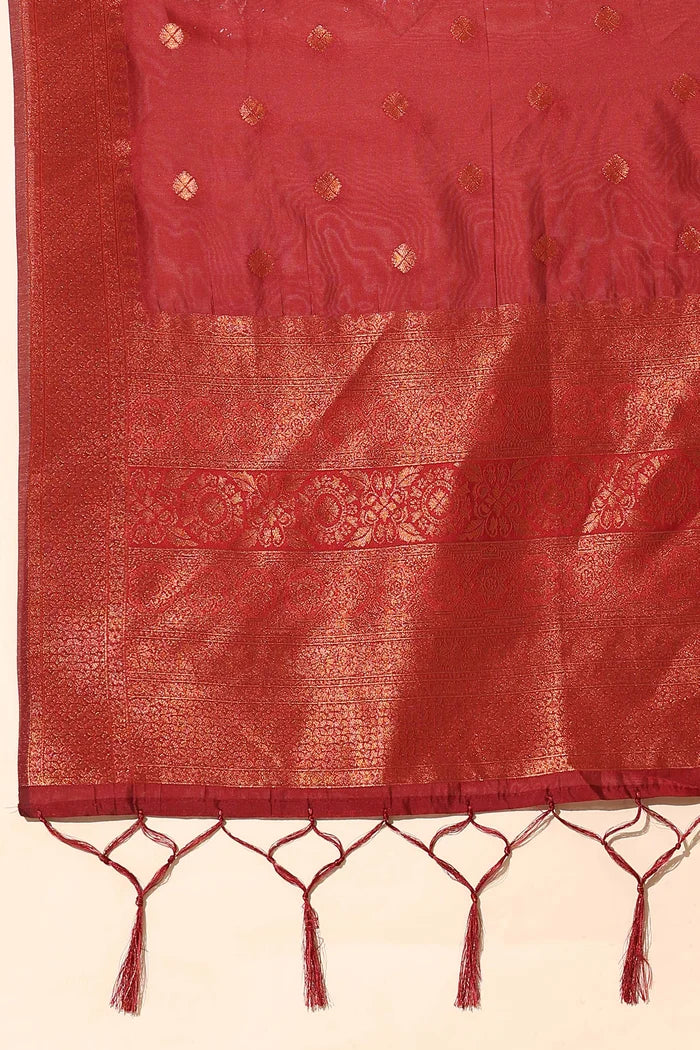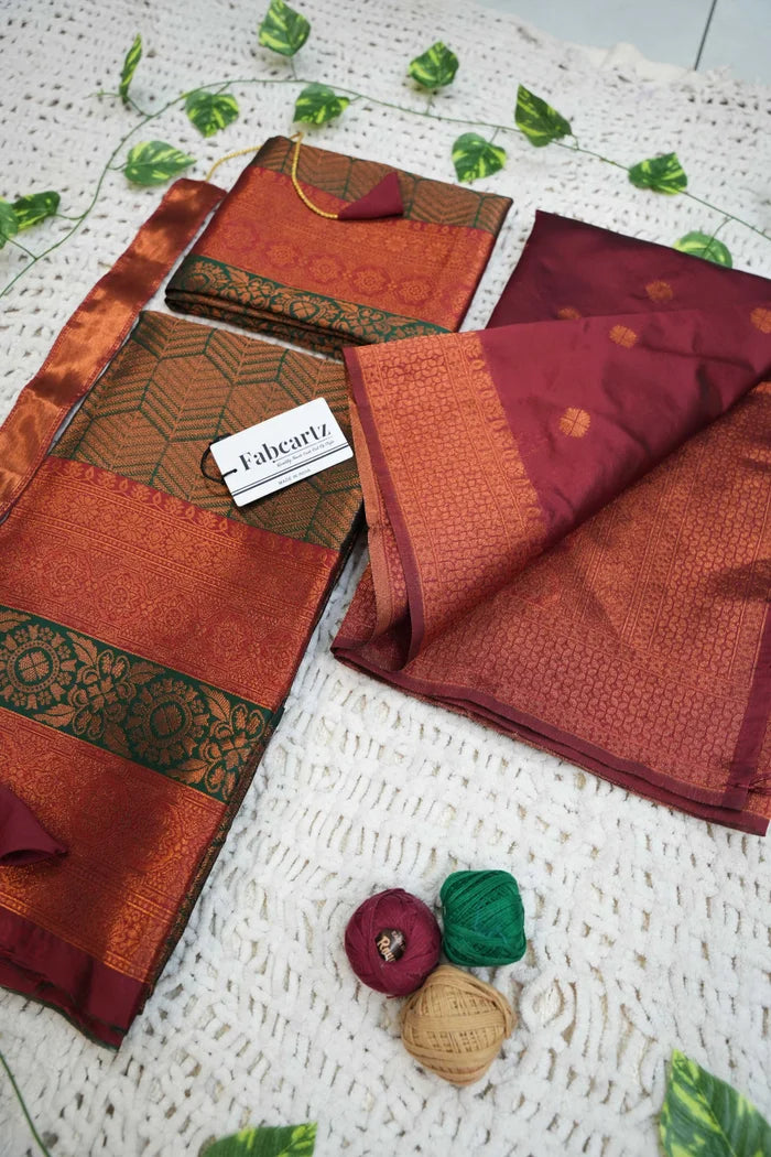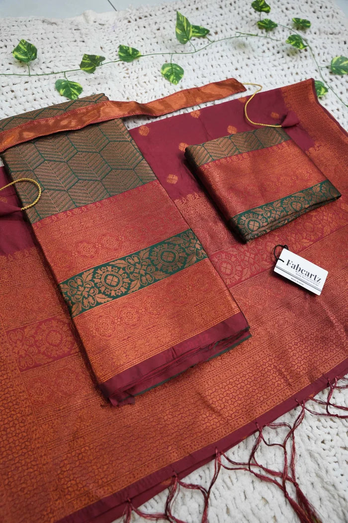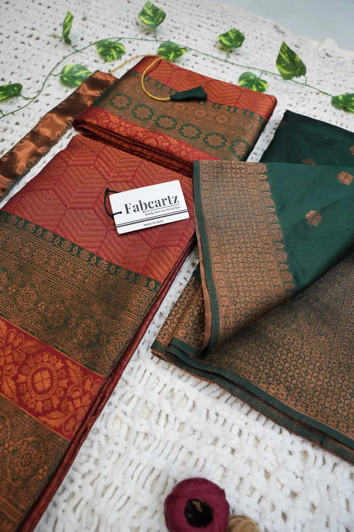 Crafted from Taffeta Satin (Litchi Silk) with intricate Zari work, offering a rich and elegant look.