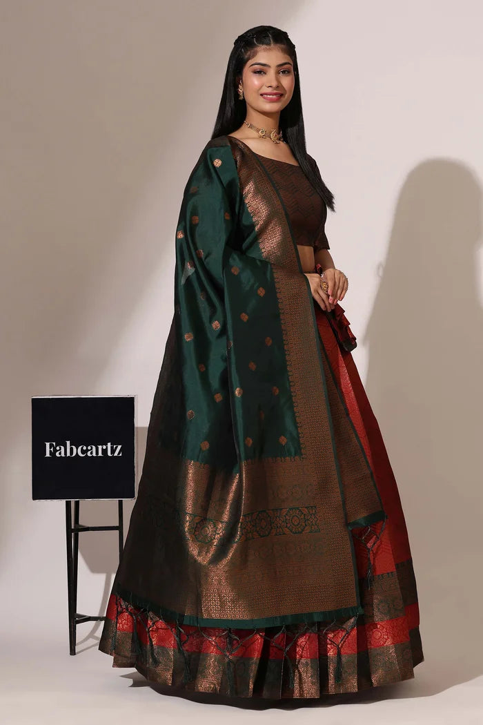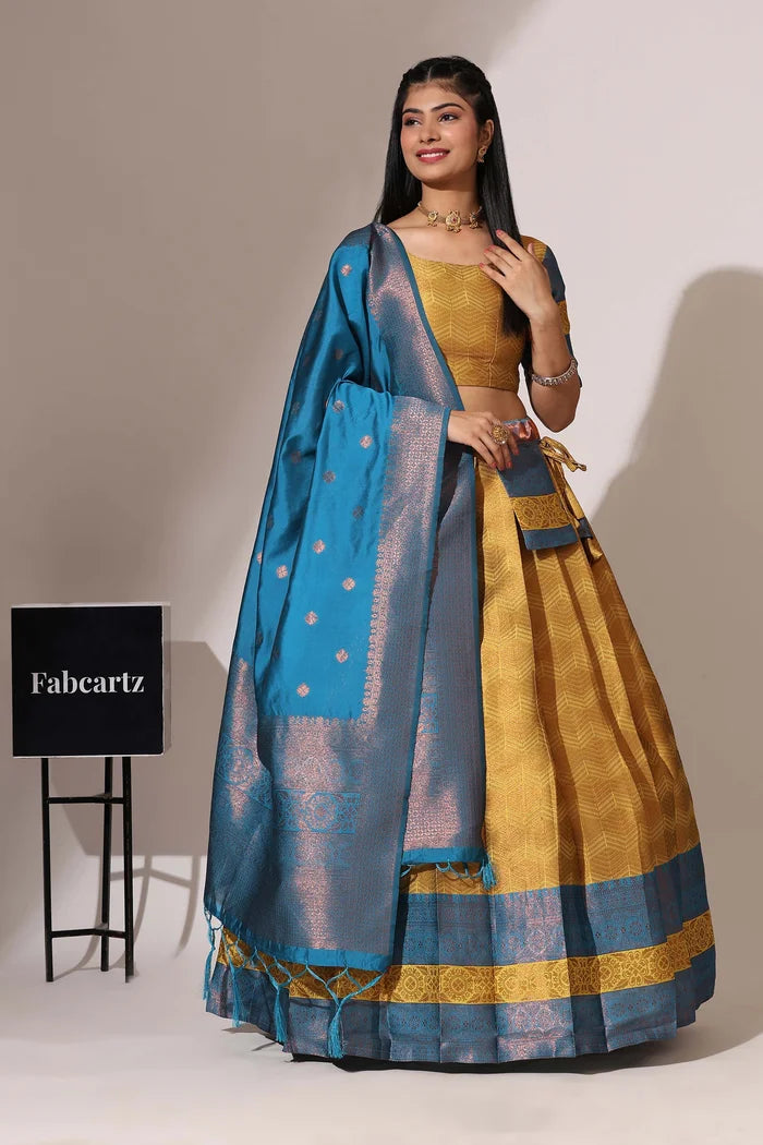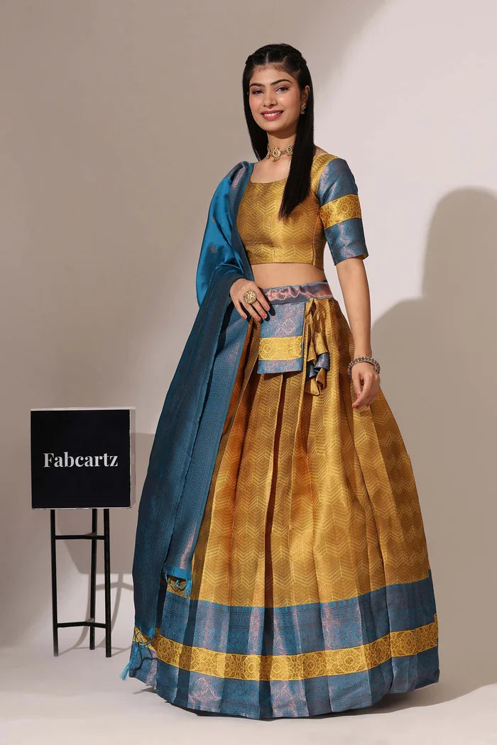 (Adhira) South Indian Festival Traditional Half Saree with Embroidered Blouse & Dupatta