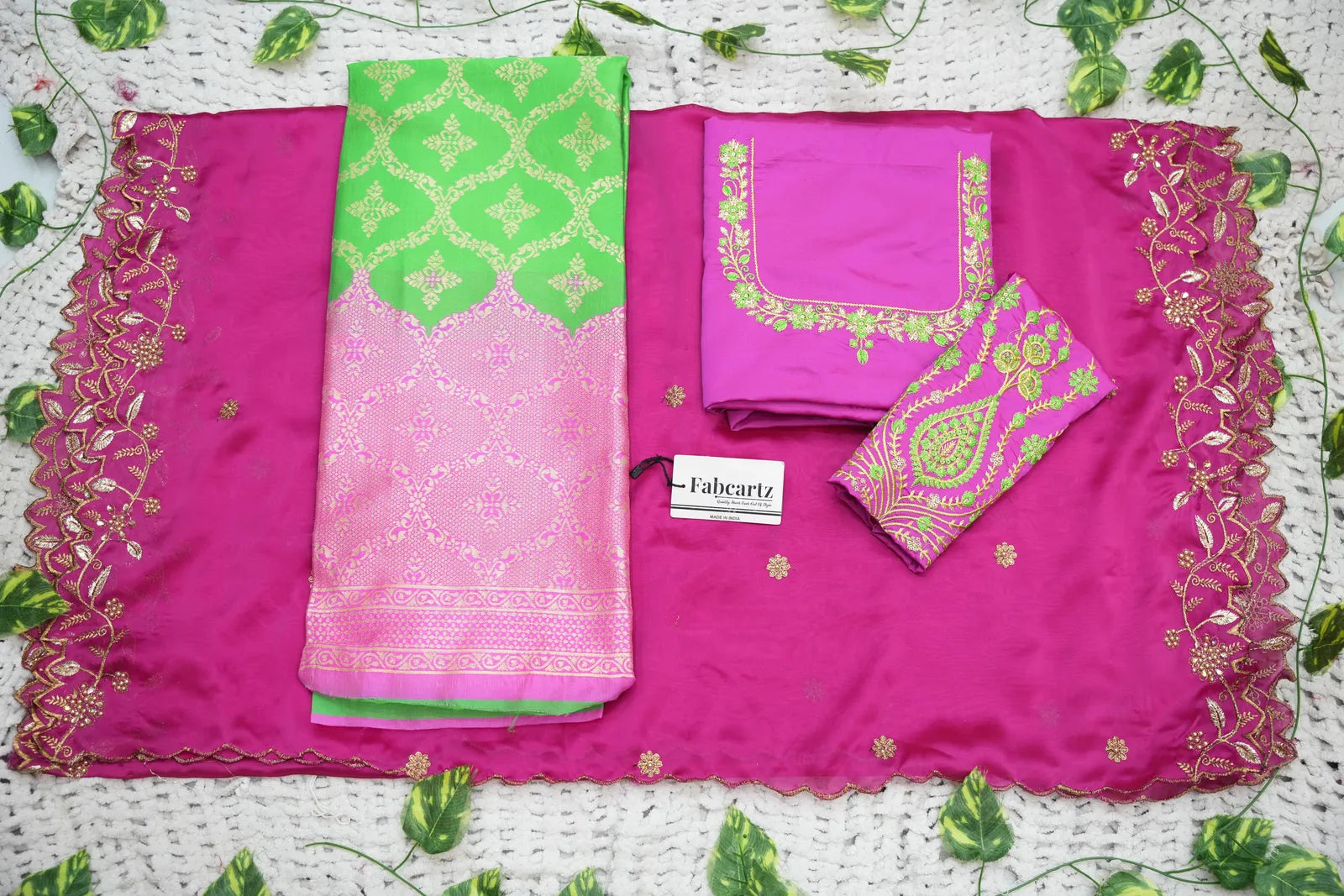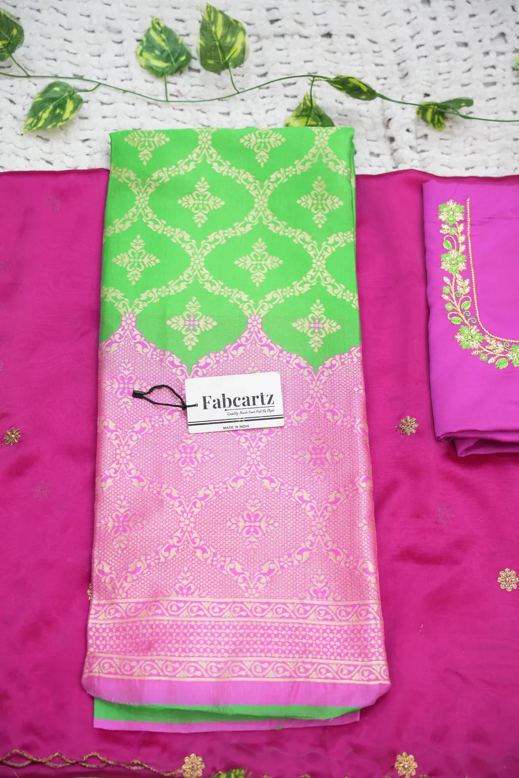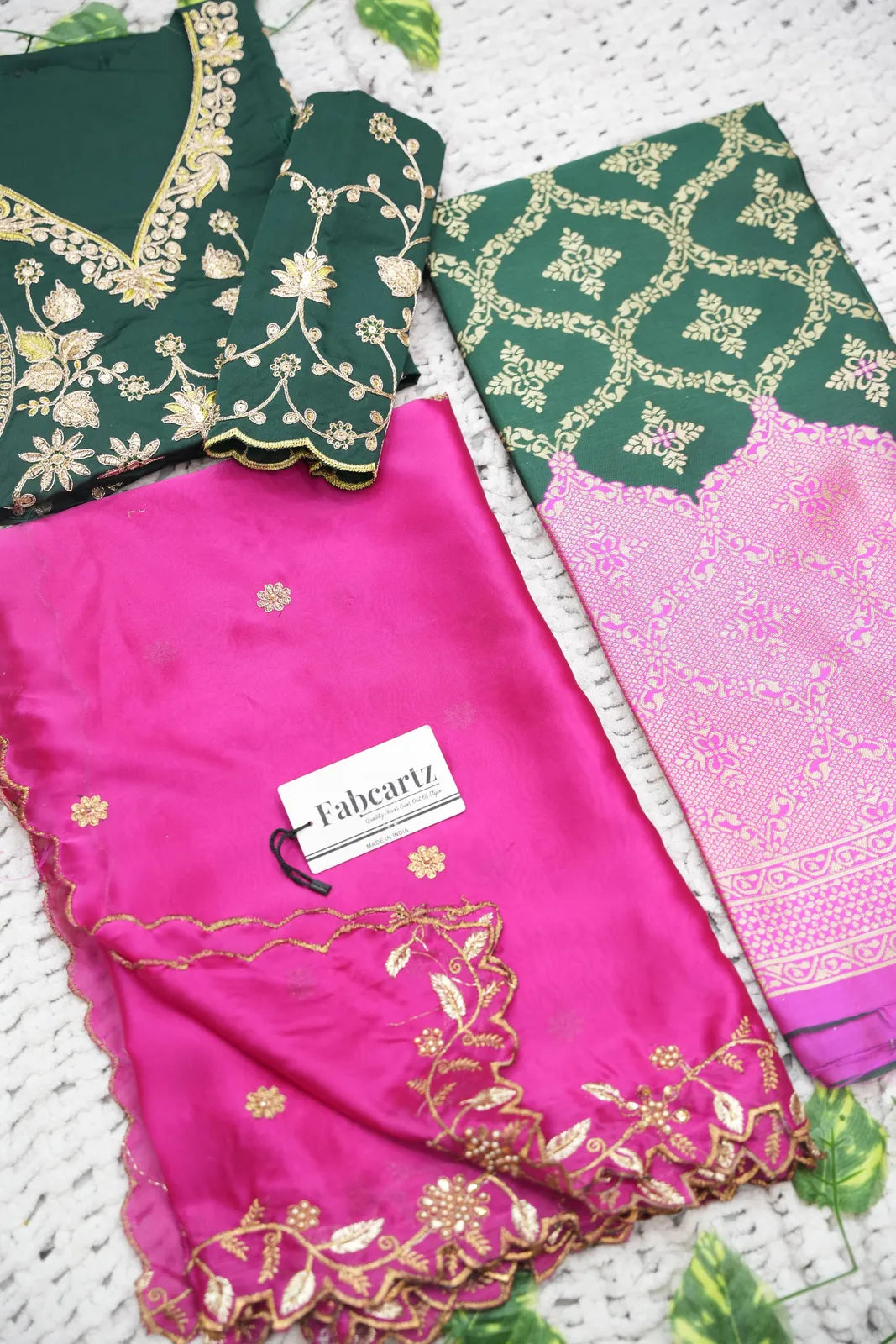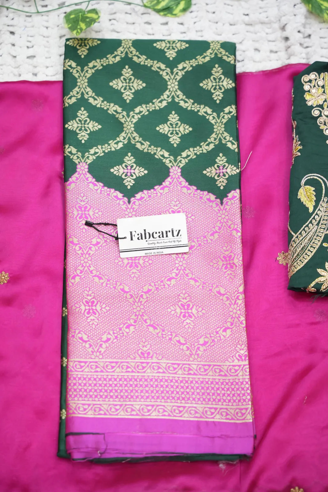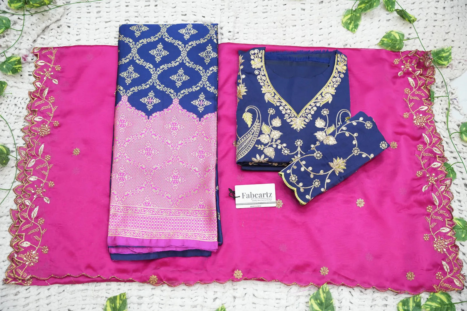 Crafted from Taffeta Satin (Litchi Silk) with intricate Zari work, offering a rich and elegant look.