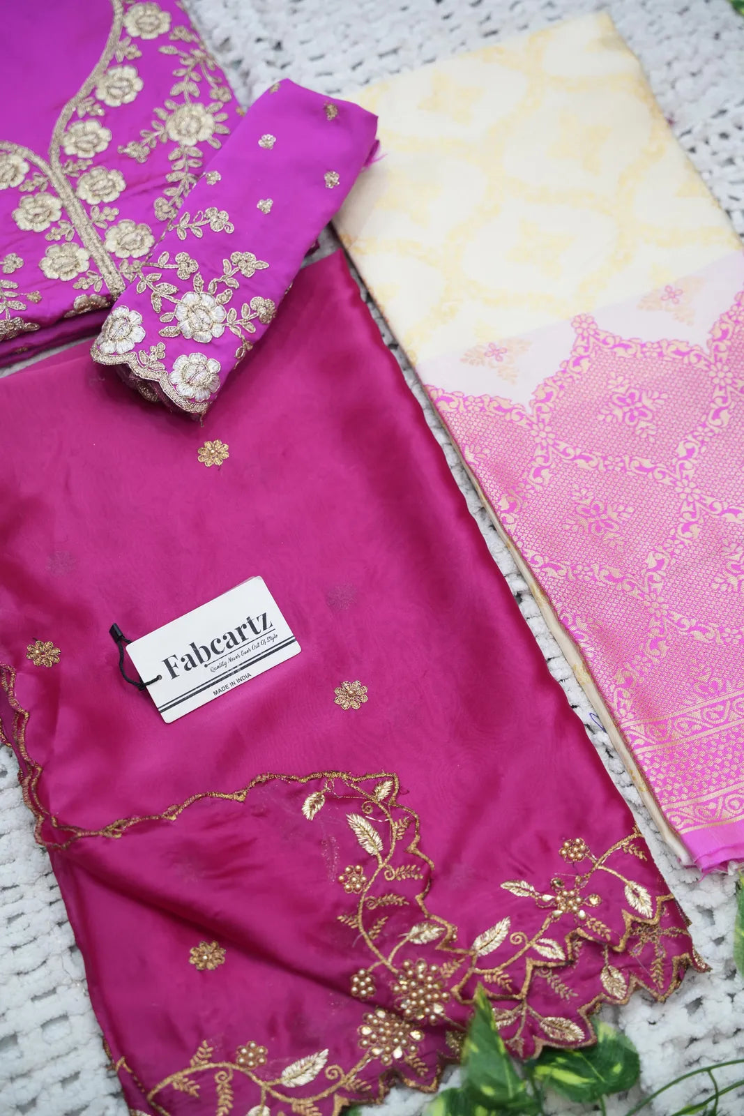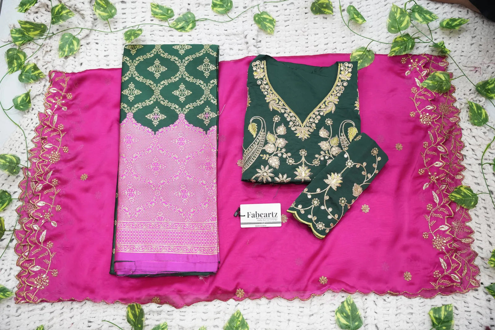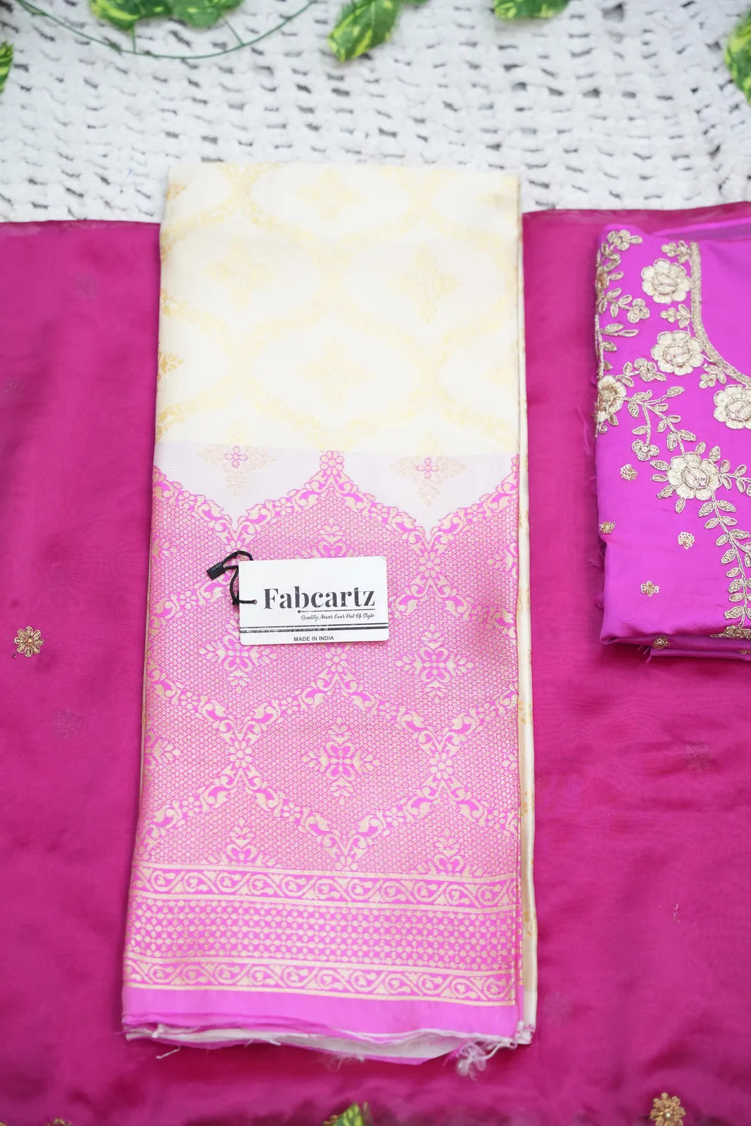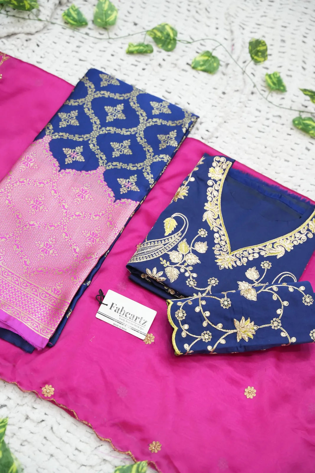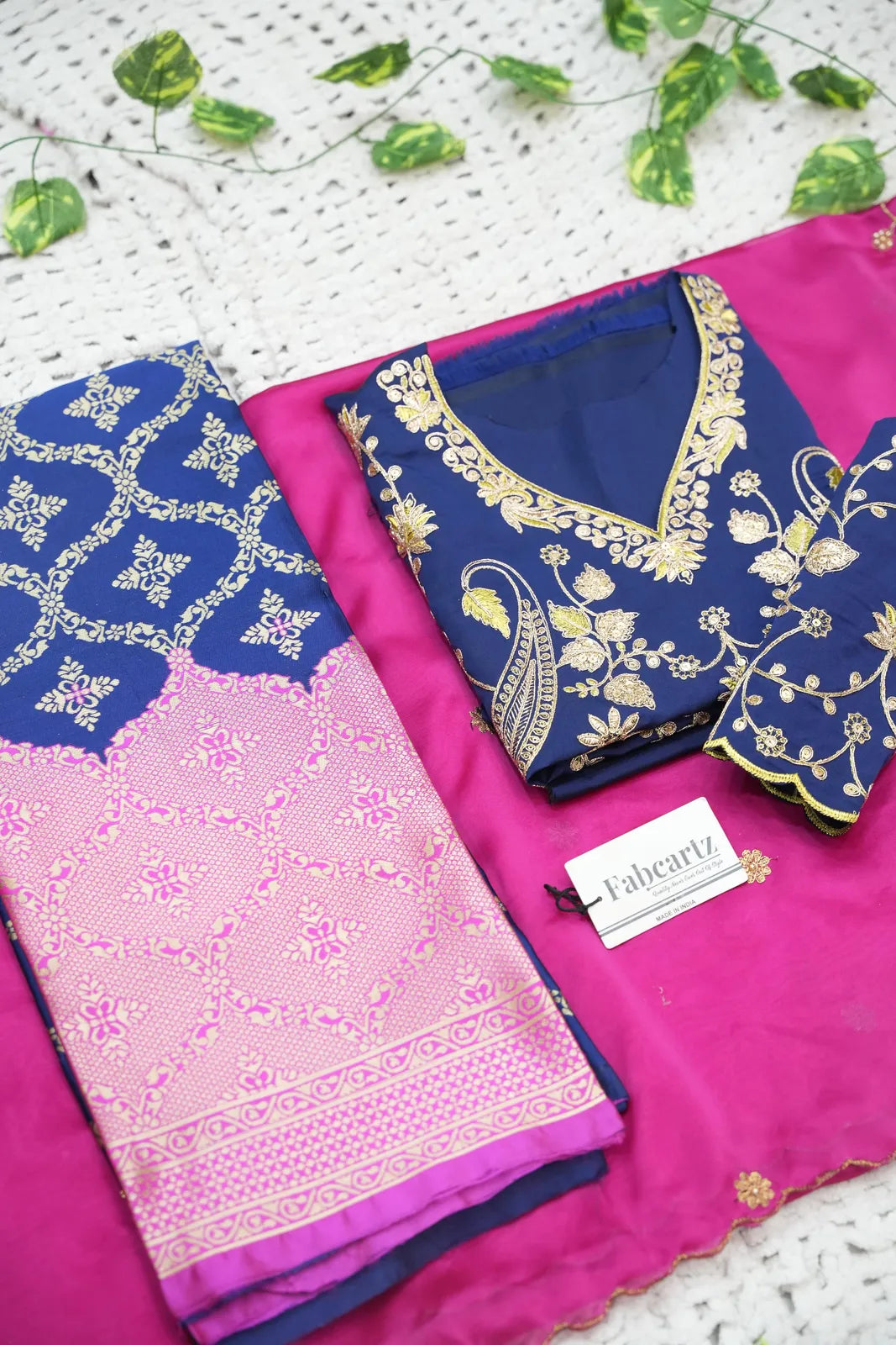 Crafted from Taffeta Satin (Litchi Silk) with intricate Zari work, offering a rich and elegant look.