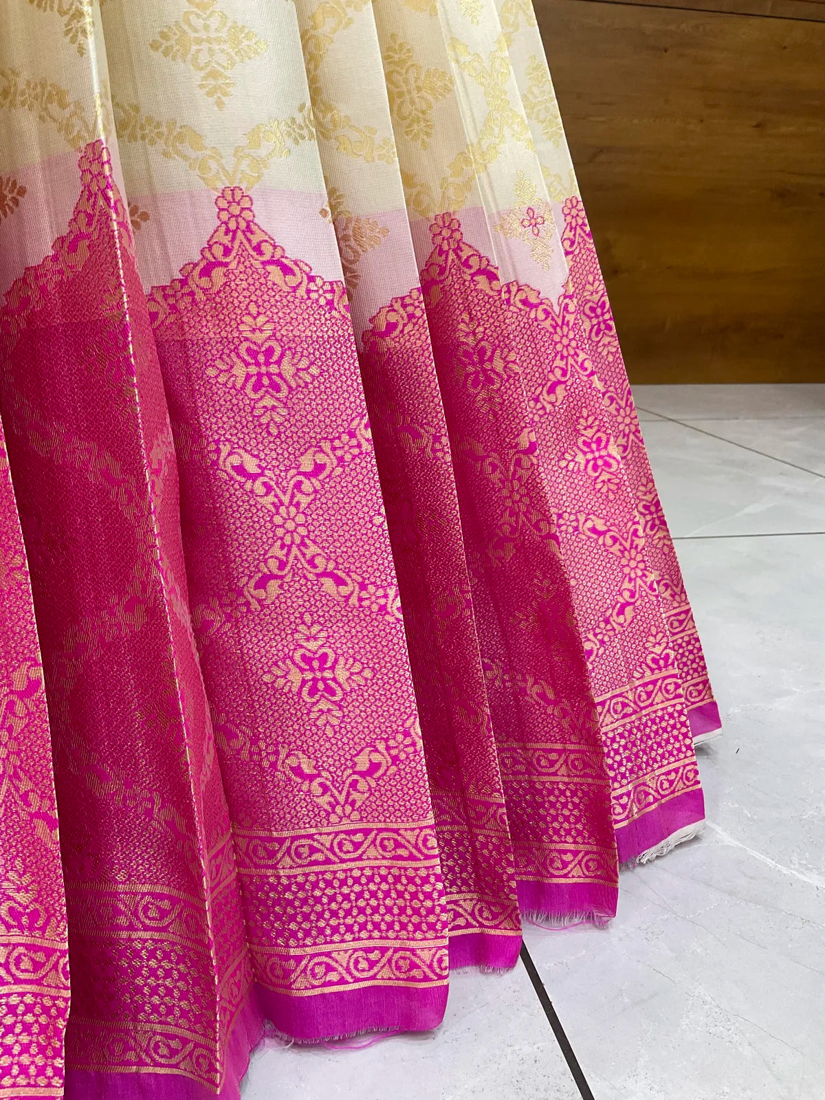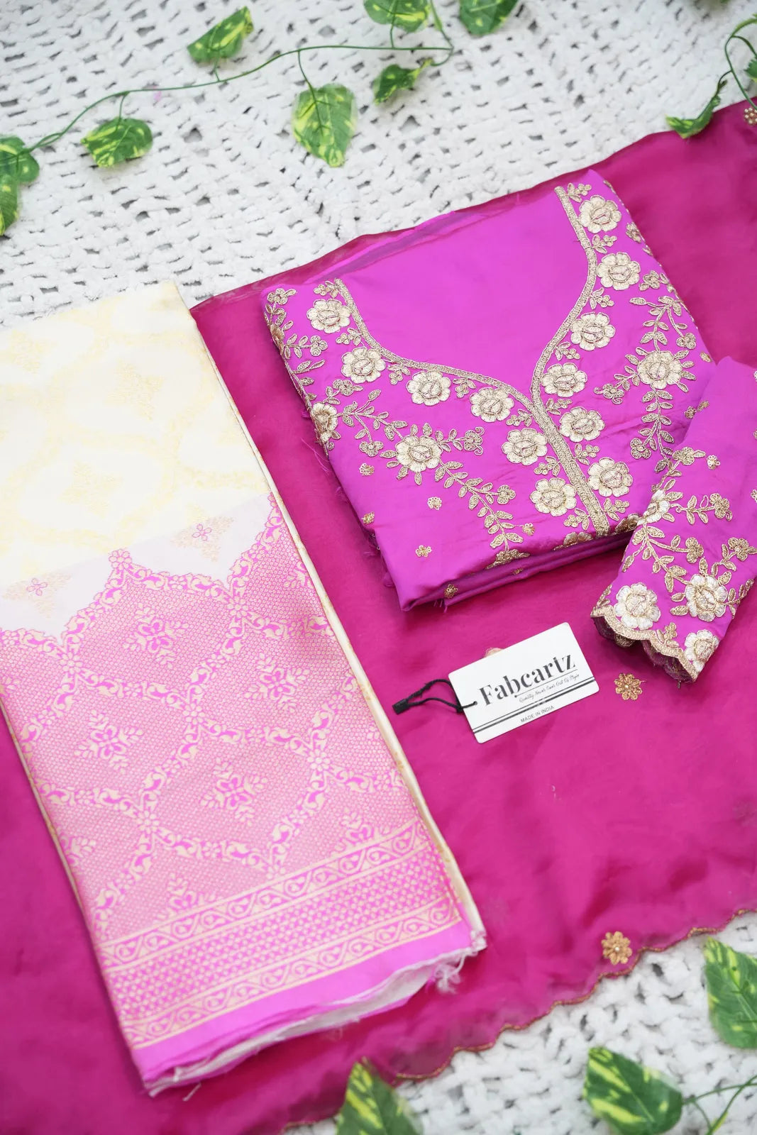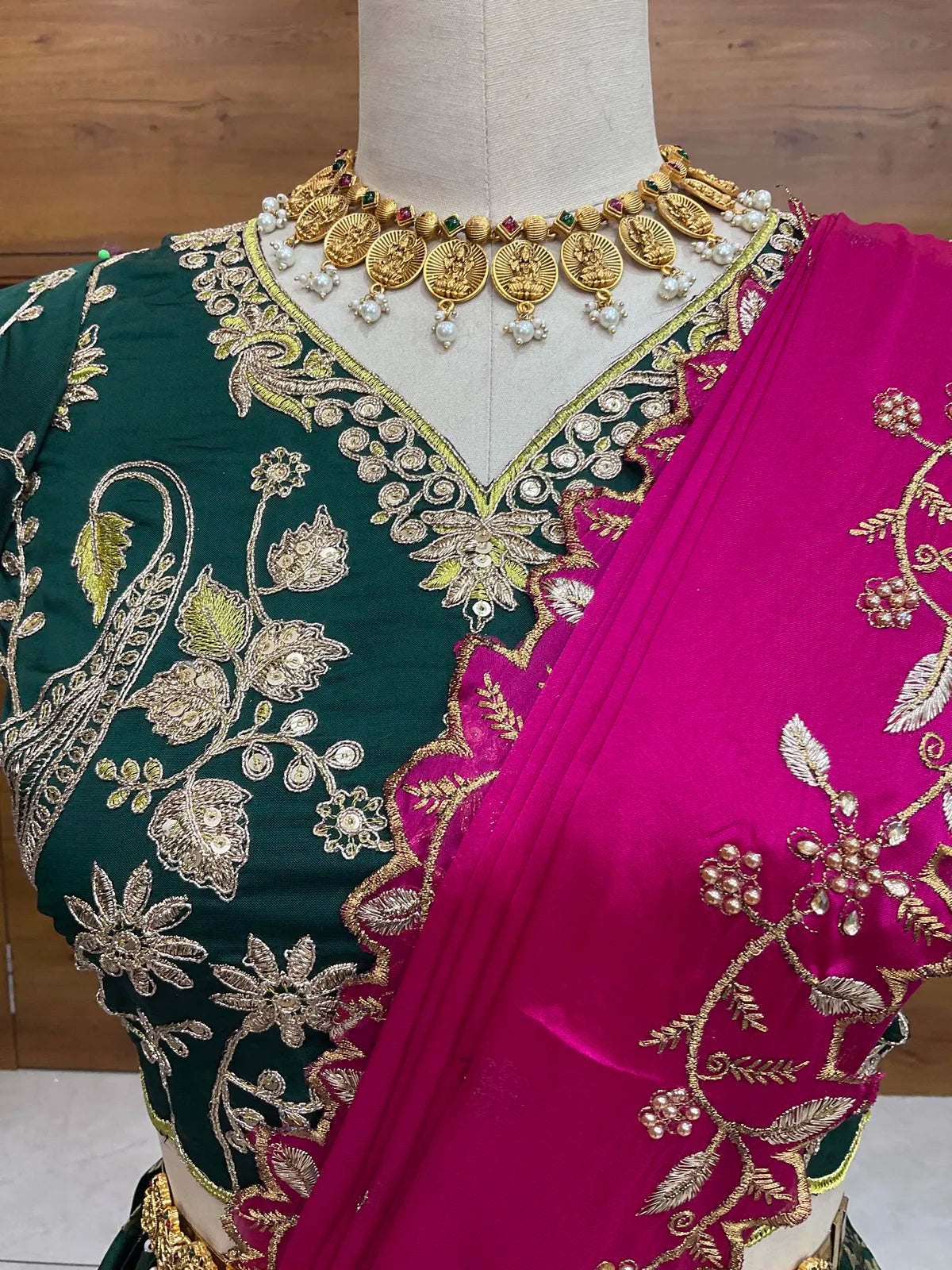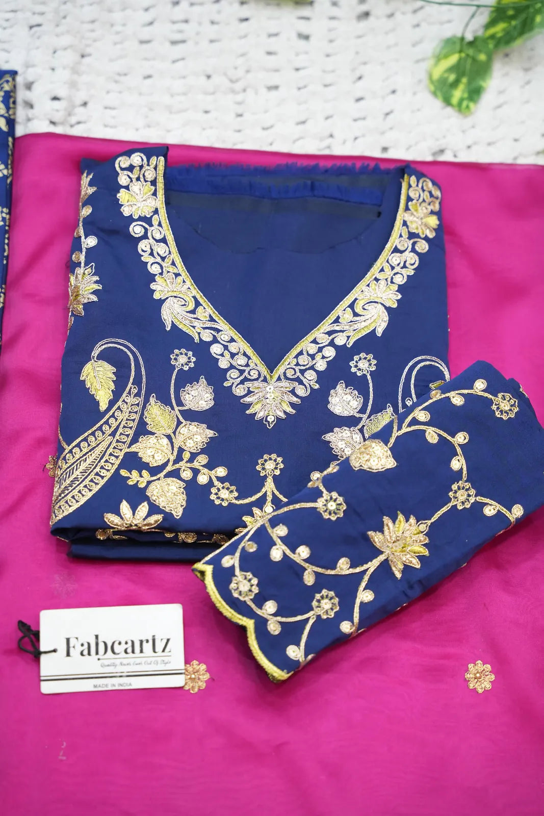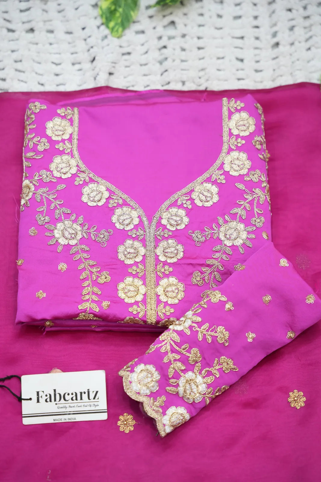 Crafted from Taffeta Satin (Litchi Silk) with intricate Zari work, offering a rich and elegant look.