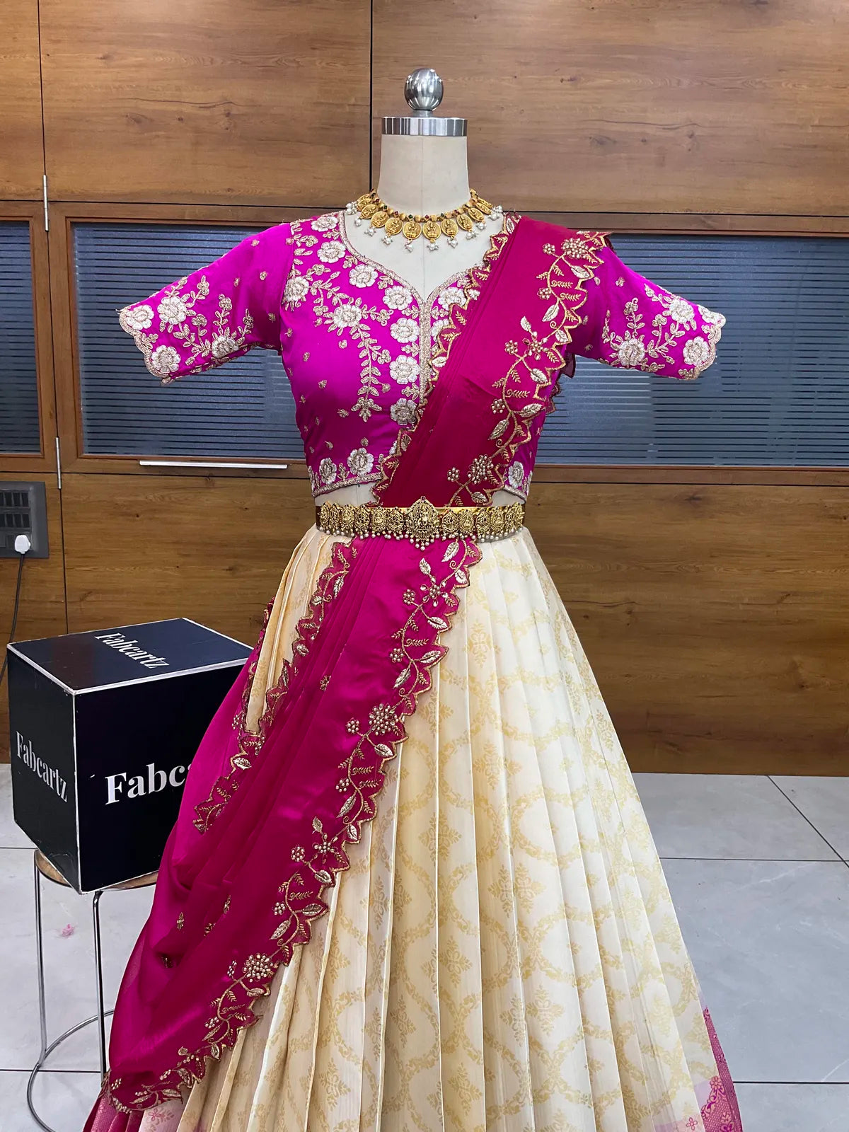 (Adhira) South Indian Festival Traditional Half Saree with Embroidered Blouse & Dupatta