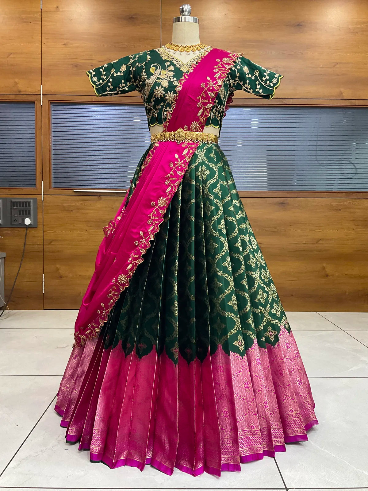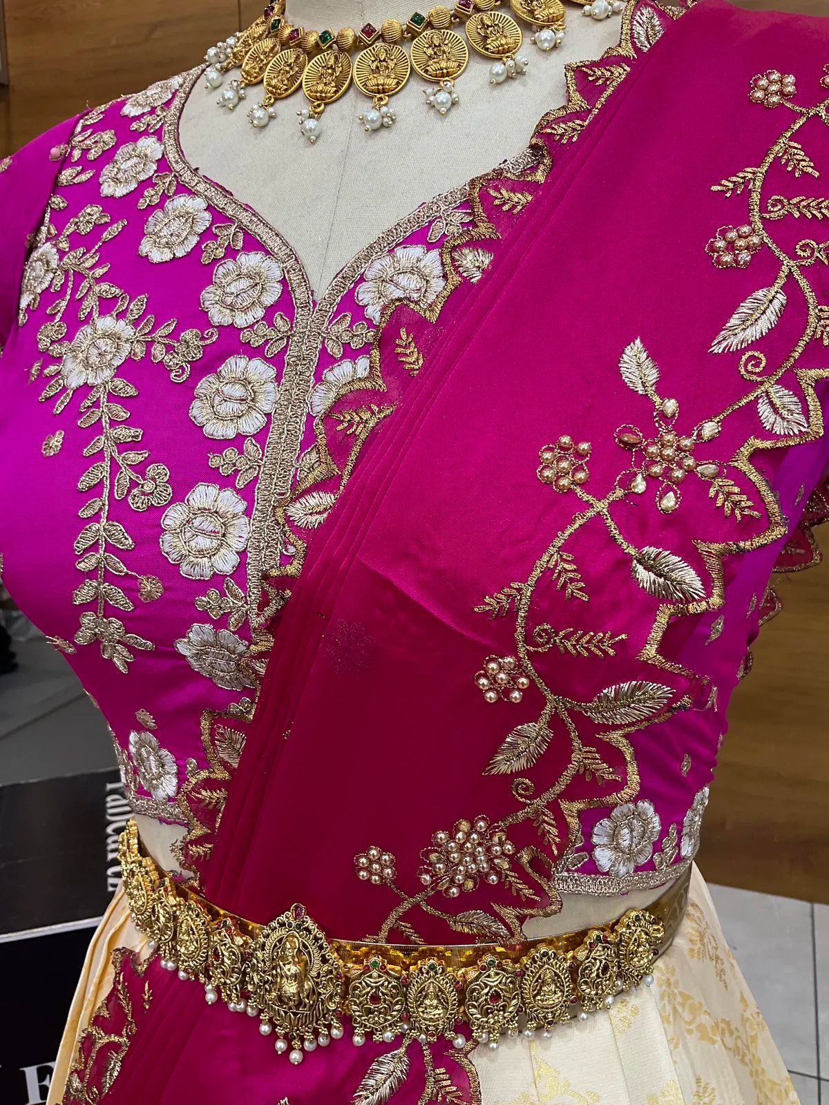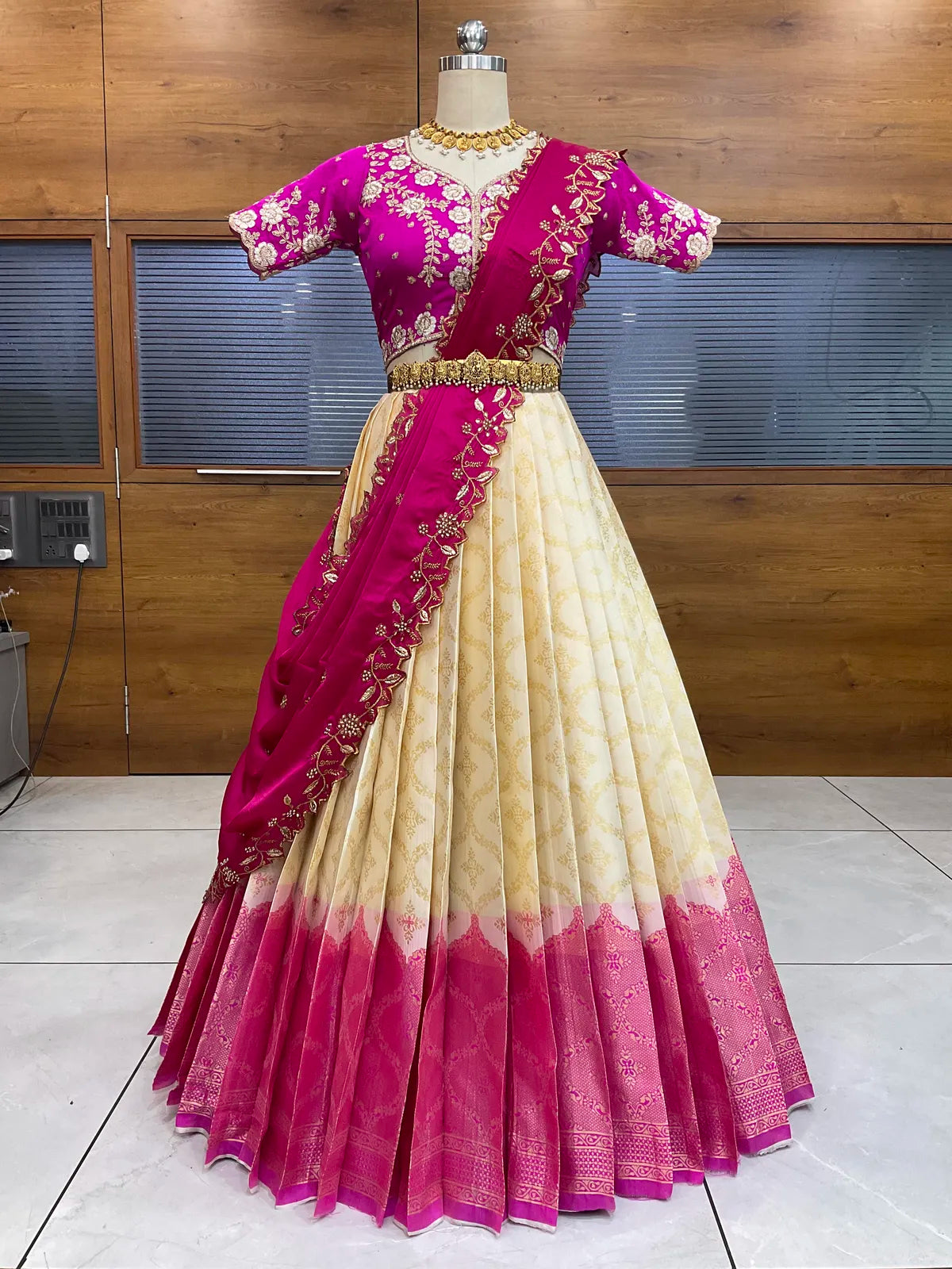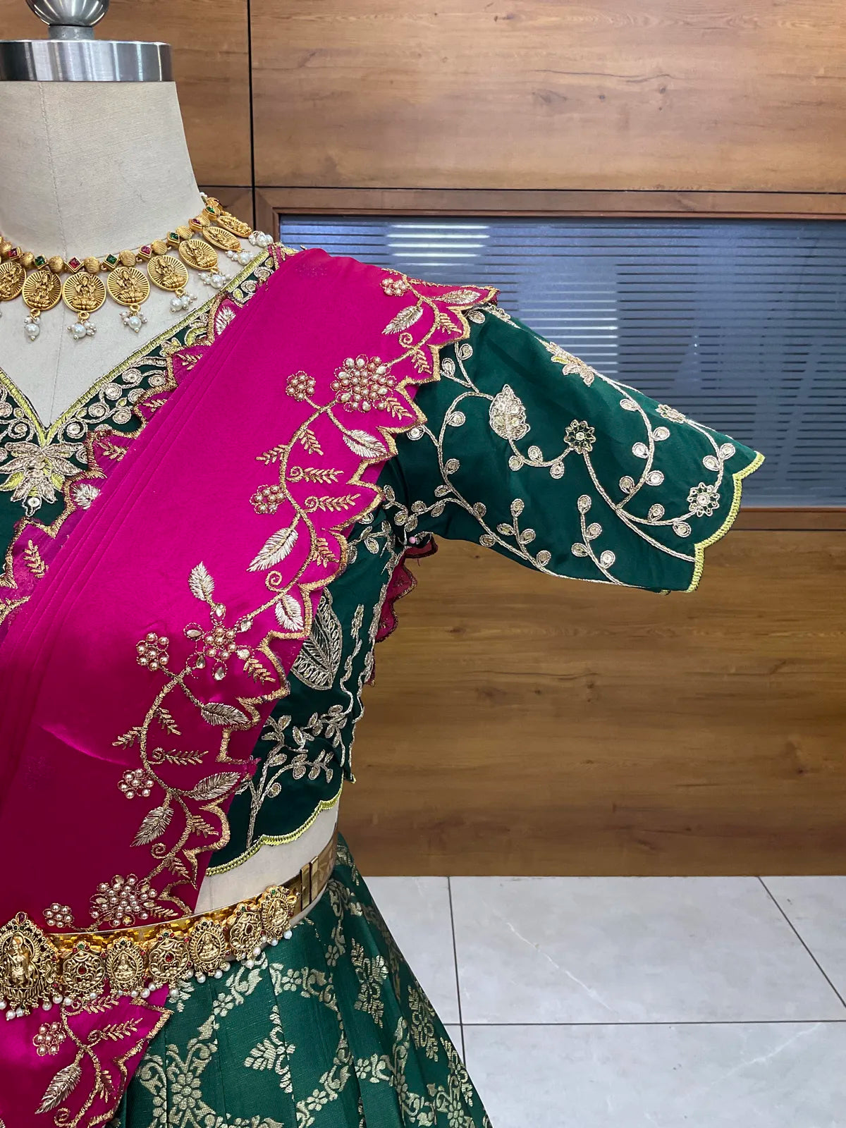 (ButtaBomma) South Indian Festival Traditional Half Saree with Embroidered Blouse & Dupatta