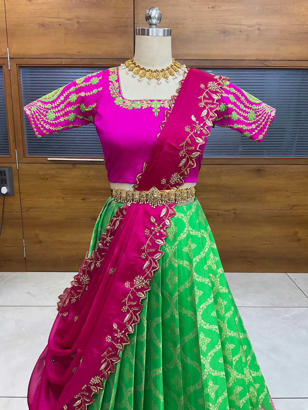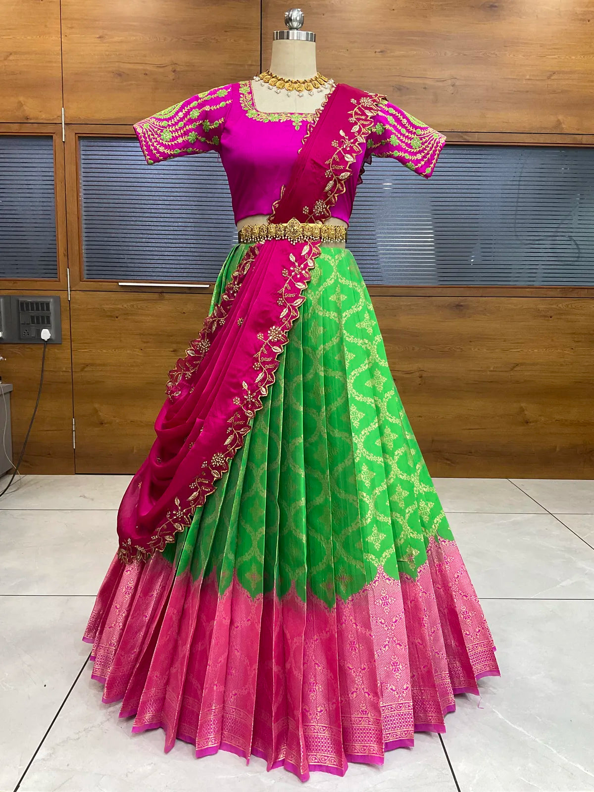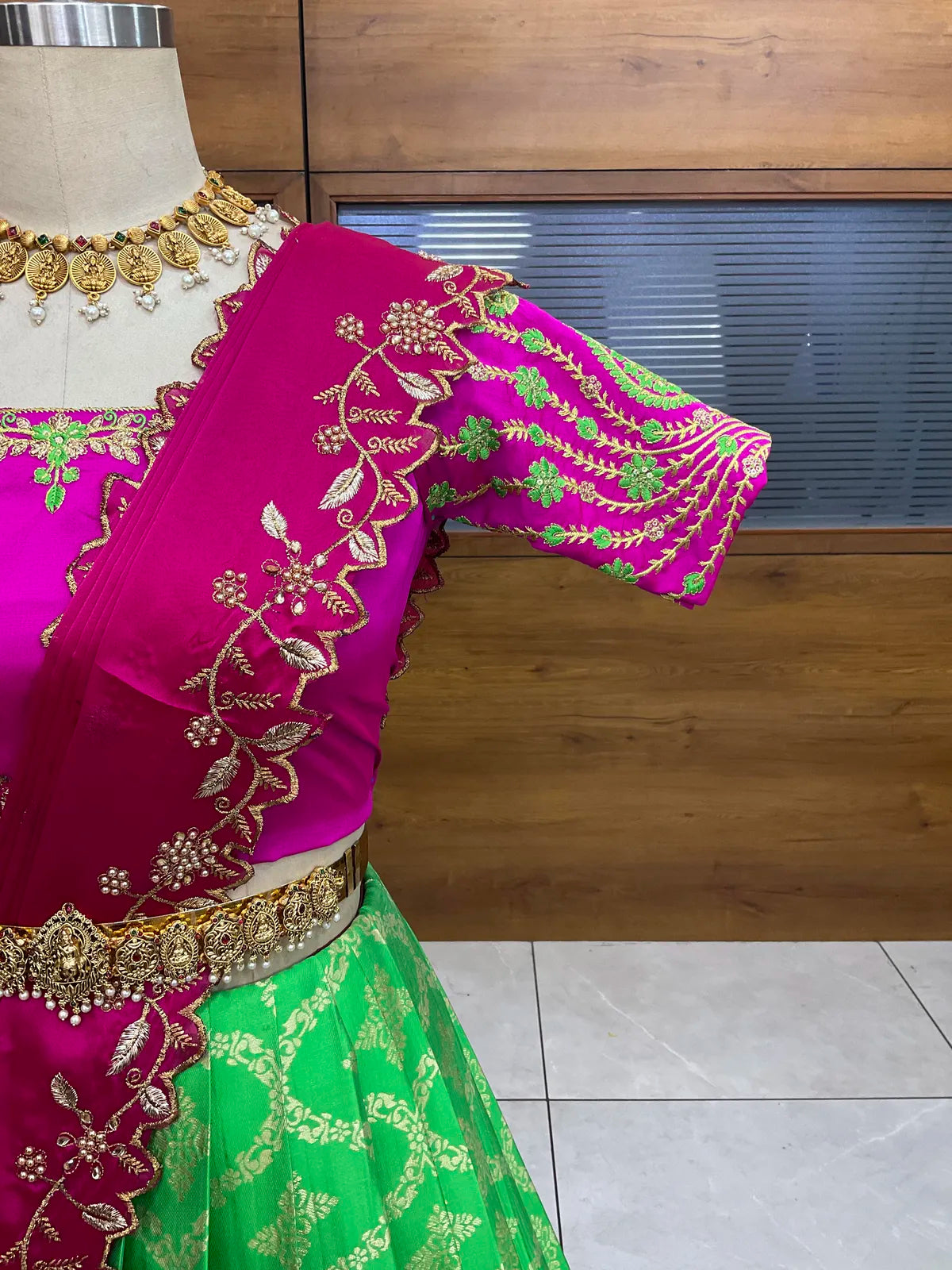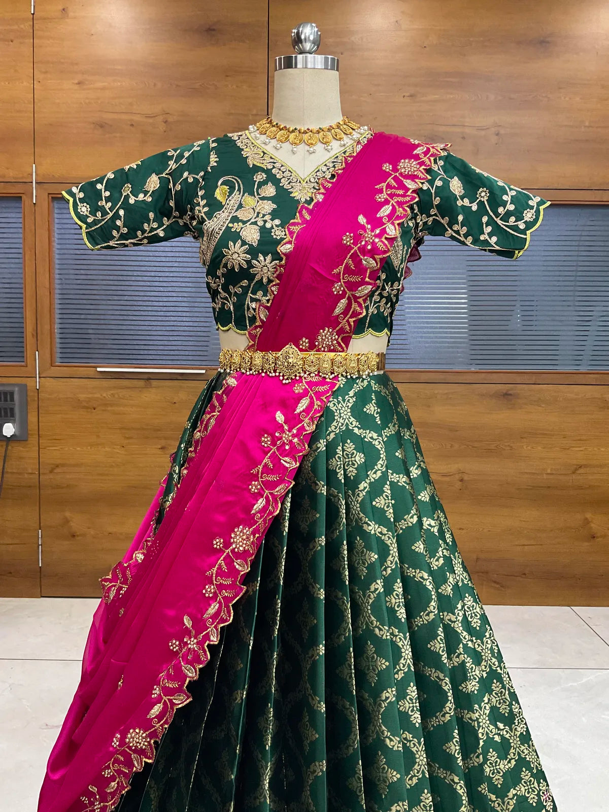 (ButtaBomma) South Indian Festival Traditional Half Saree with Embroidered Blouse & Dupatta