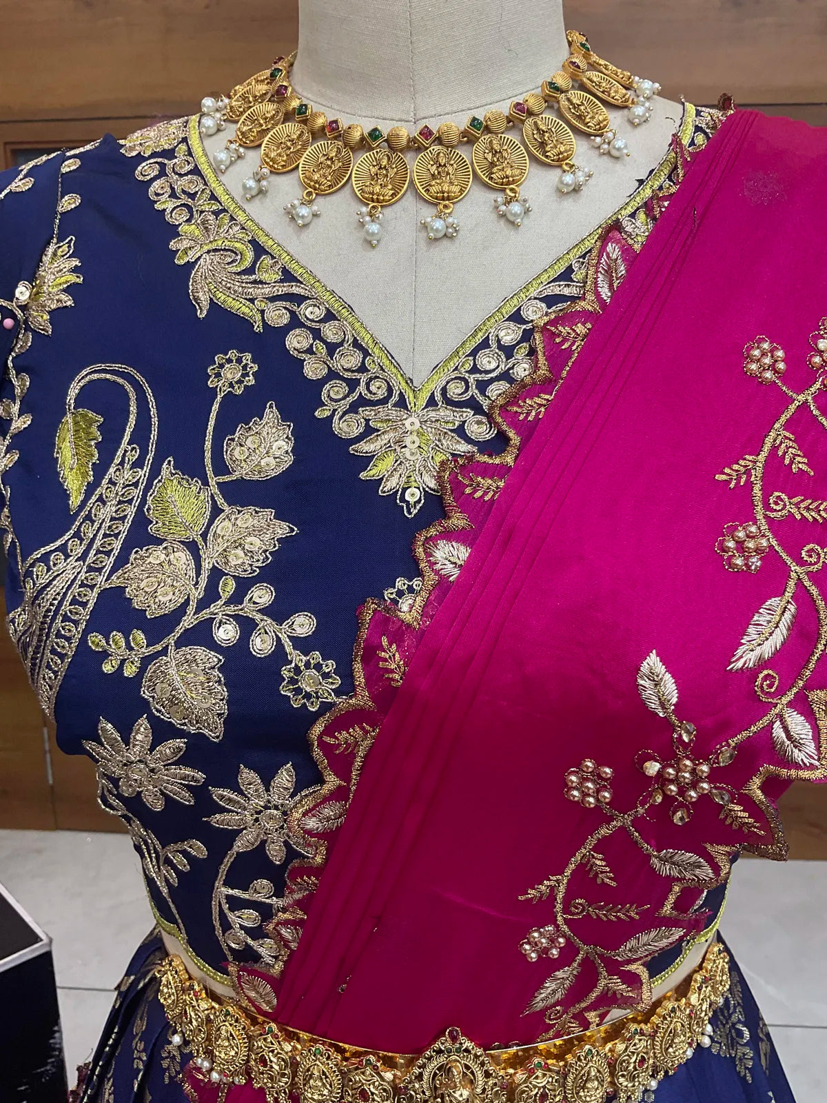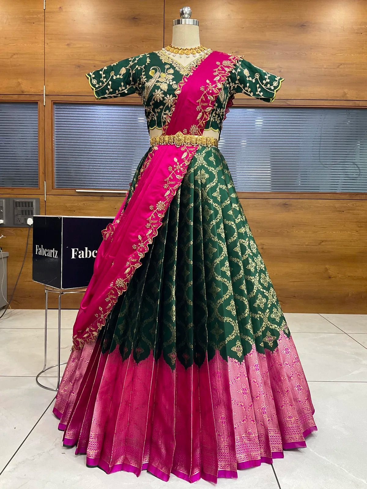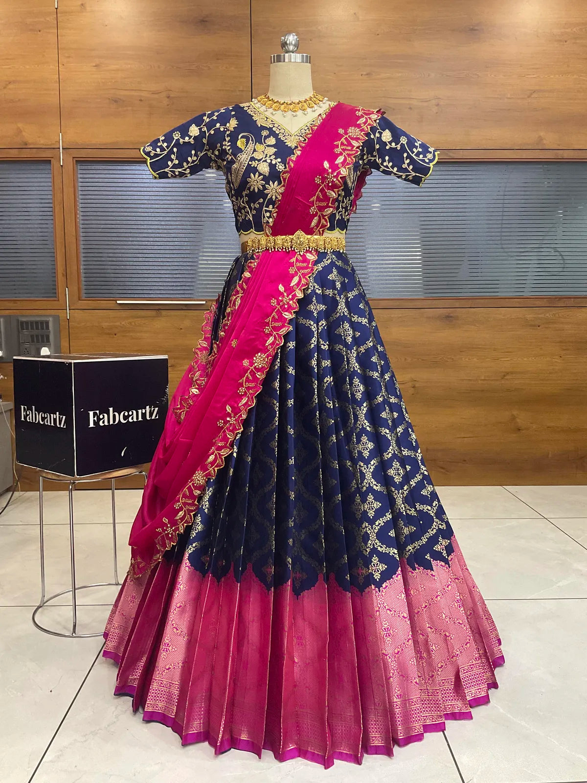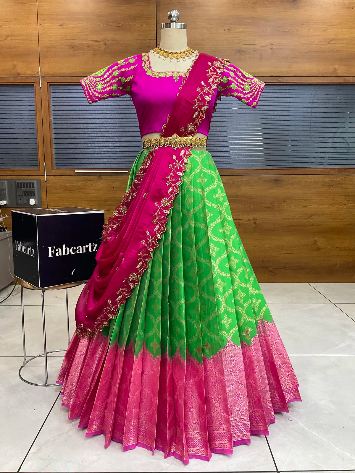 (ButtaBomma) South Indian Festival Traditional Half Saree with Embroidered Blouse & Dupatta
