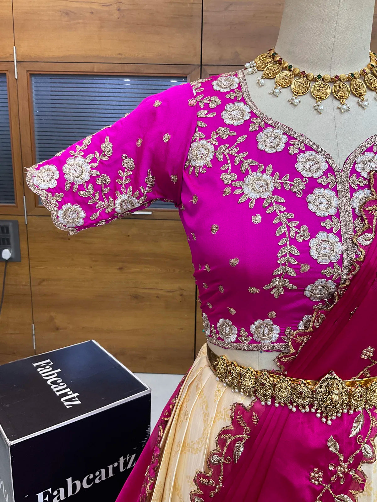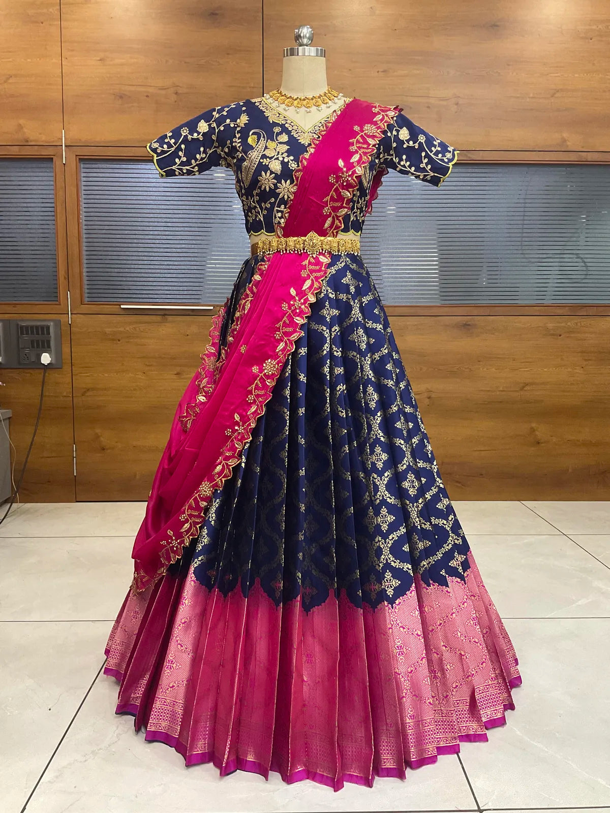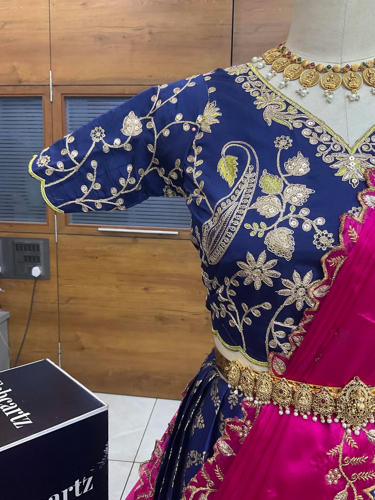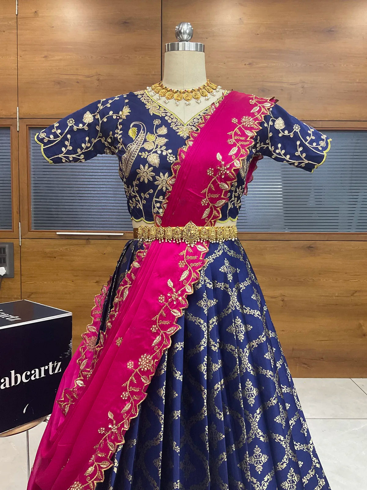 (ButtaBomma) South Indian Festival Traditional Half Saree with Embroidered Blouse & Dupatta