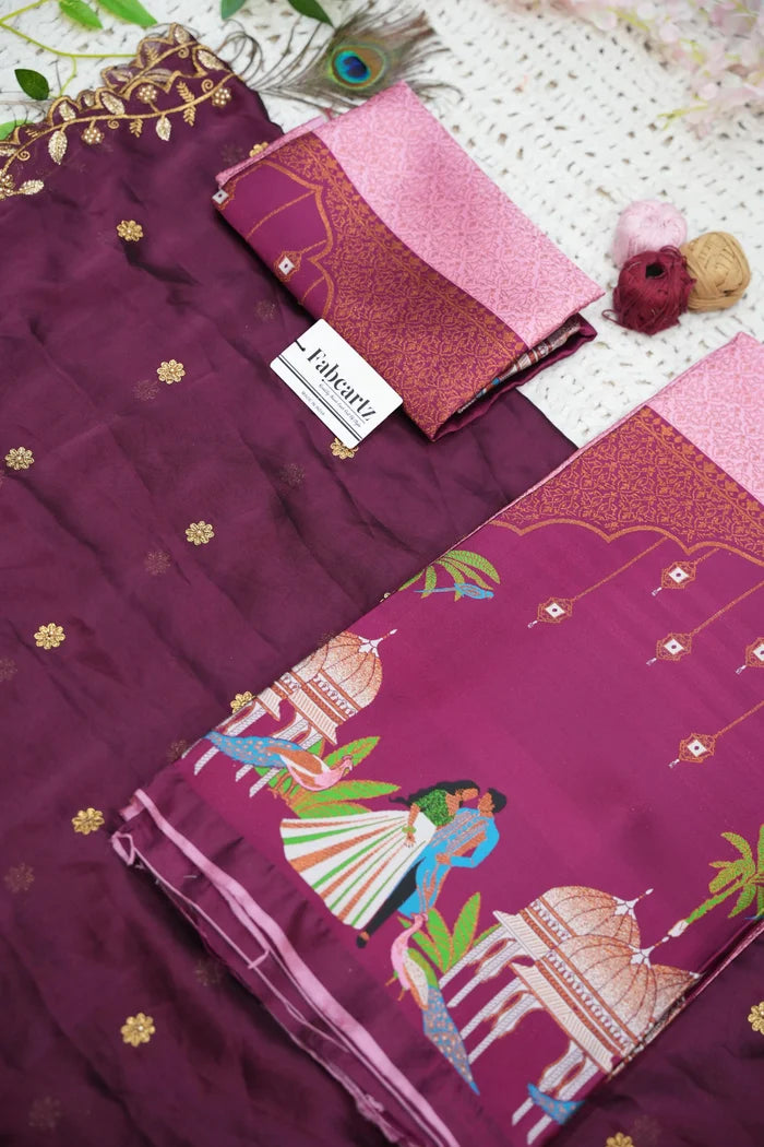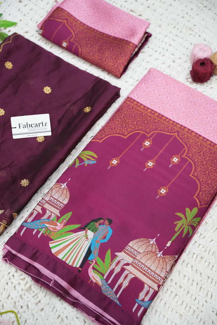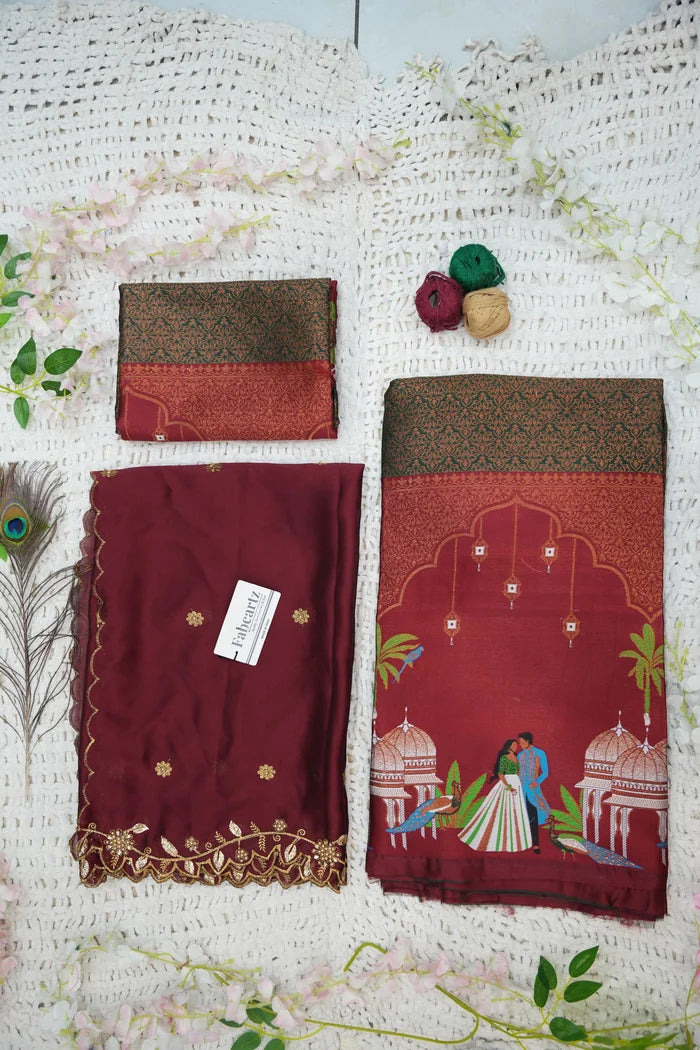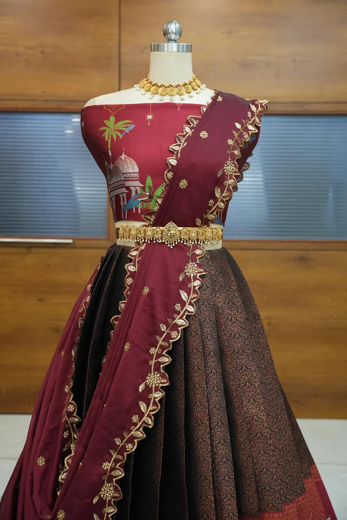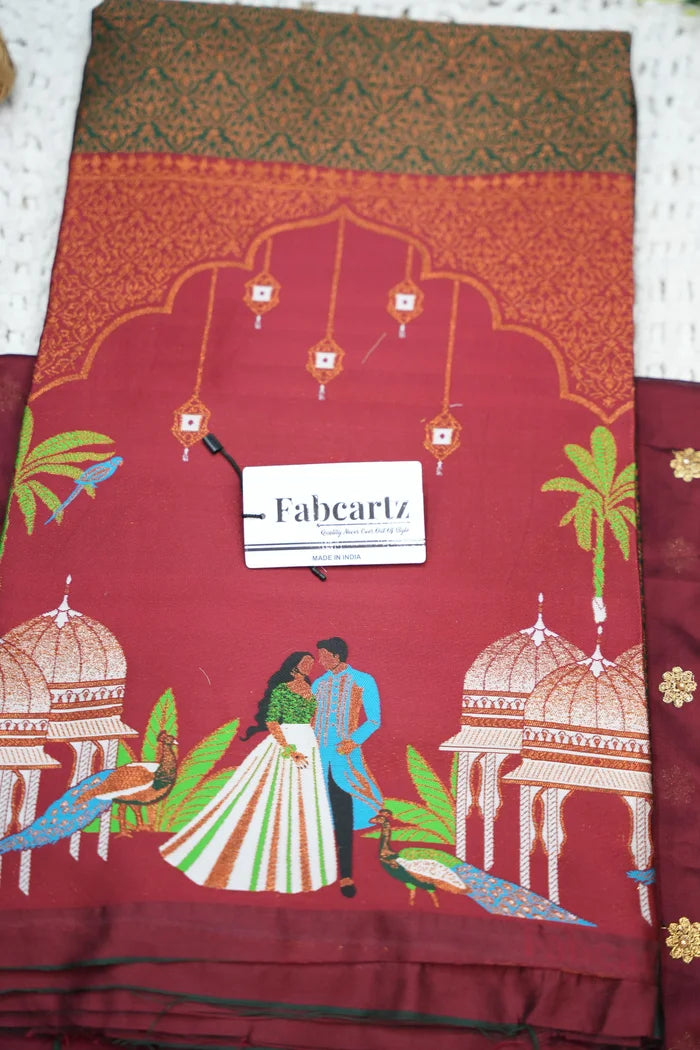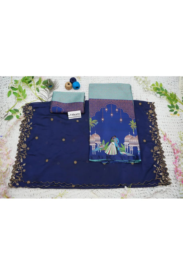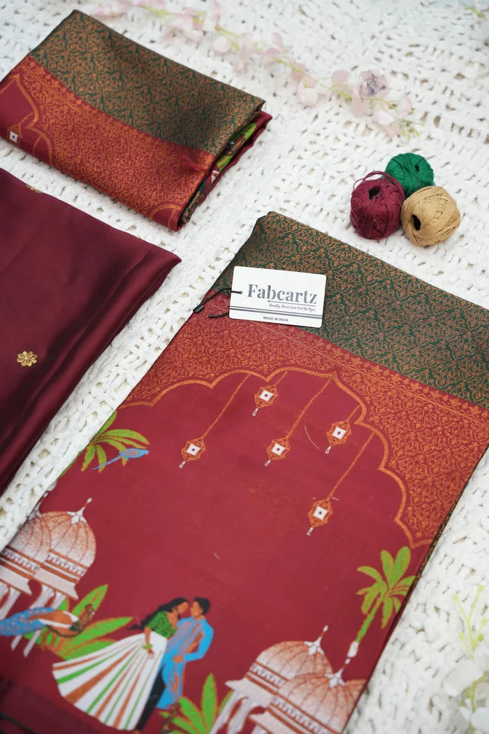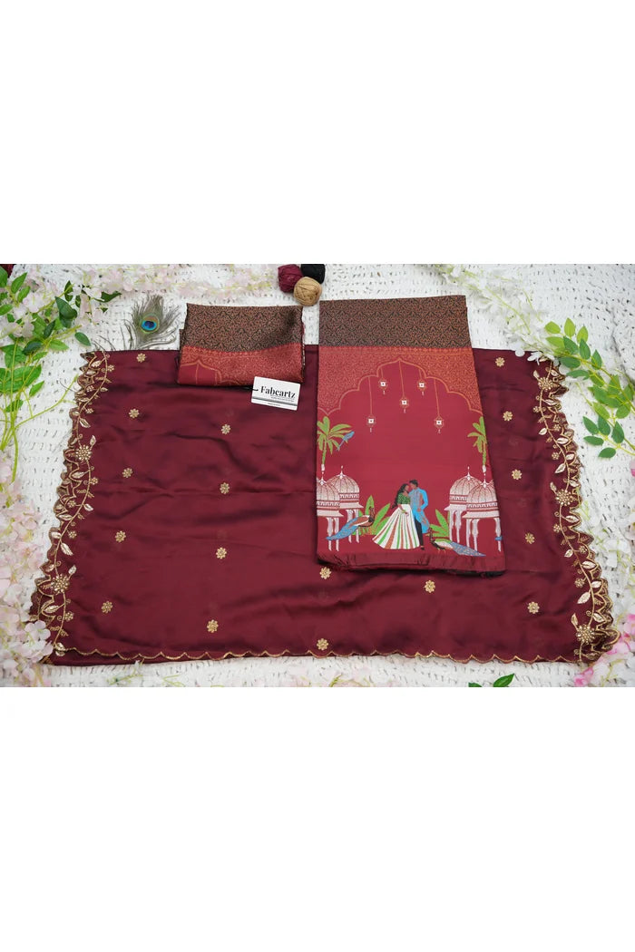 Crafted from Taffeta Satin (Litchi Silk) with intricate Zari work, offering a rich and elegant look.