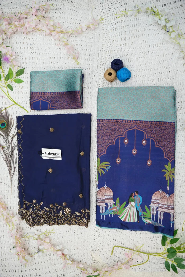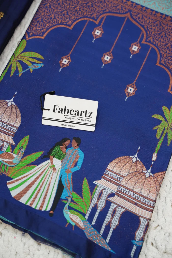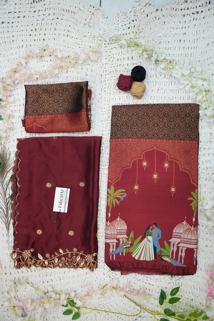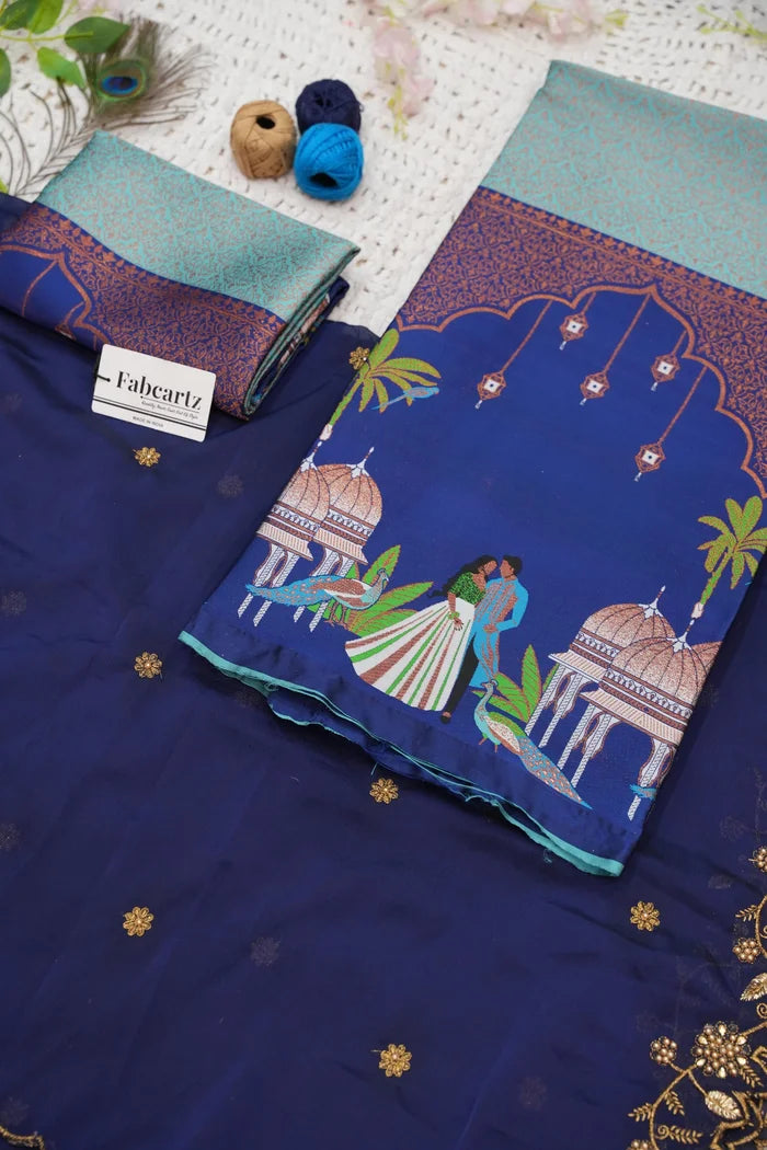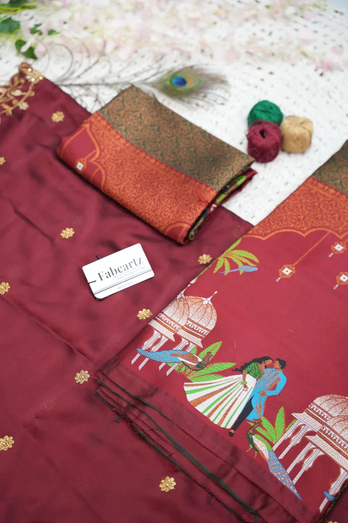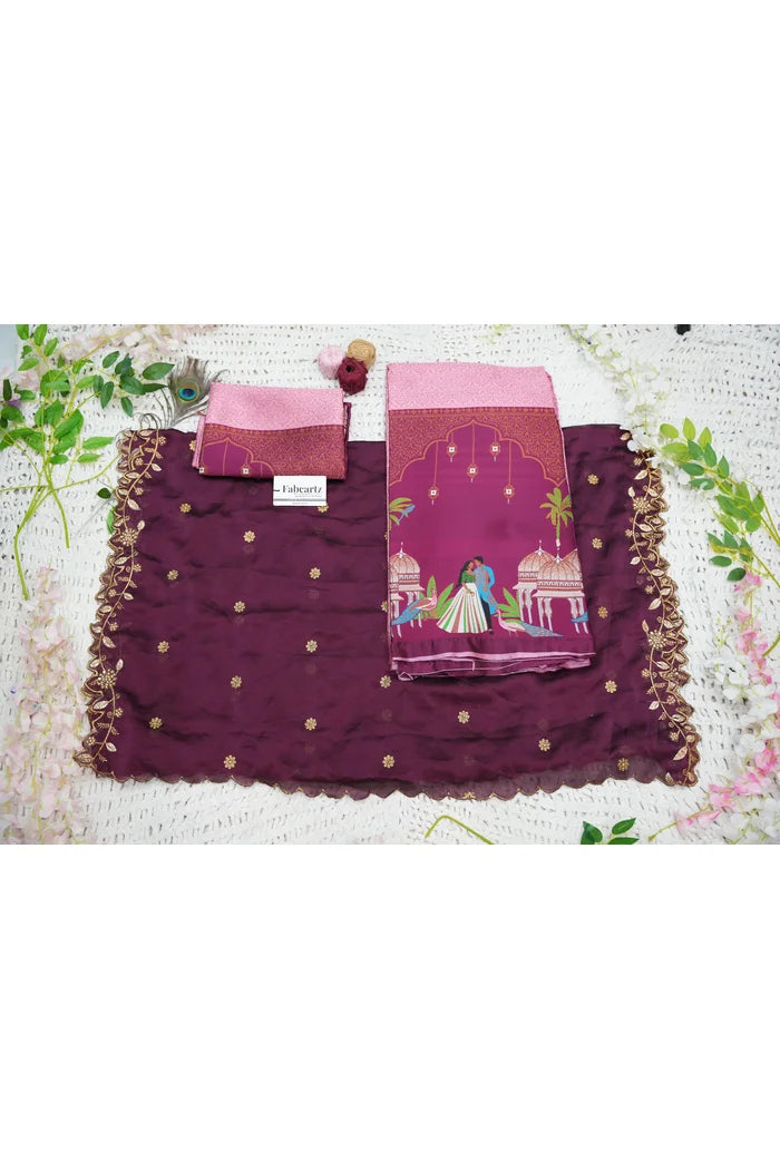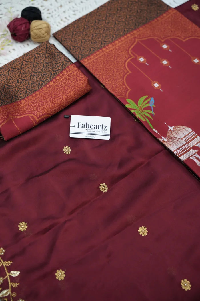 Crafted from Taffeta Satin (Litchi Silk) with intricate Zari work, offering a rich and elegant look.