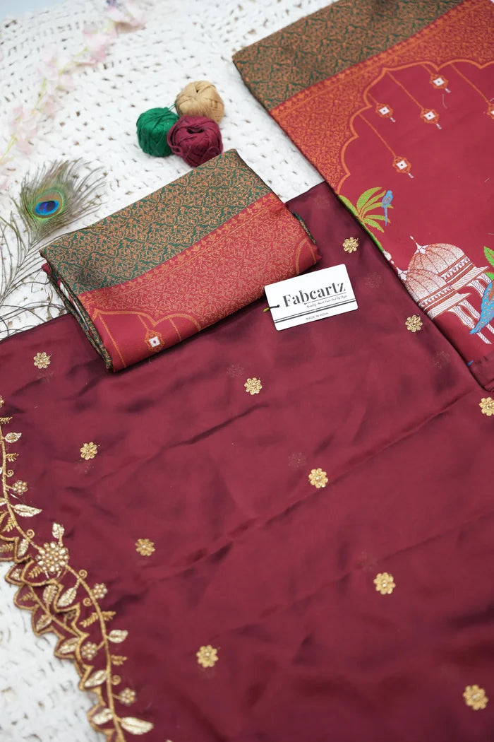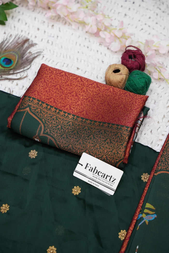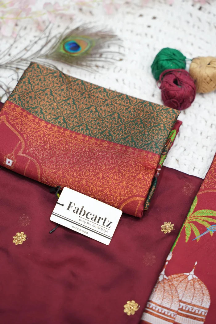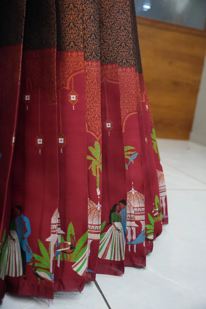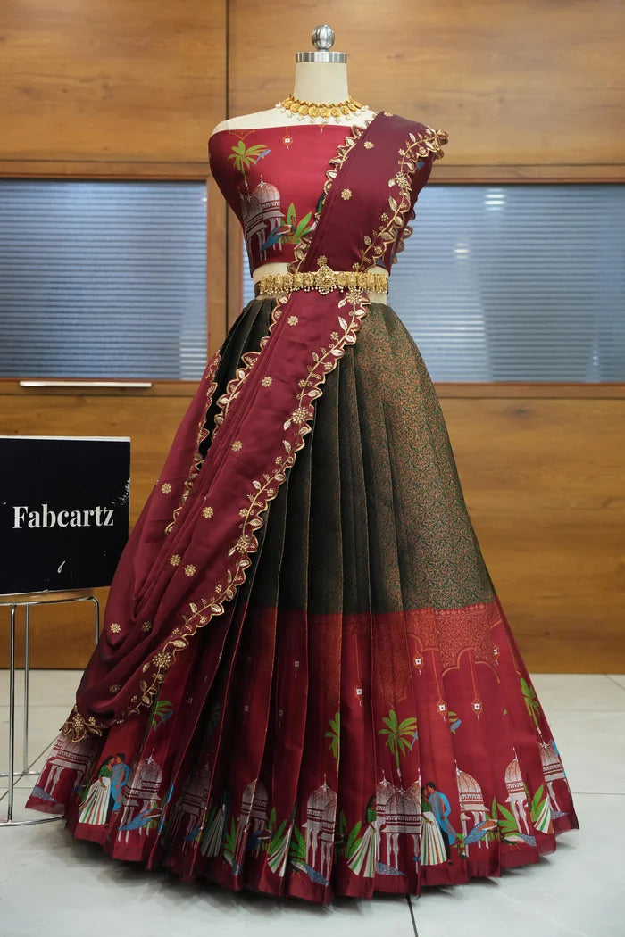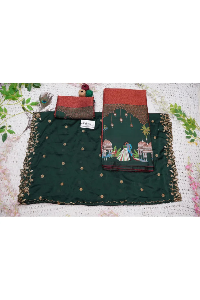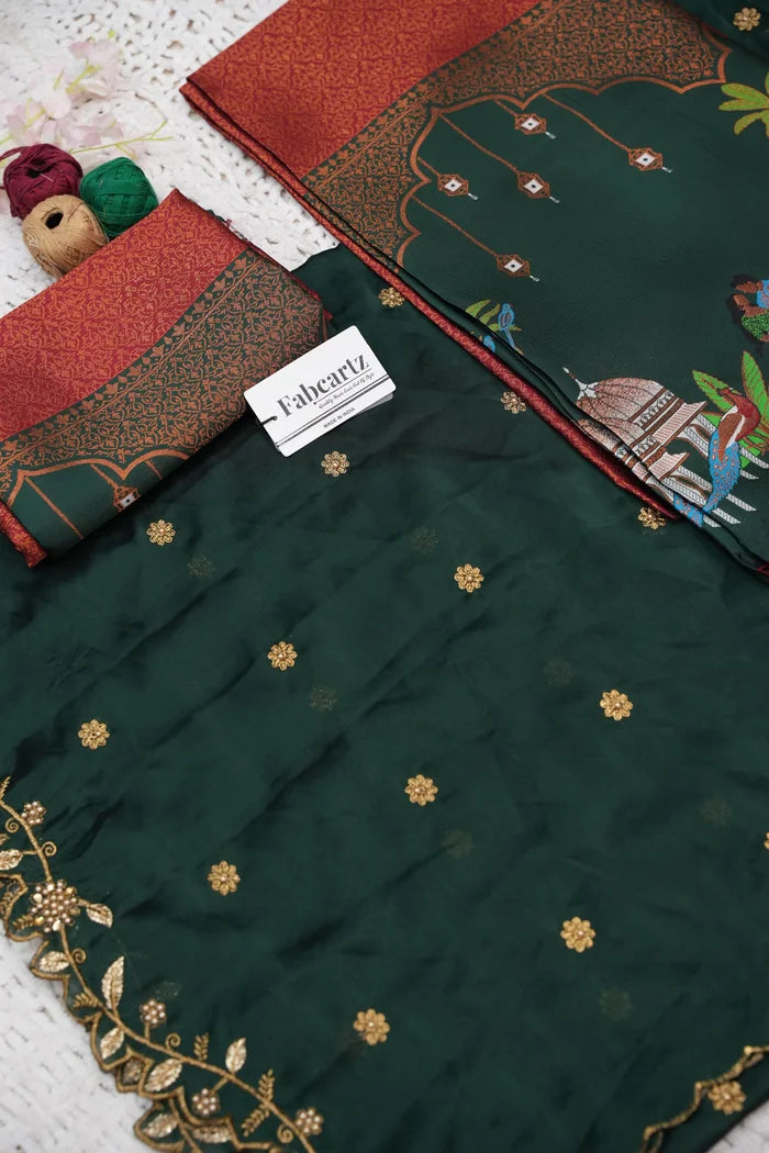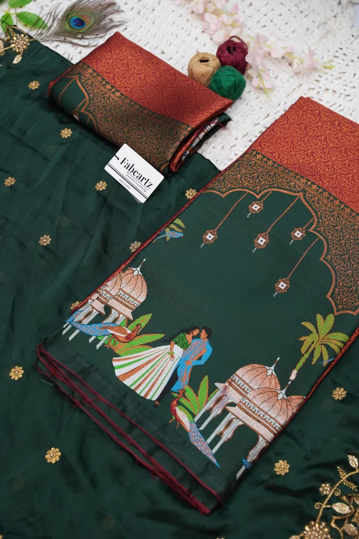 Crafted from Taffeta Satin (Litchi Silk) with intricate Zari work, offering a rich and elegant look.