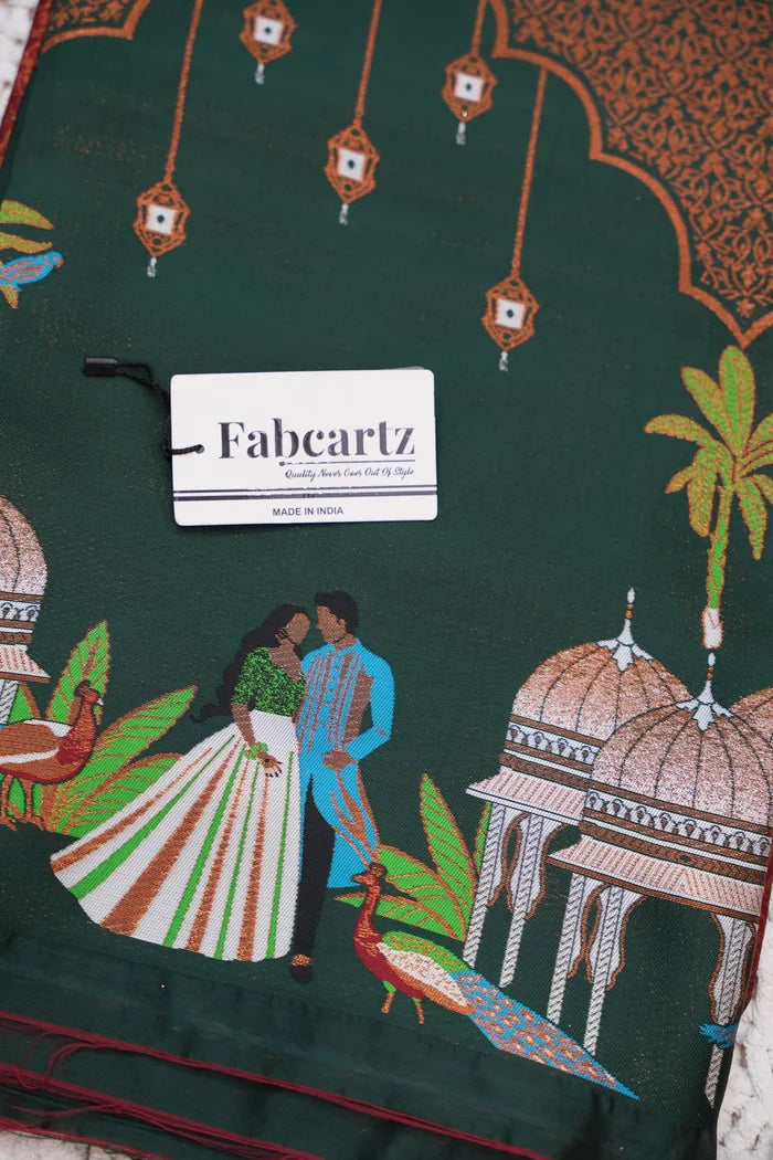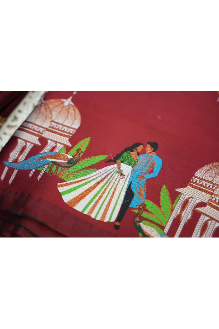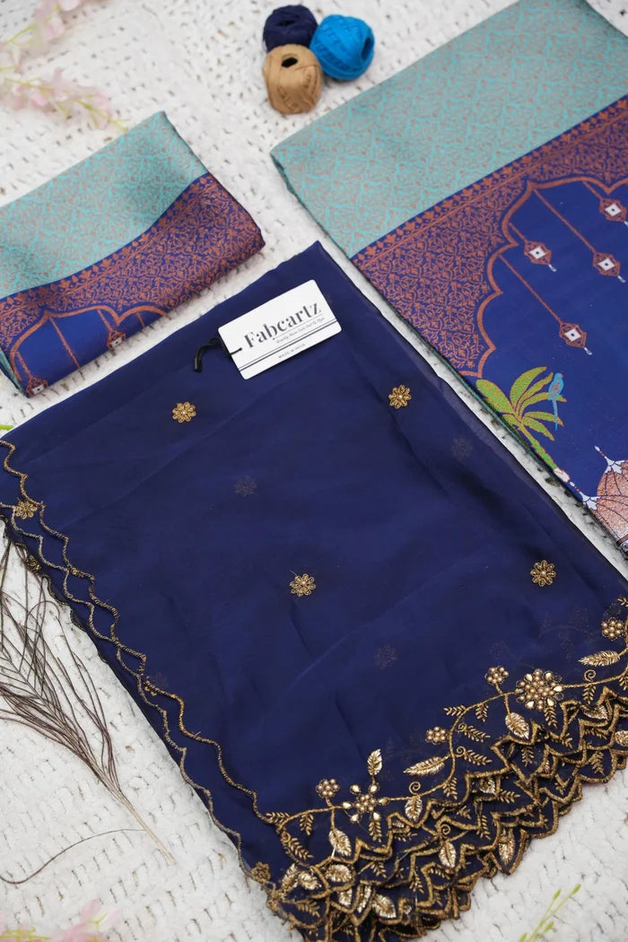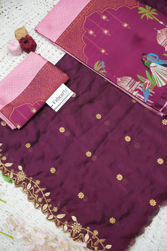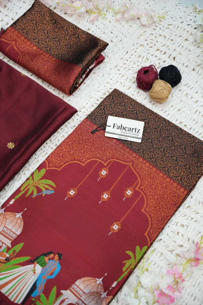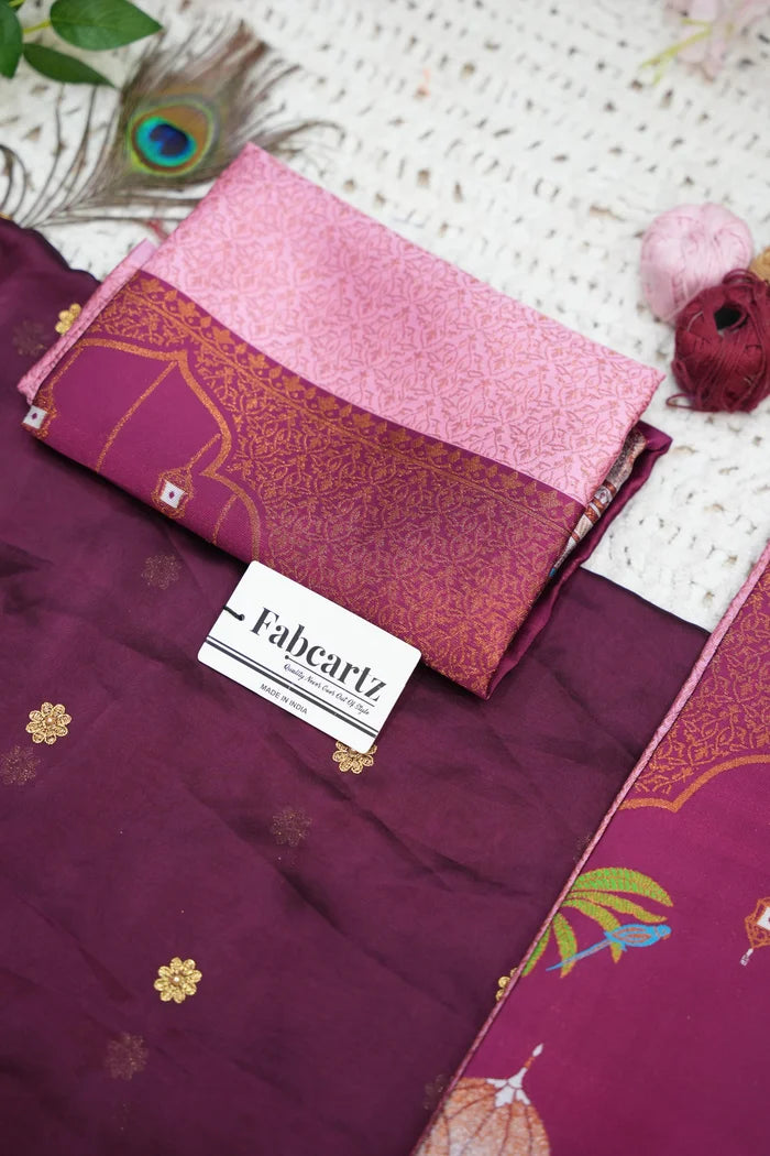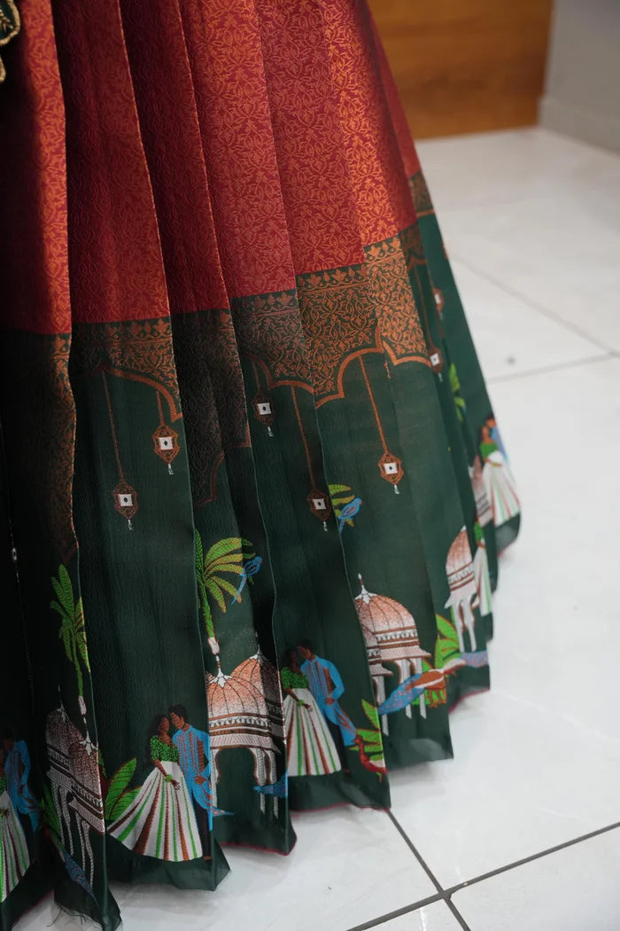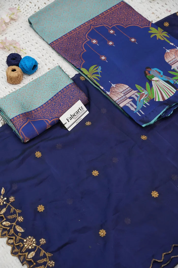 Crafted from Taffeta Satin (Litchi Silk) with intricate Zari work, offering a rich and elegant look.