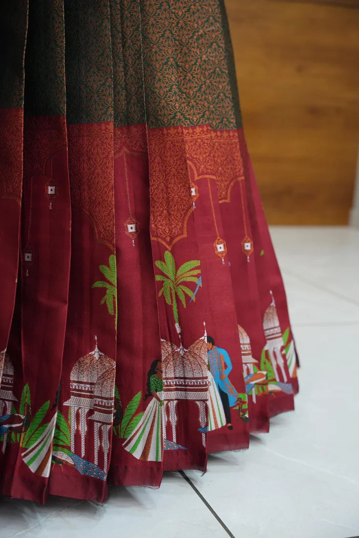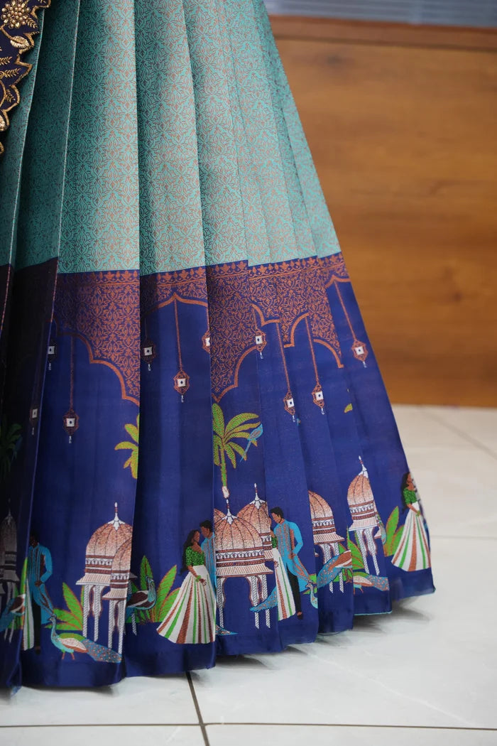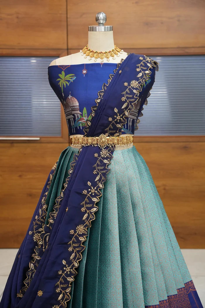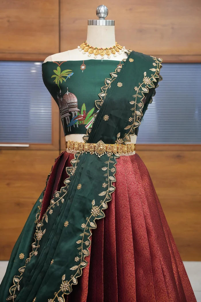 (Adhira) South Indian Festival Traditional Half Saree with Embroidered Blouse & Dupatta