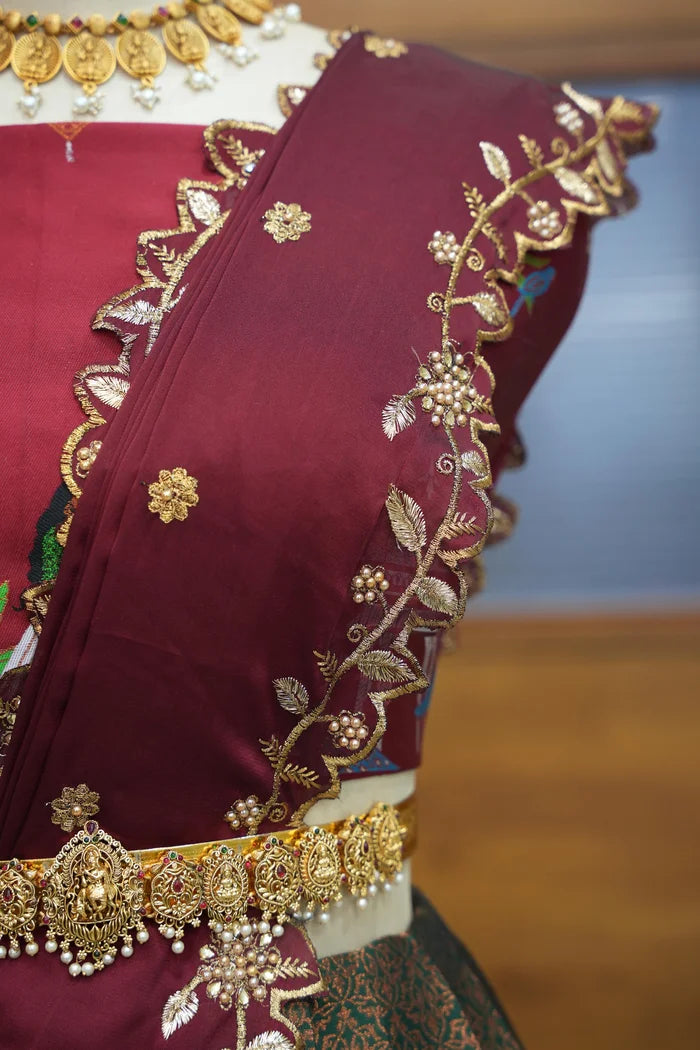(ButtaBomma) South Indian Festival Traditional Half Saree with Embroidered Blouse & Dupatta