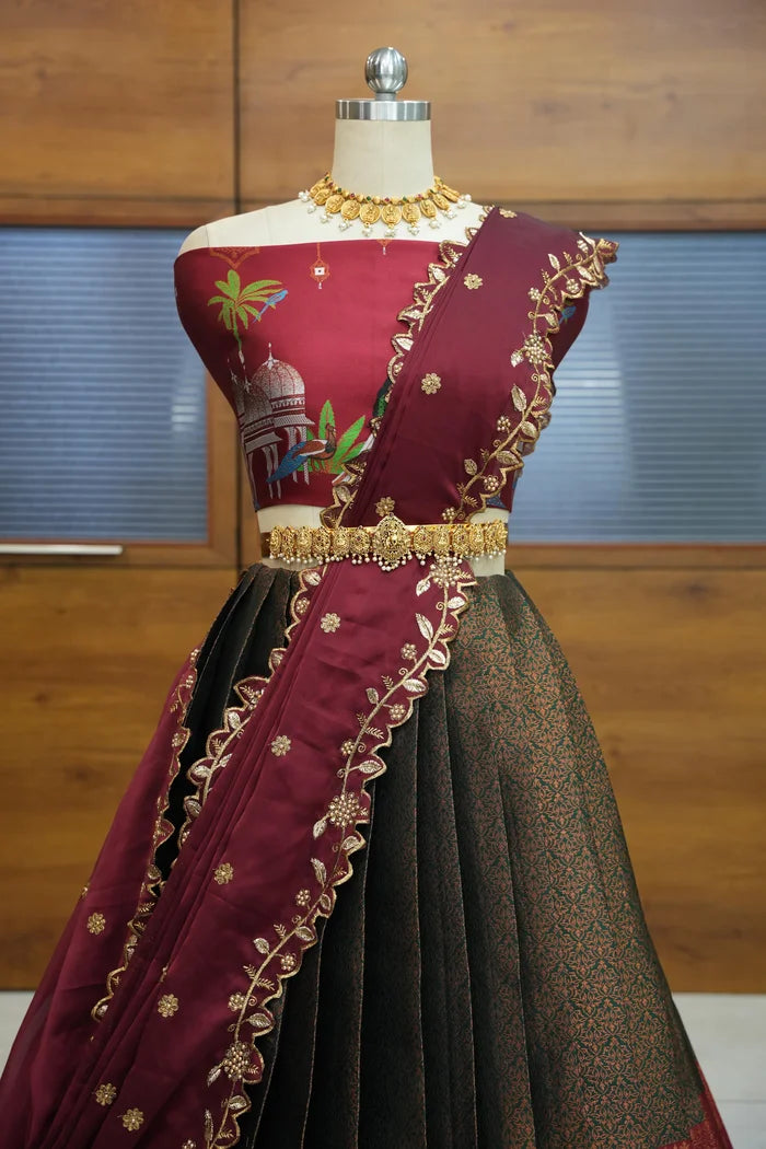 Taj Mahal Women's Woven Design zari work Half Saree with Embroidered Blouse and Dupatta