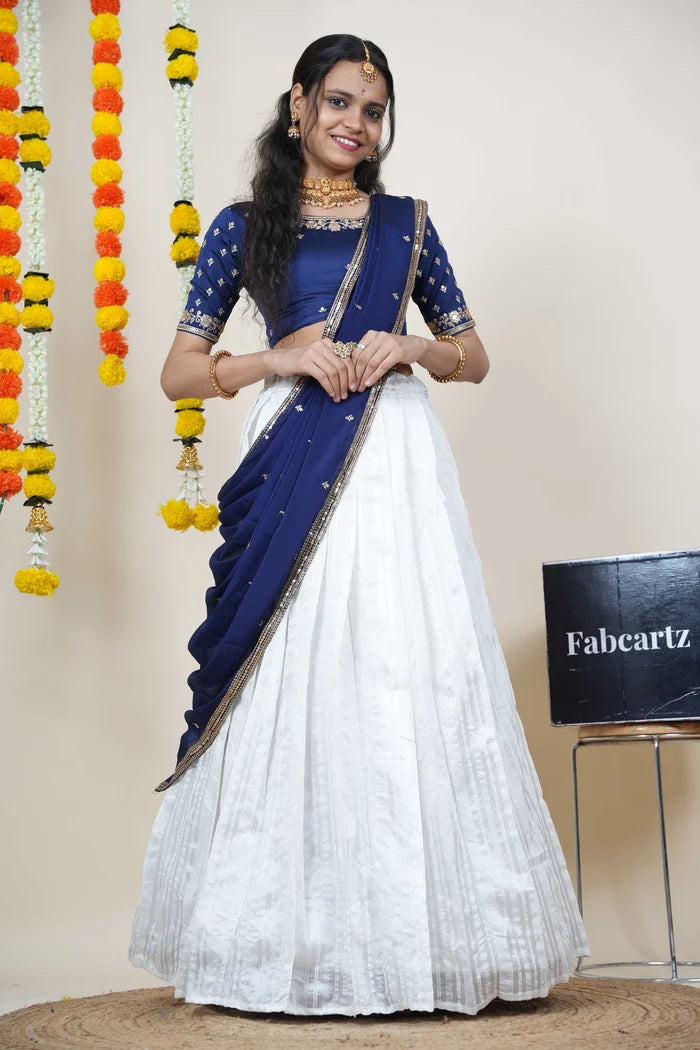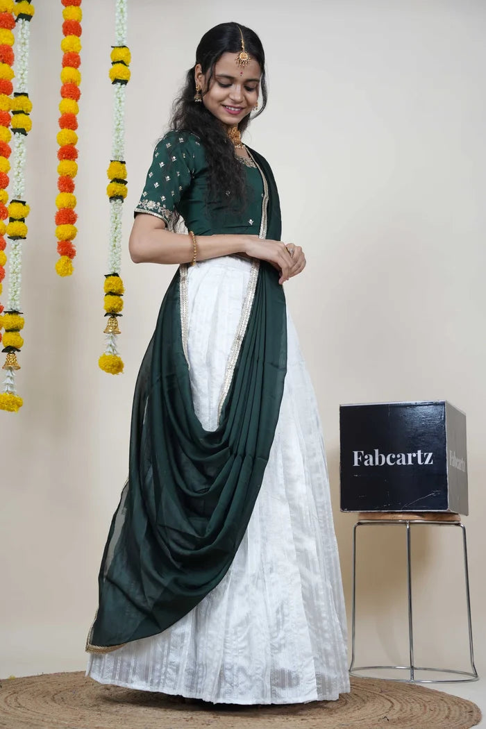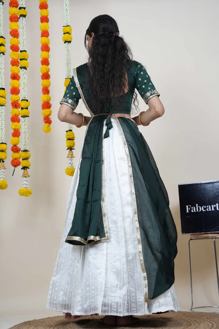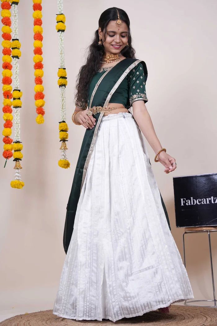 (Adhira) South Indian Festival Traditional Half Saree with Embroidered Blouse & Dupatta