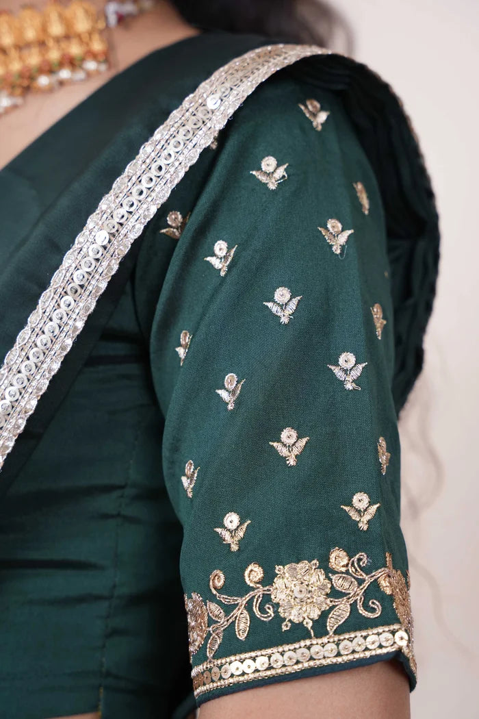 Crafted from Taffeta Satin (Litchi Silk) with intricate Zari work, offering a rich and elegant look.