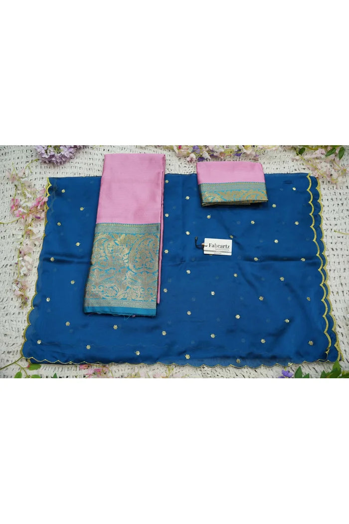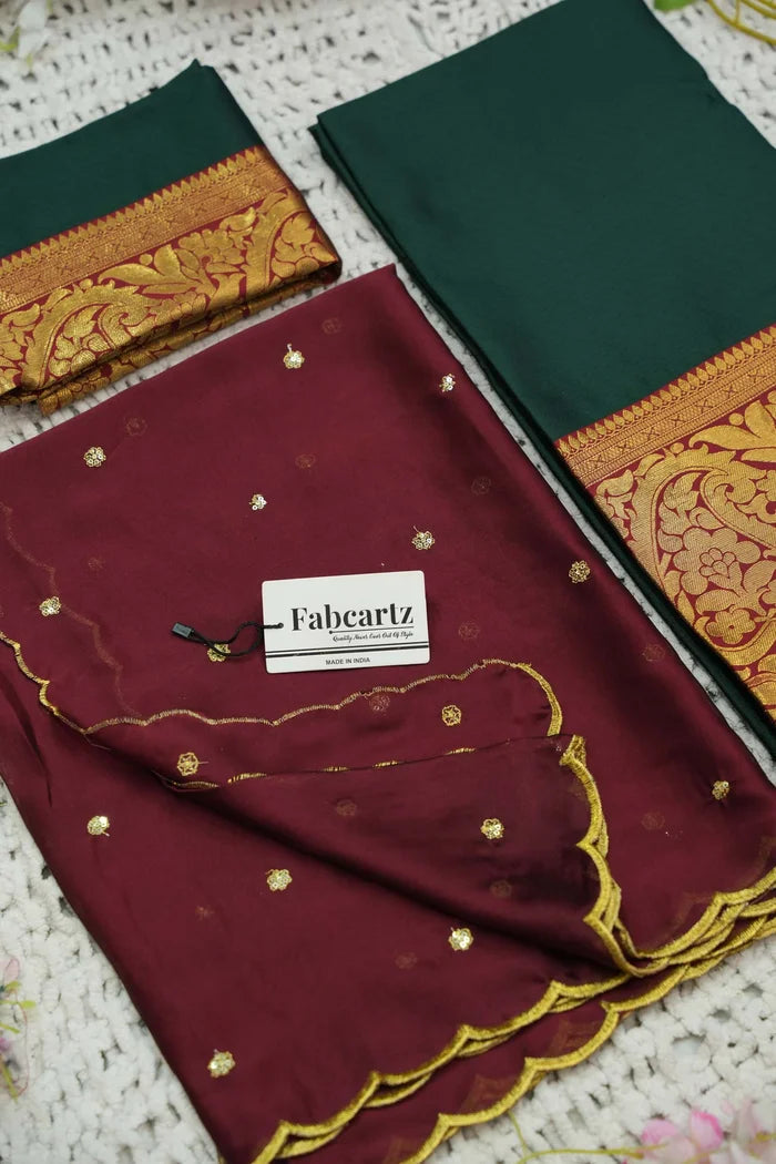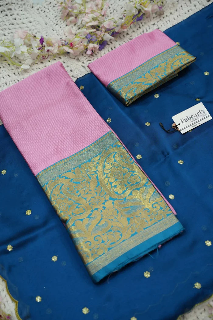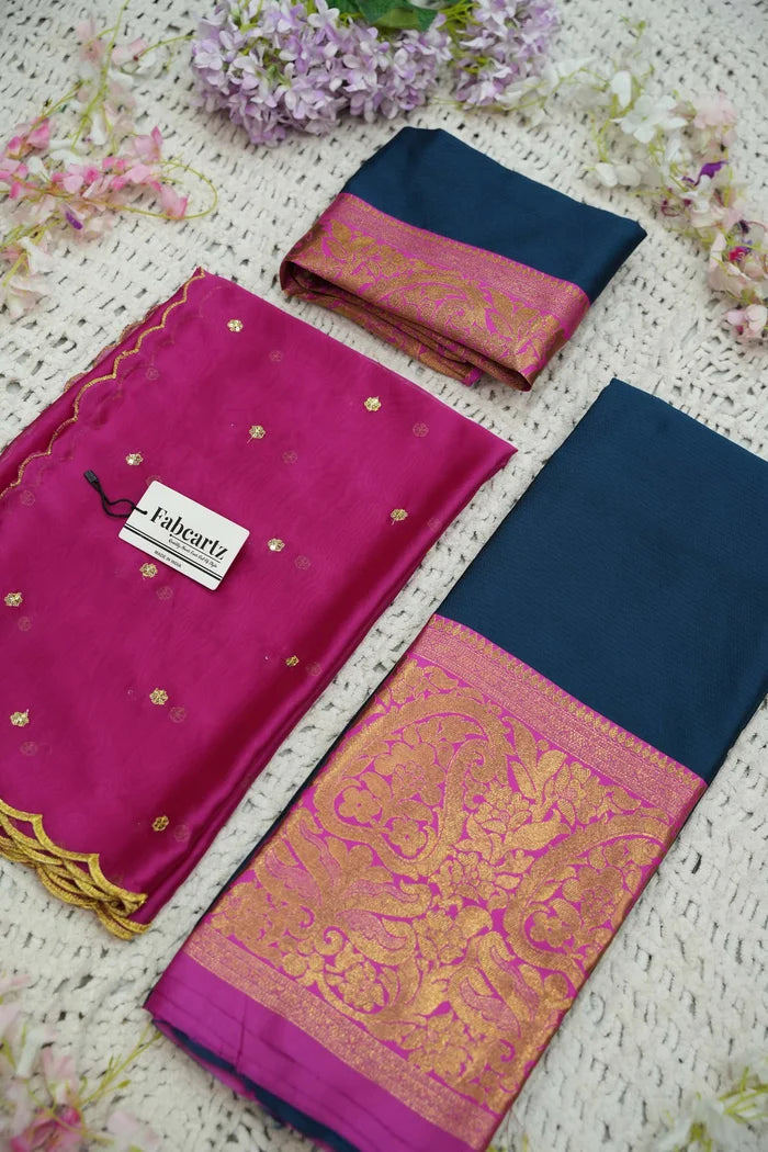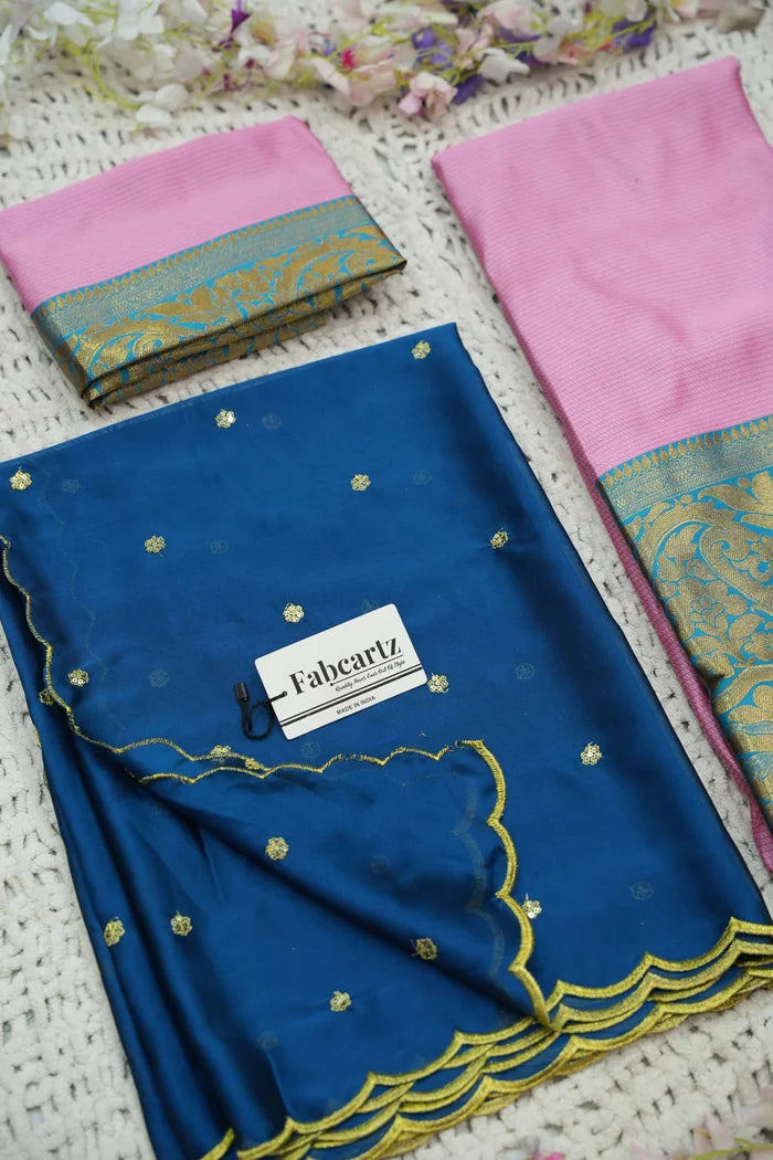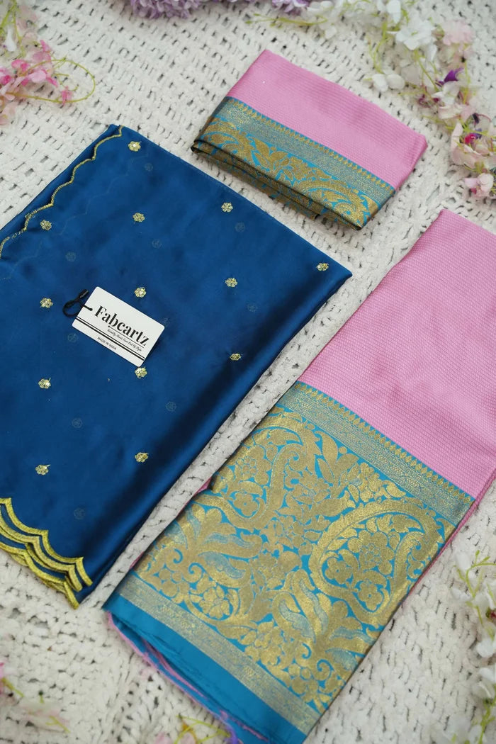 Crafted from Taffeta Satin (Litchi Silk) with intricate Zari work, offering a rich and elegant look.