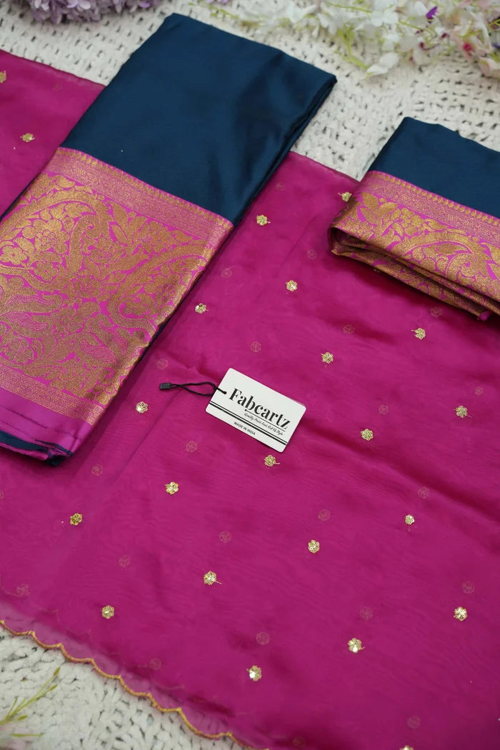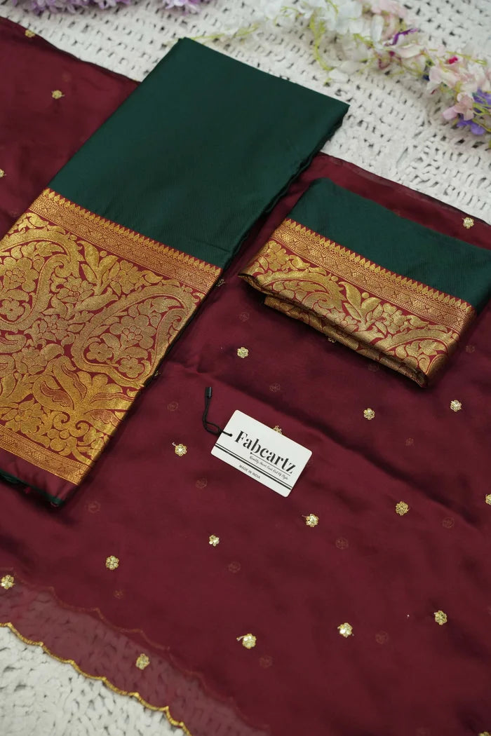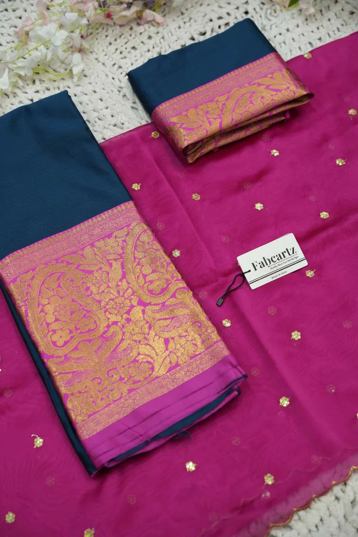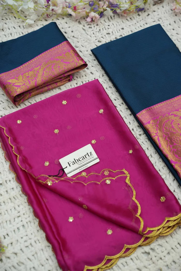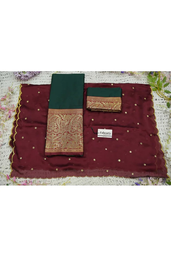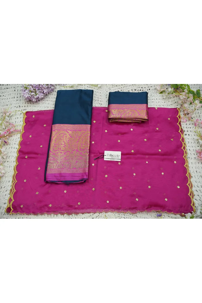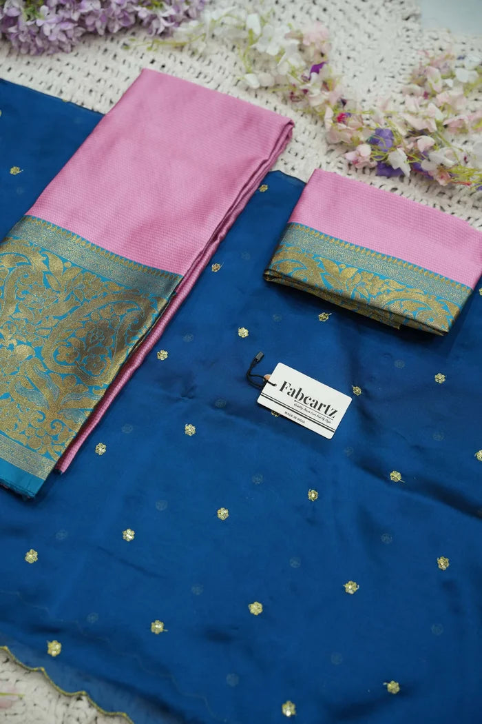 Crafted from Taffeta Satin (Litchi Silk) with intricate Zari work, offering a rich and elegant look.