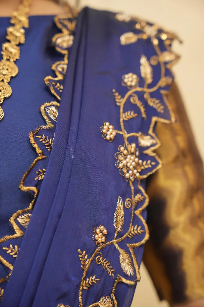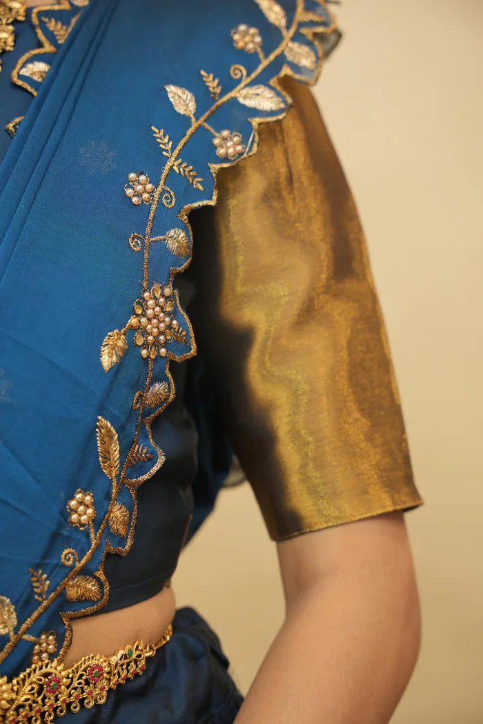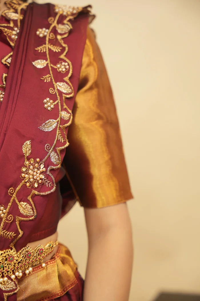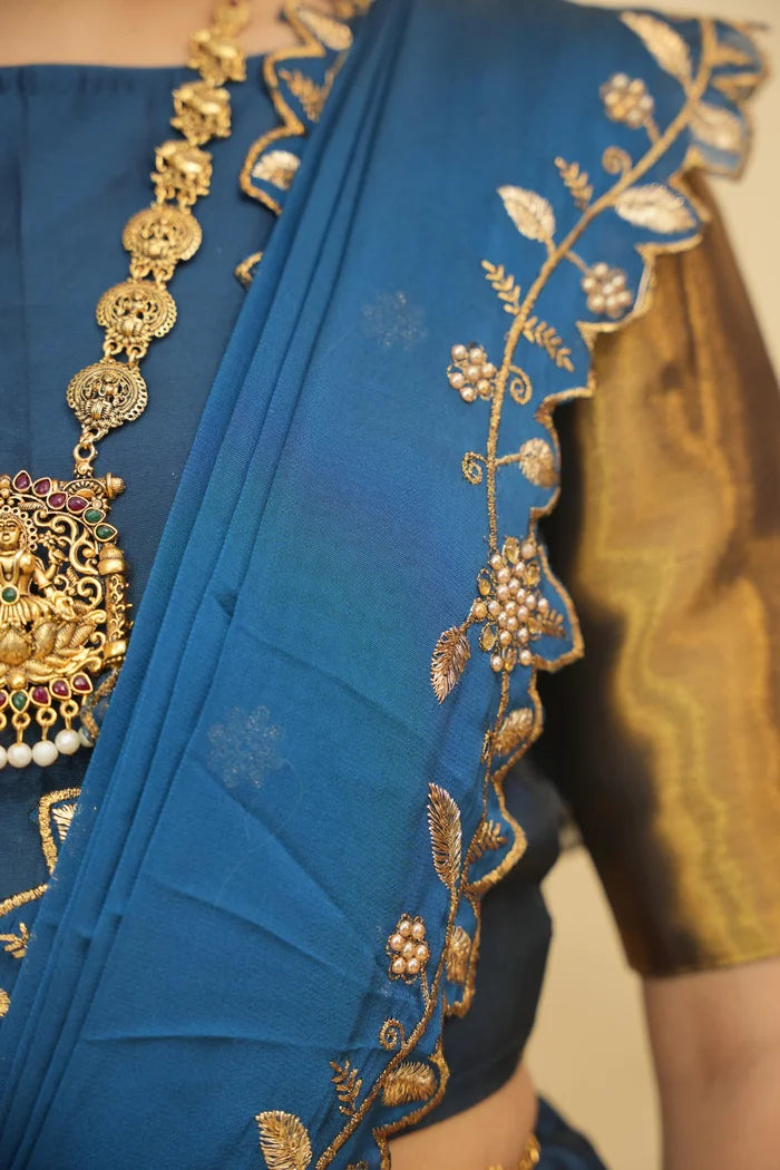 Crafted from Taffeta Satin (Litchi Silk) with intricate Zari work, offering a rich and elegant look.