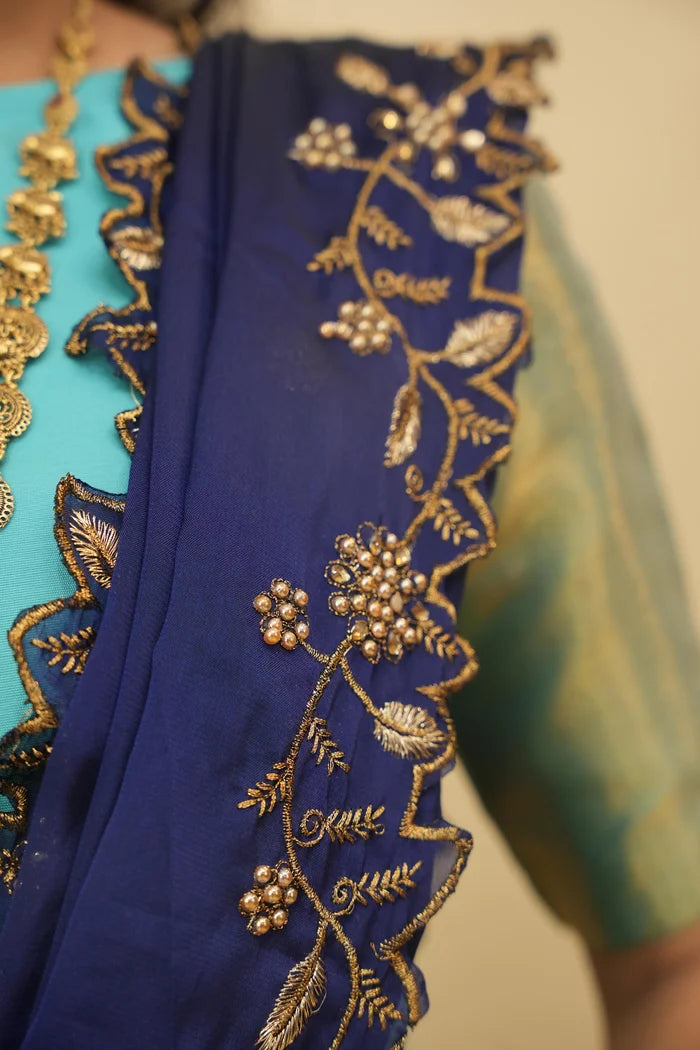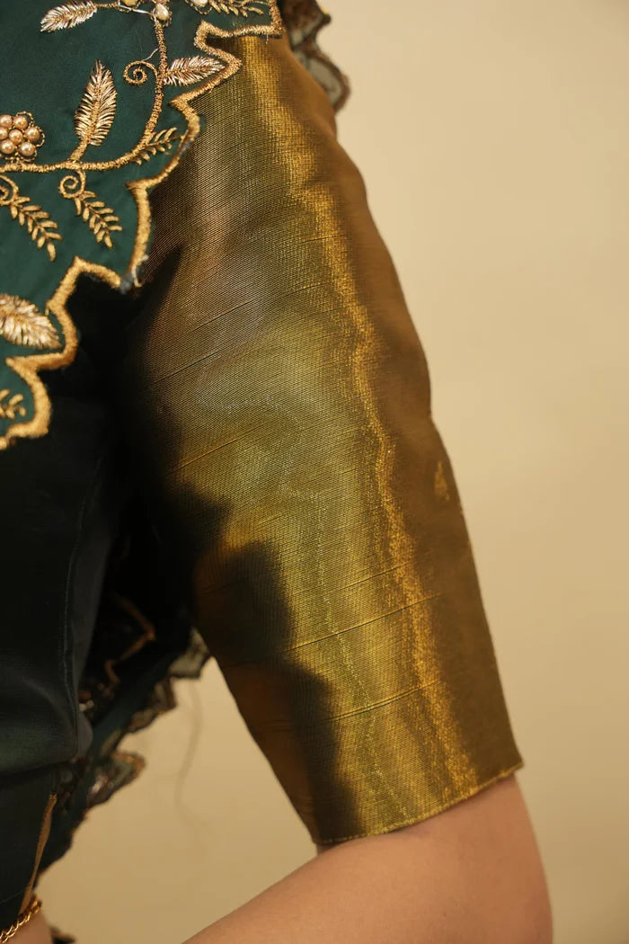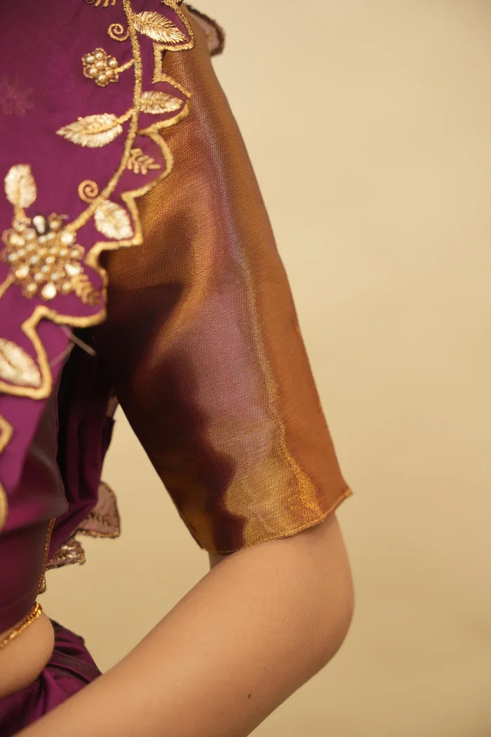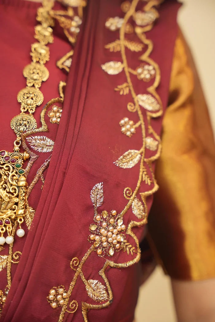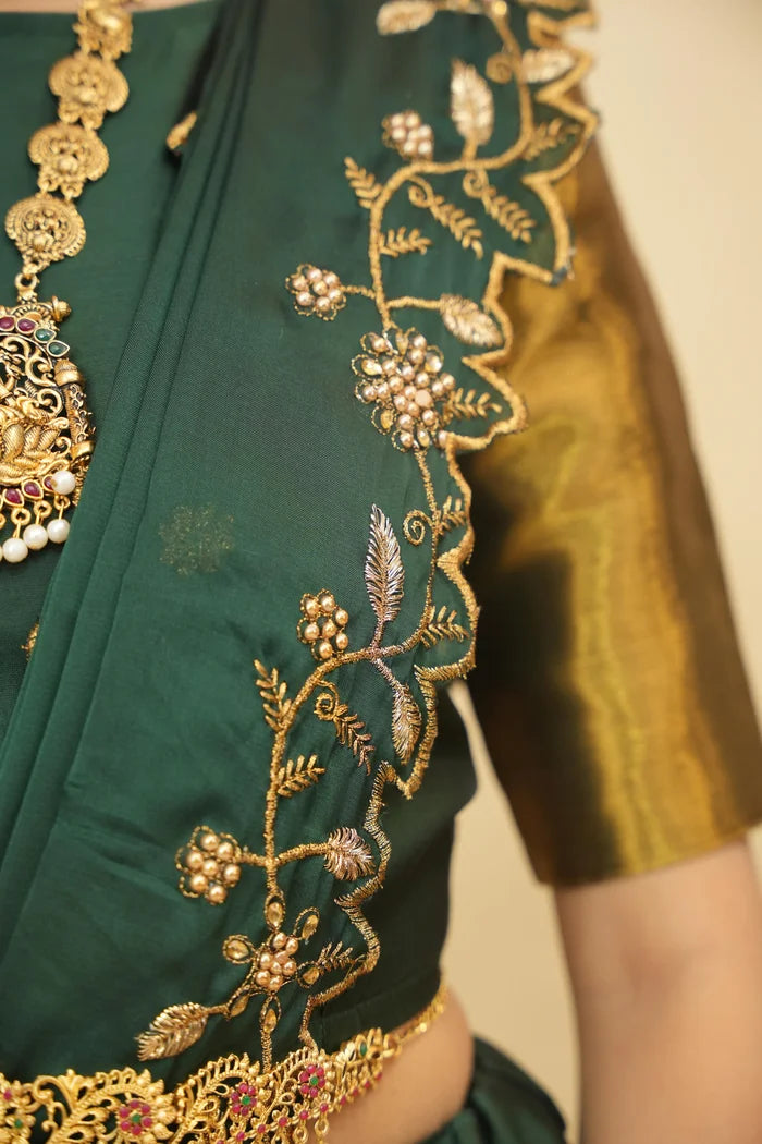 Crafted from Taffeta Satin (Litchi Silk) with intricate Zari work, offering a rich and elegant look.