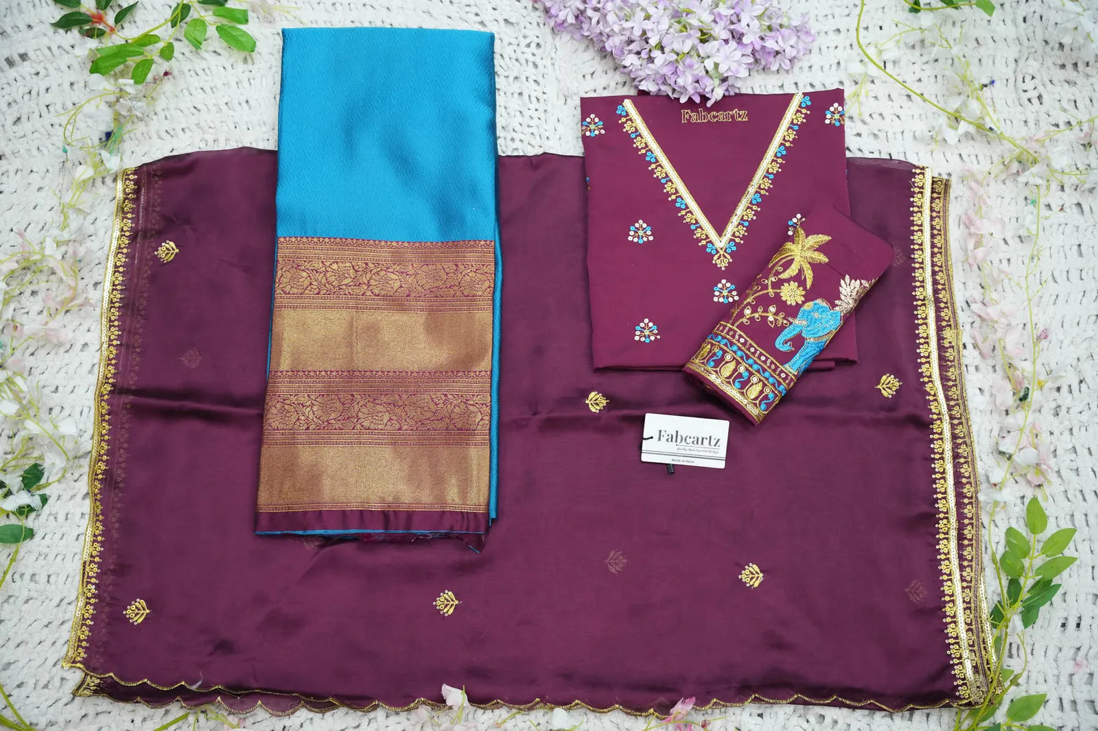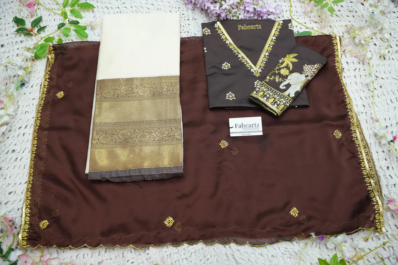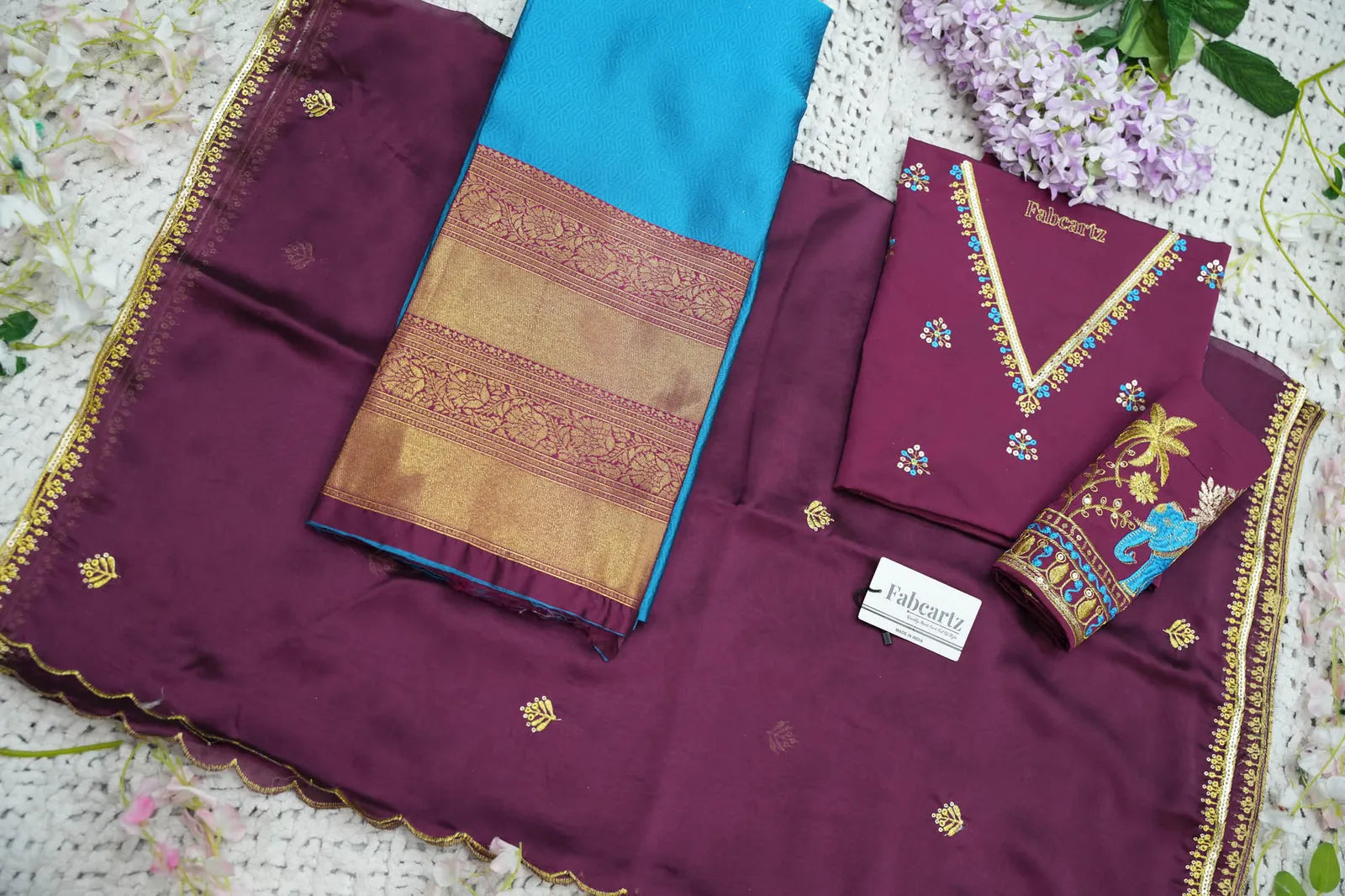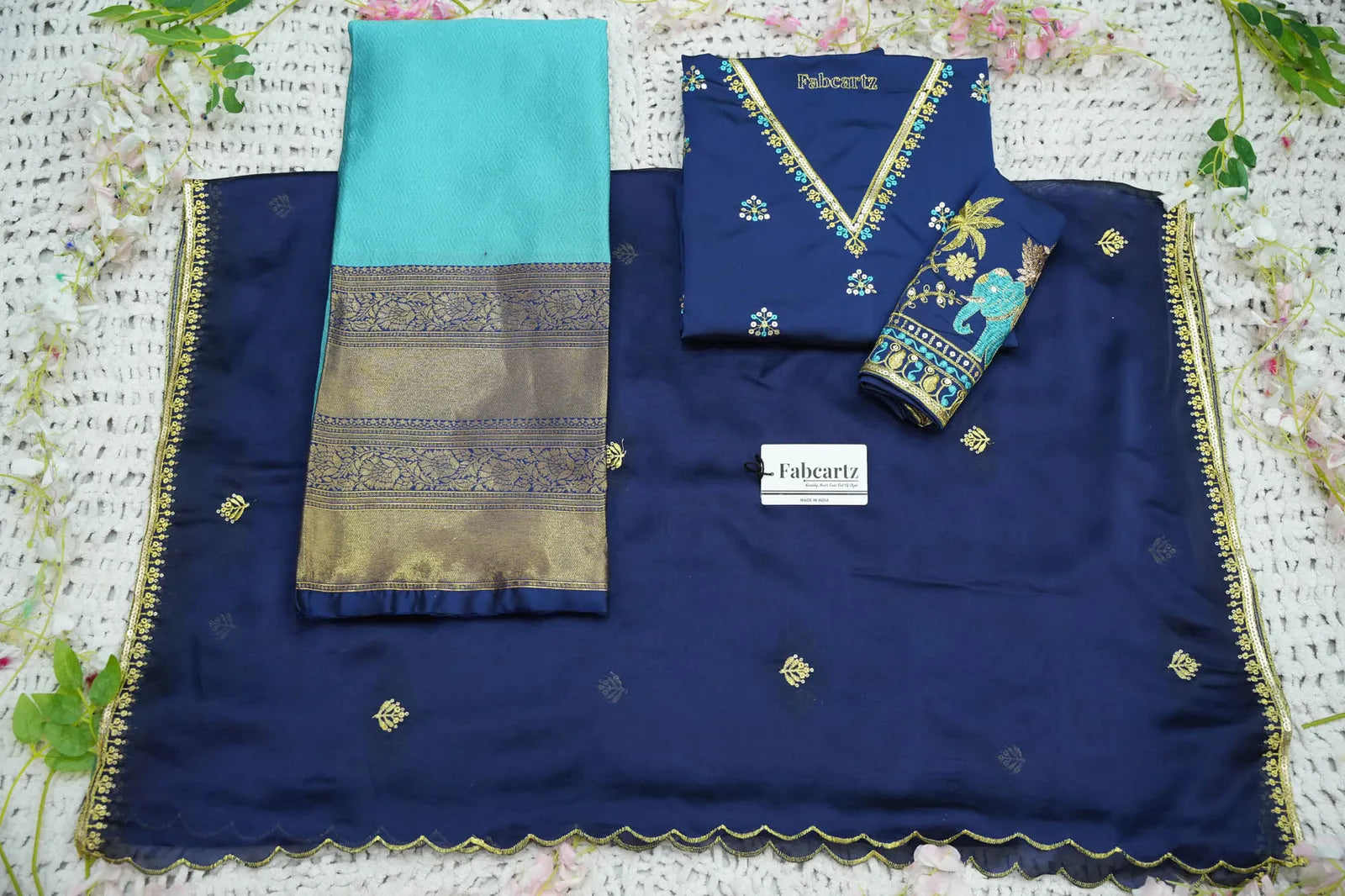 Crafted from Taffeta Satin (Litchi Silk) with intricate Zari work, offering a rich and elegant look.