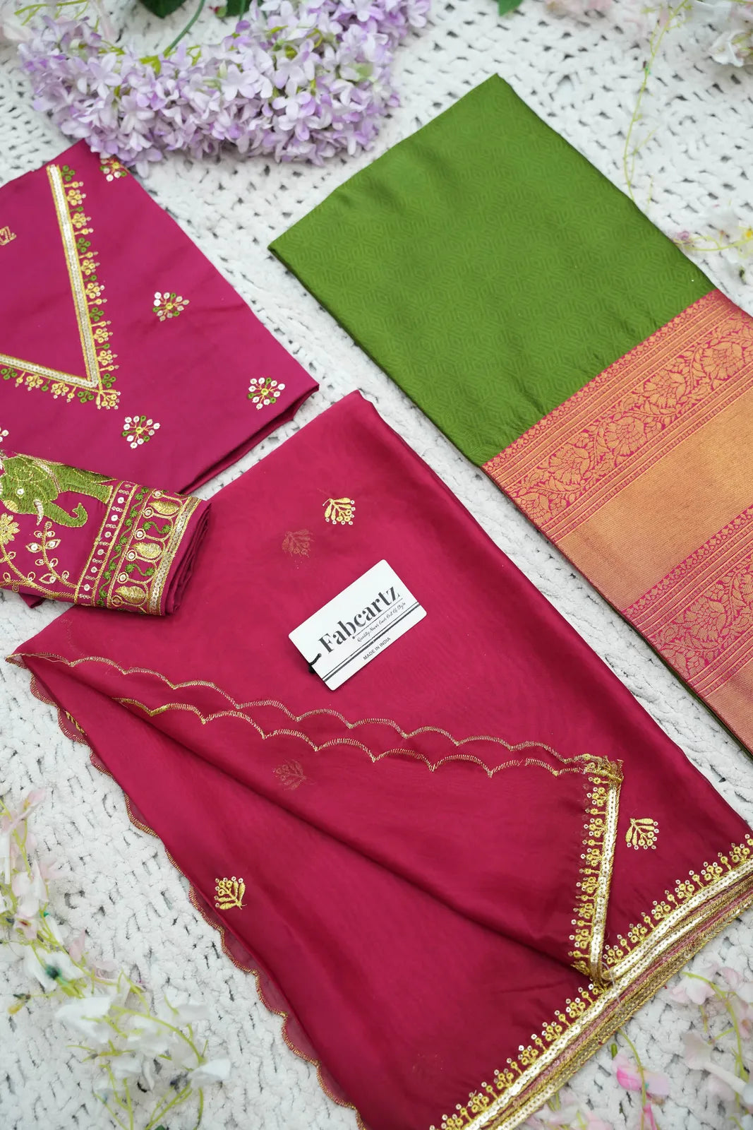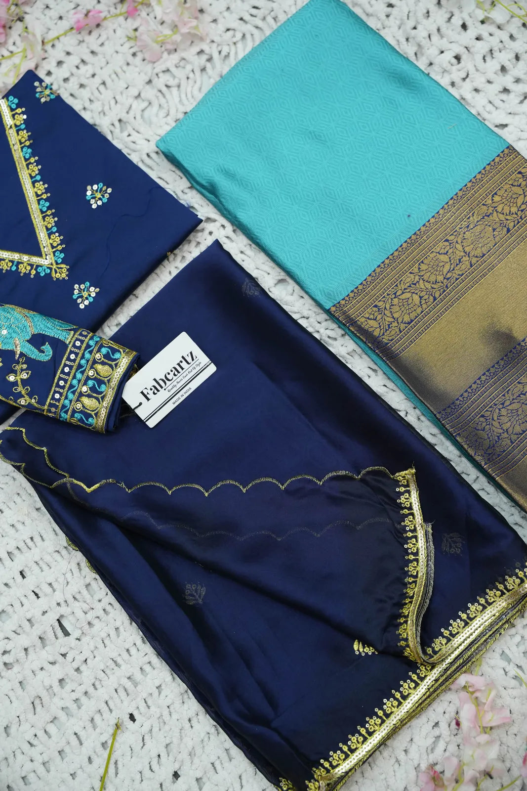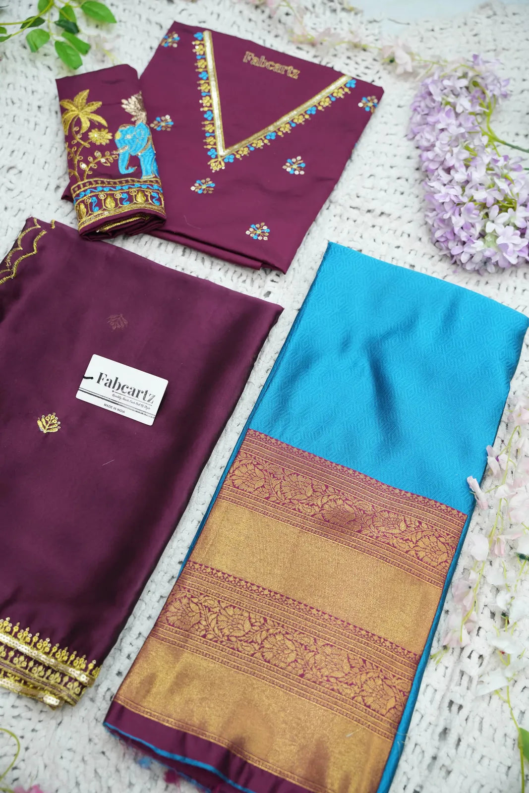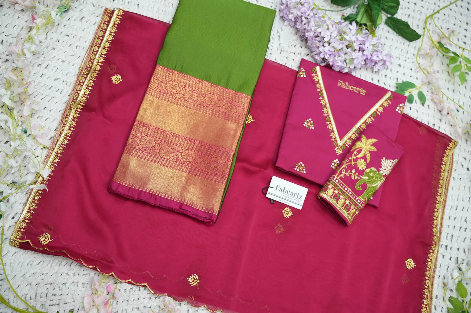 Crafted from Taffeta Satin (Litchi Silk) with intricate Zari work, offering a rich and elegant look.