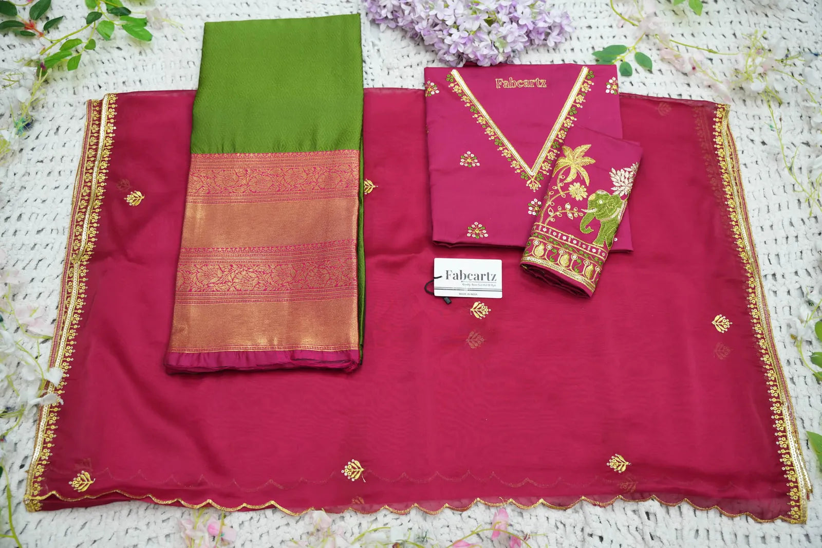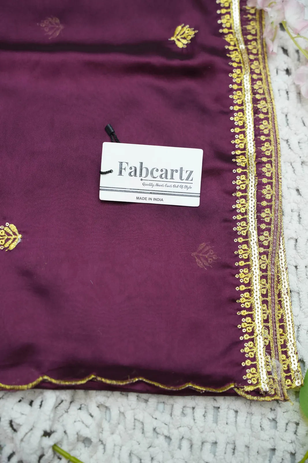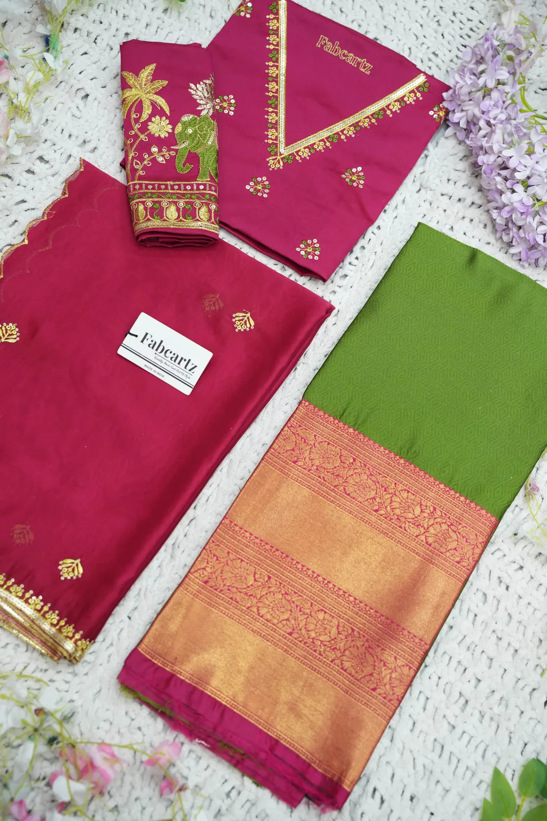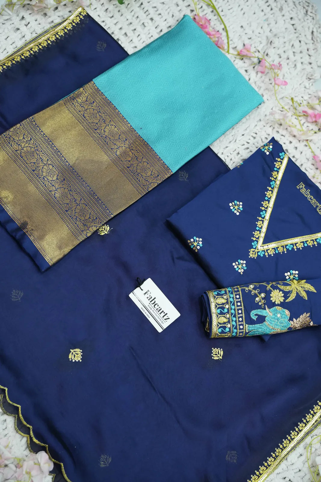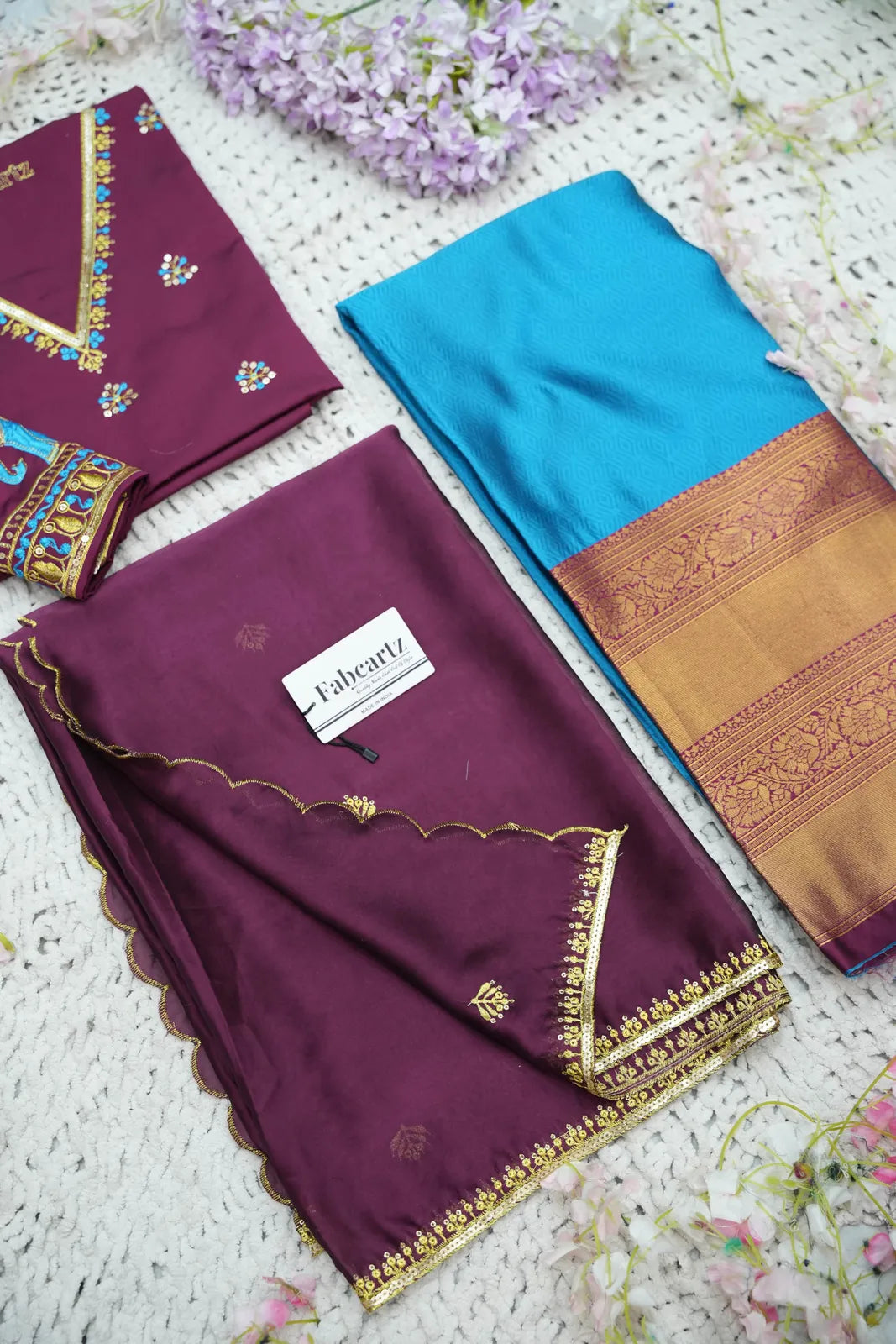 Crafted from Taffeta Satin (Litchi Silk) with intricate Zari work, offering a rich and elegant look.