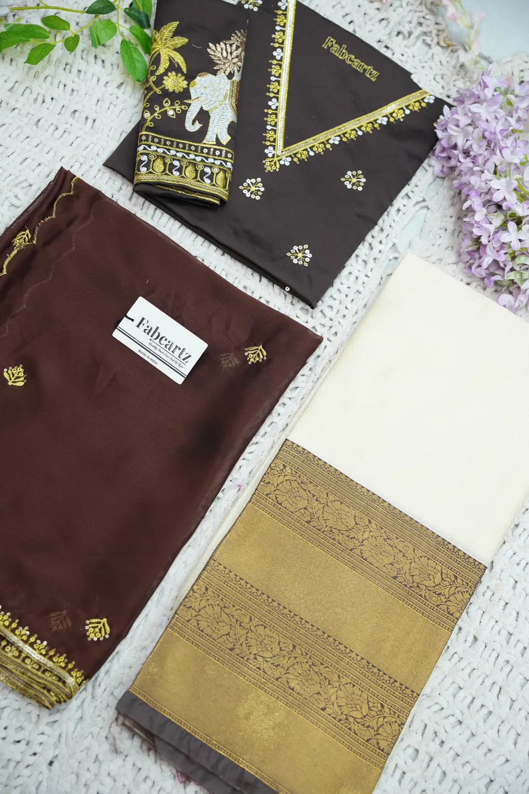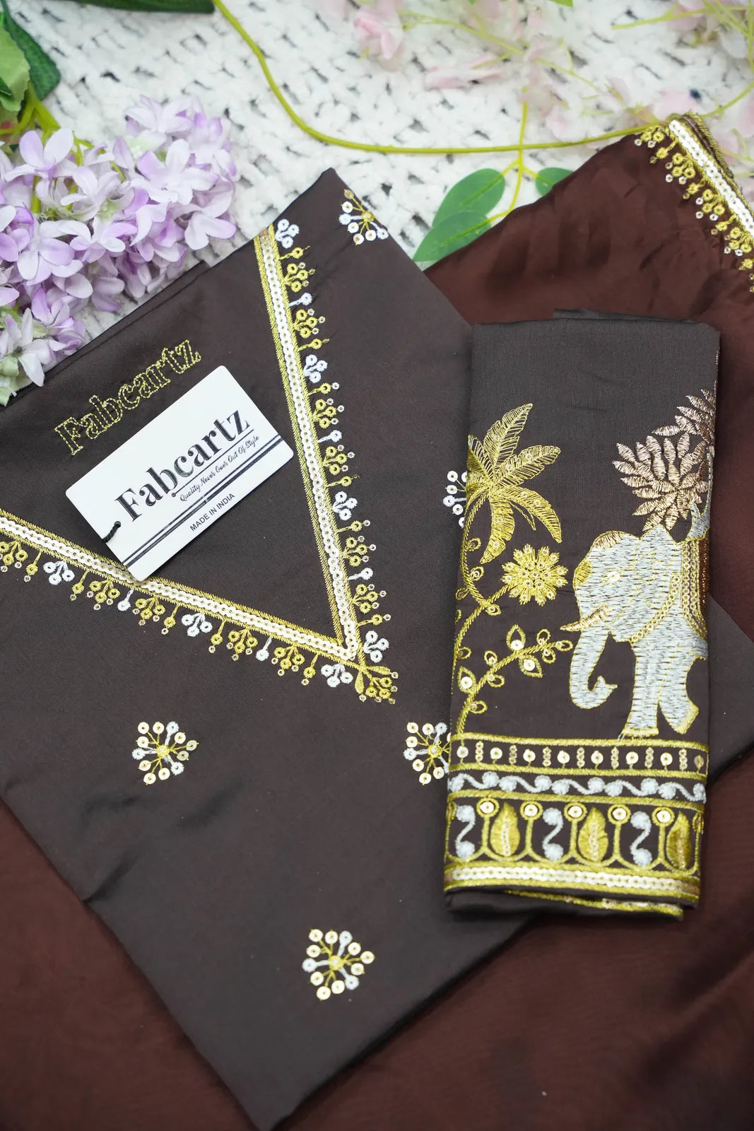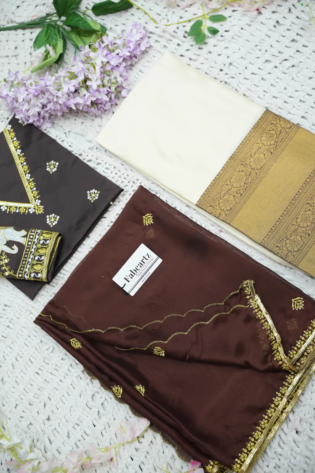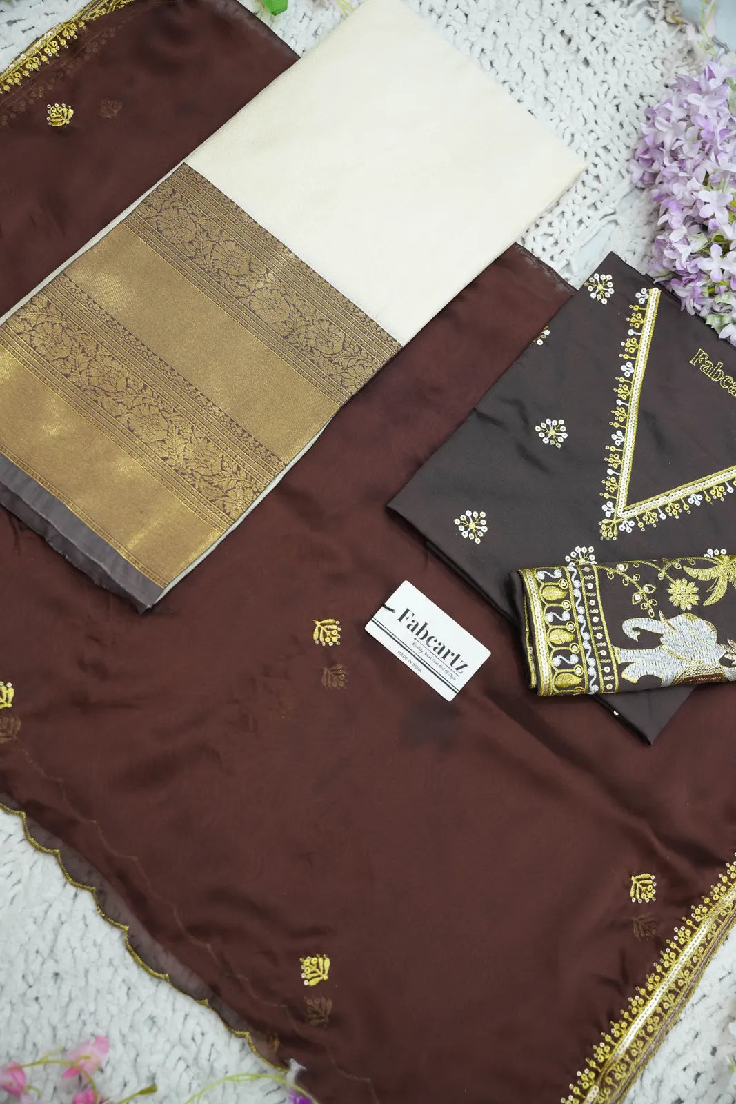 Crafted from Taffeta Satin (Litchi Silk) with intricate Zari work, offering a rich and elegant look.