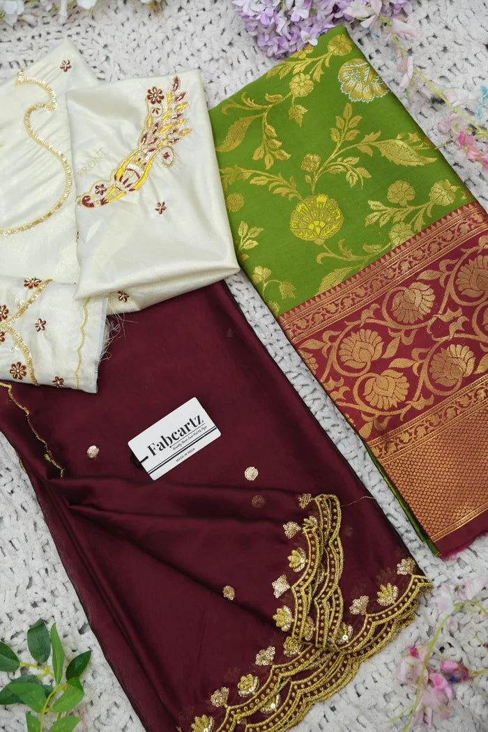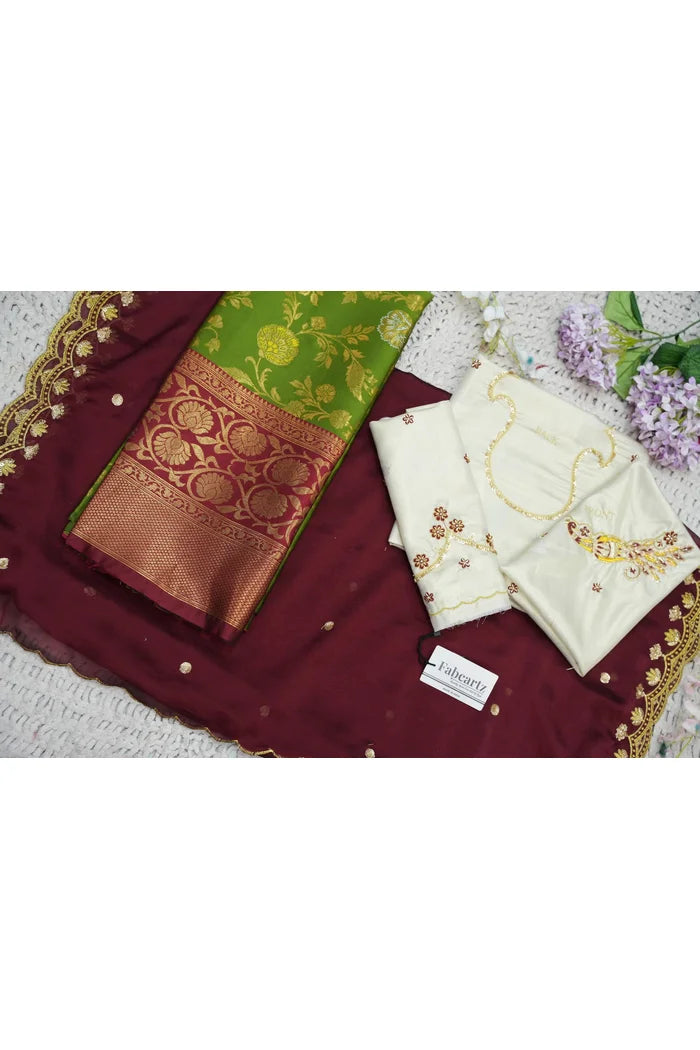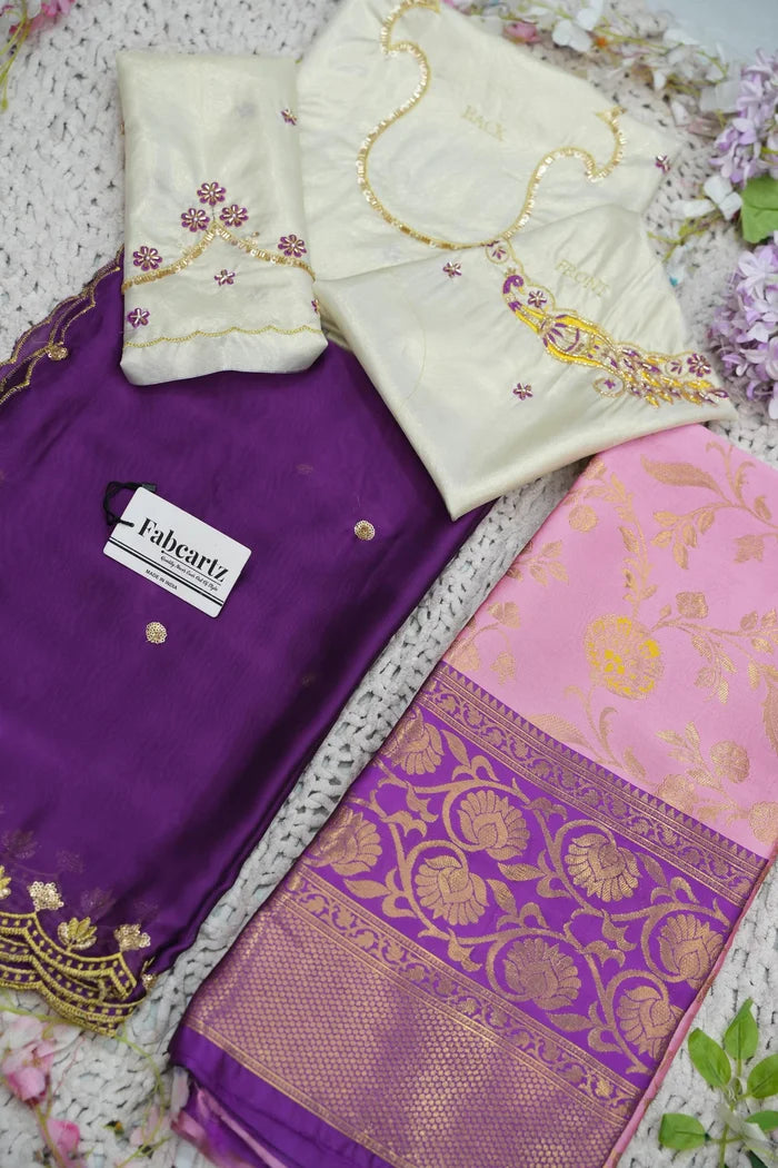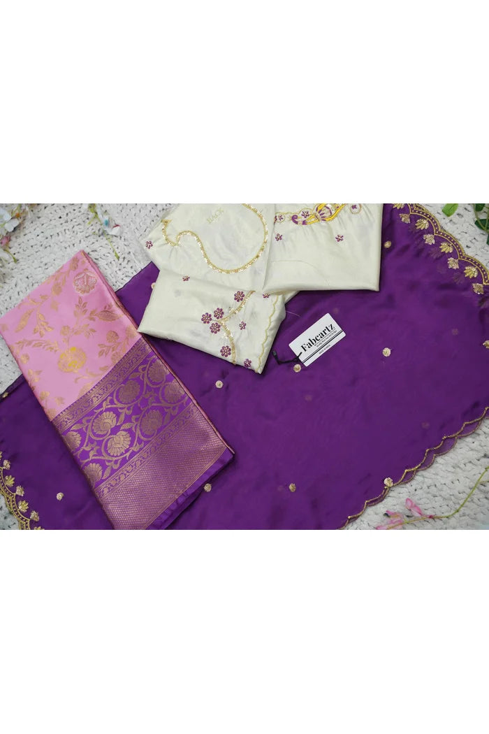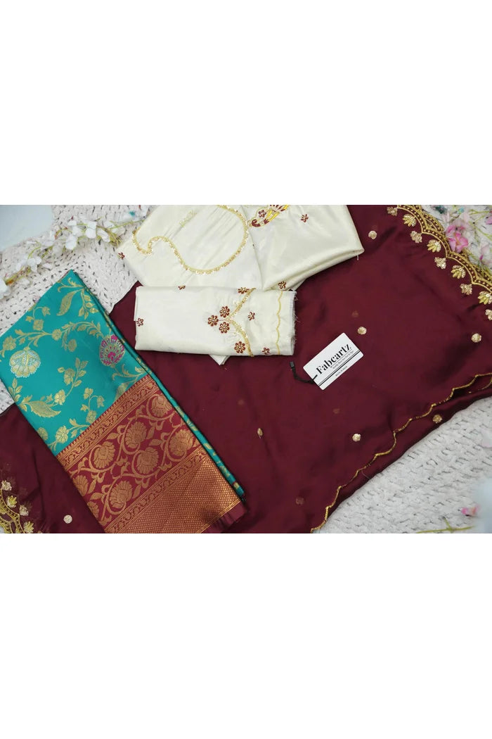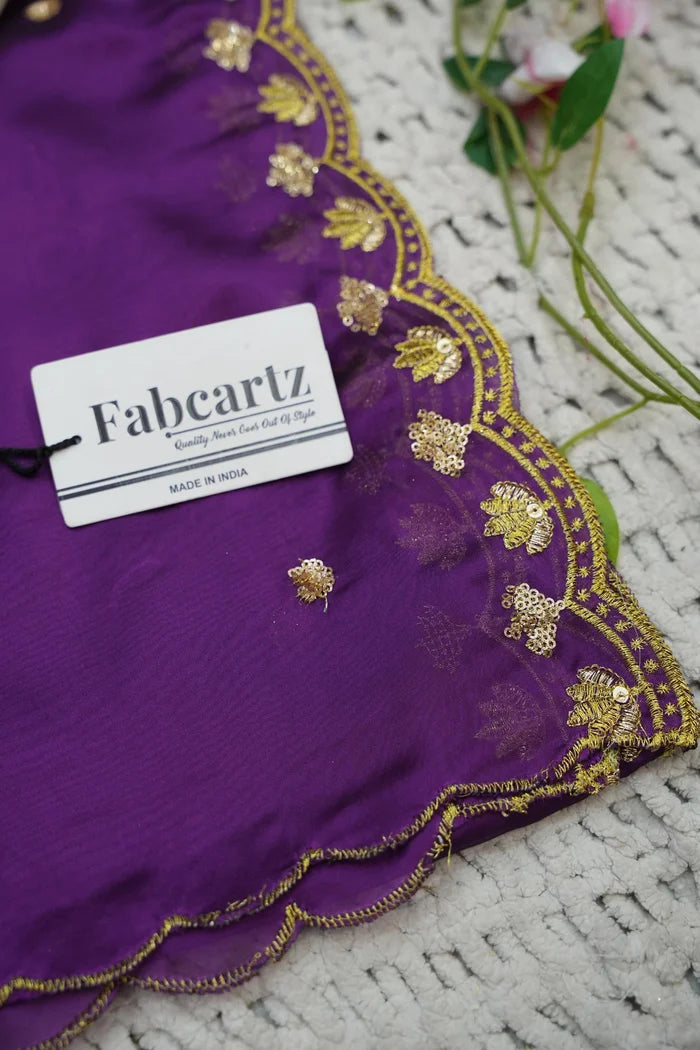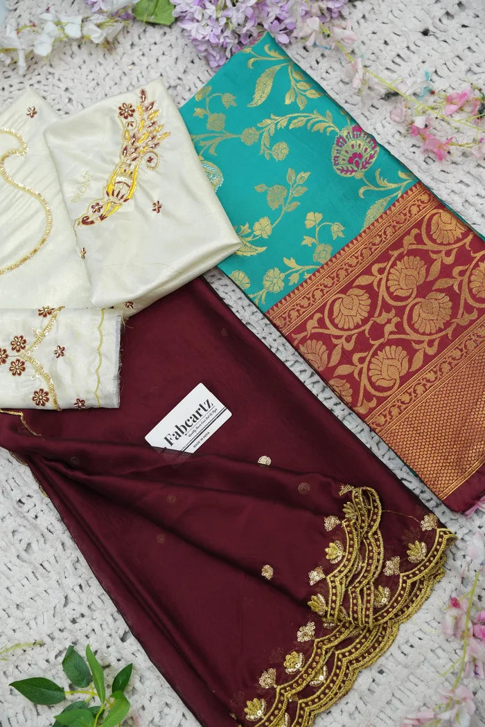 Crafted from Taffeta Satin (Lichi Silk) with intricate Zari work, offering a rich and elegant look.