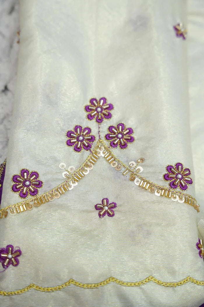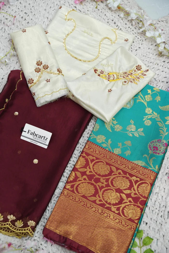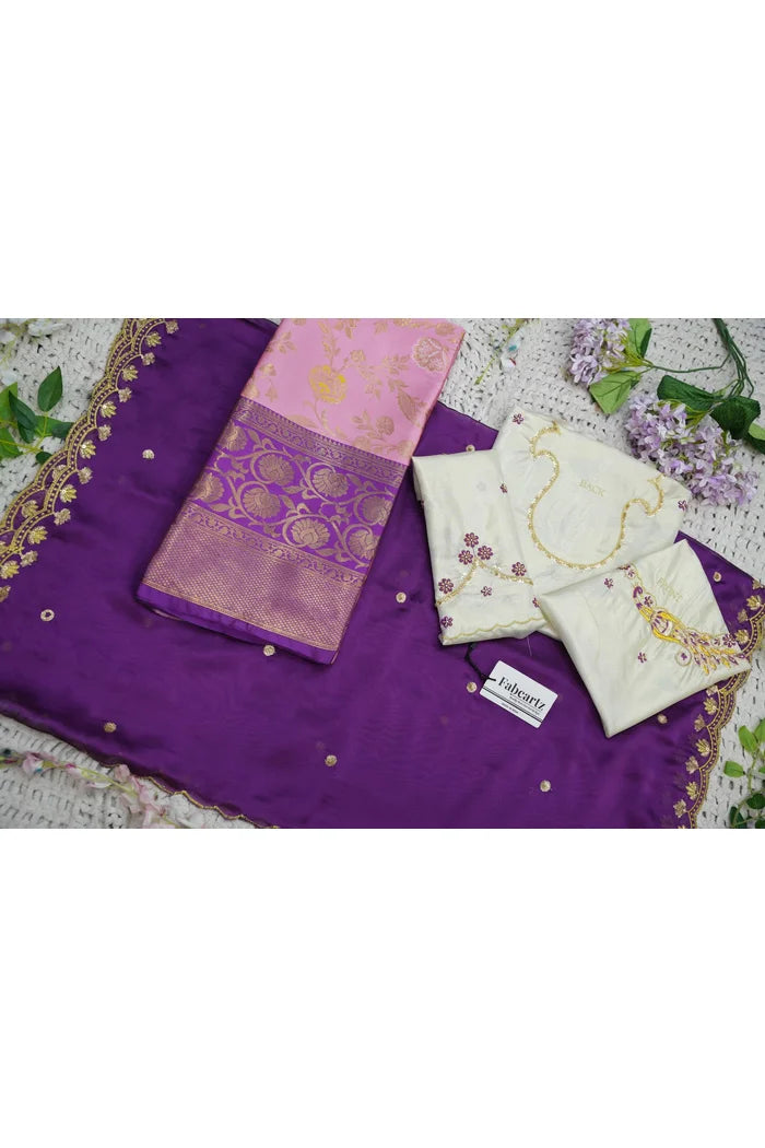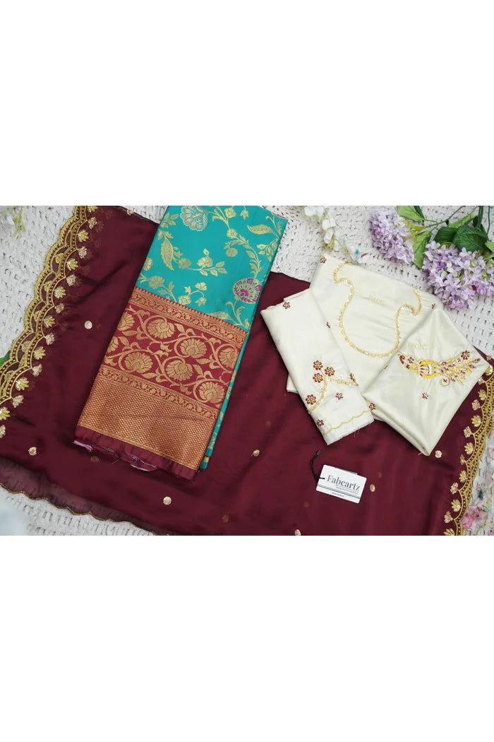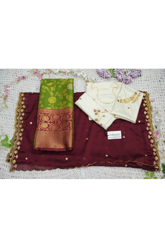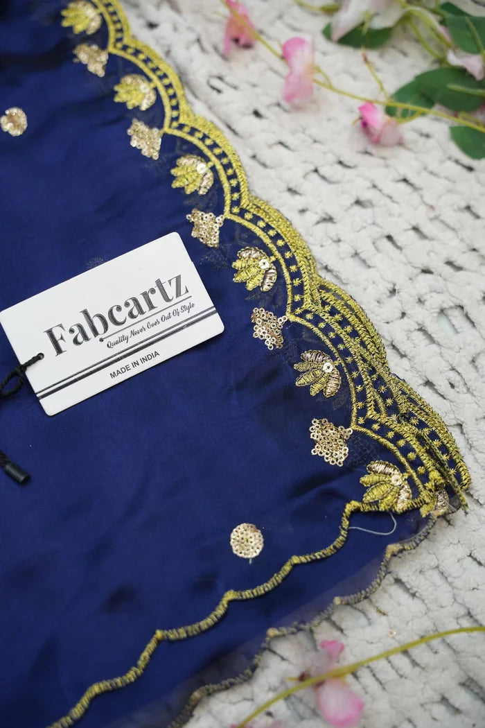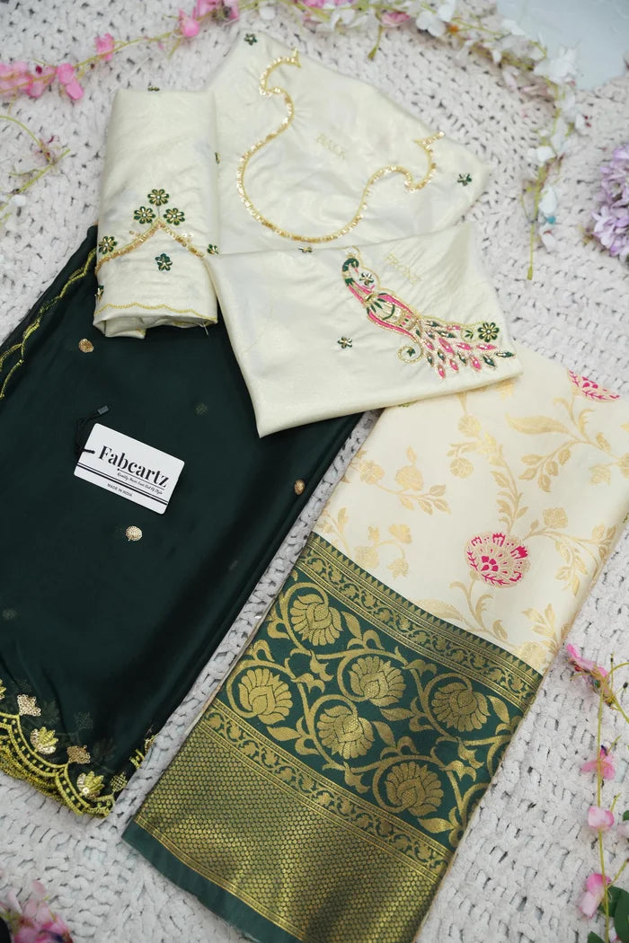 Crafted from Taffeta Satin (Lichi Silk) with intricate Zari work, offering a rich and elegant look.