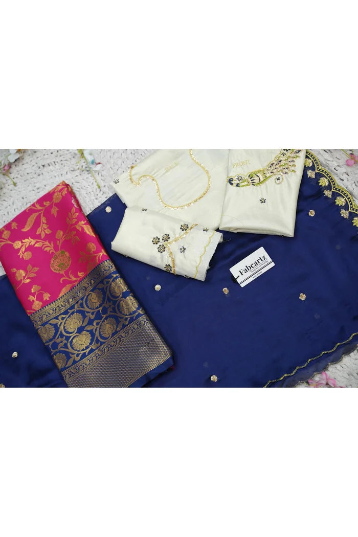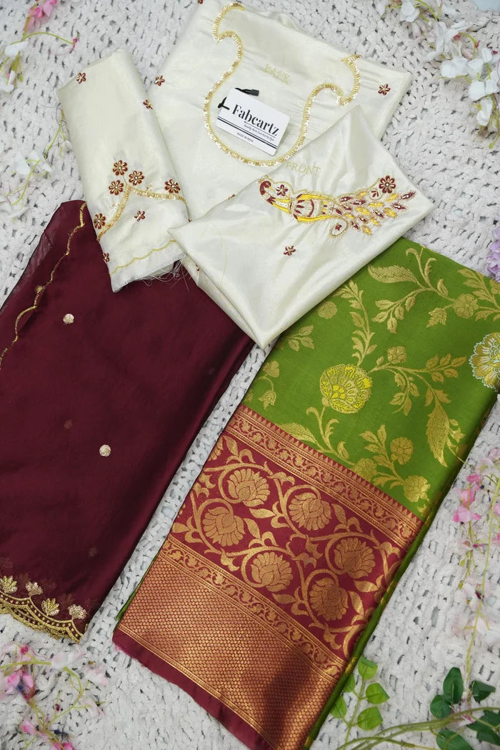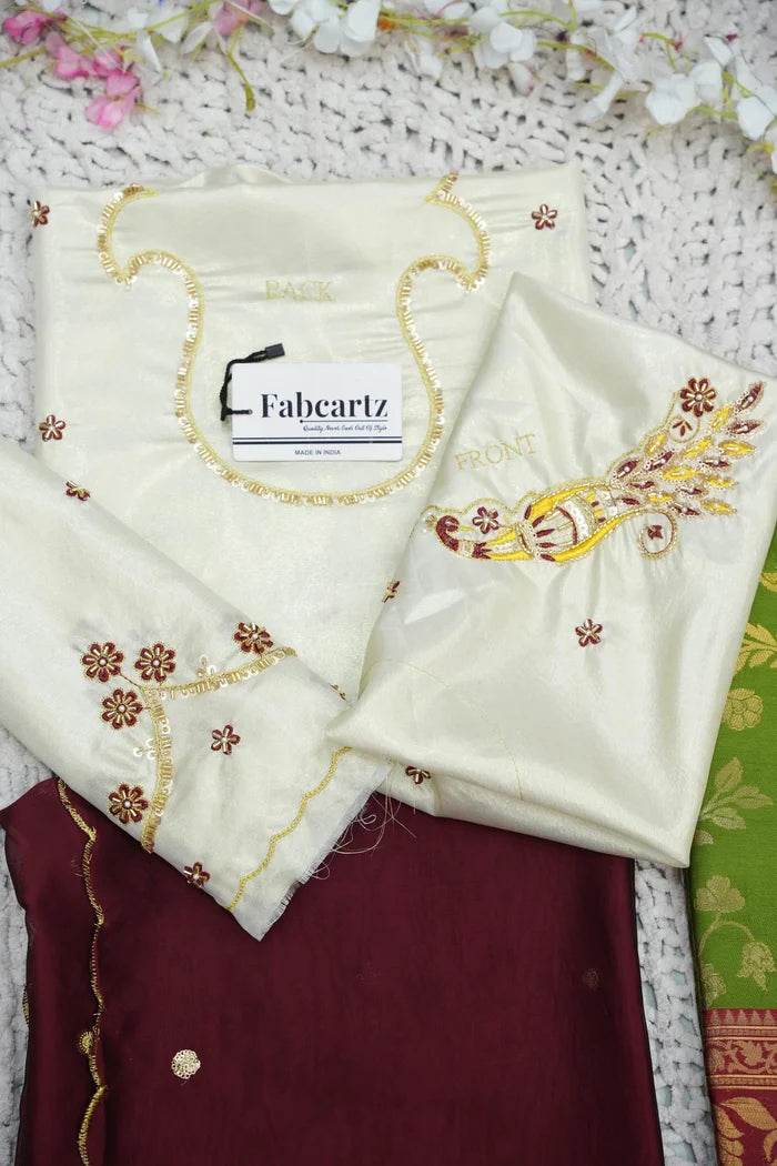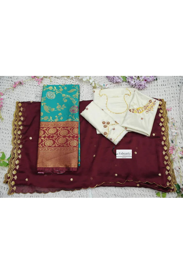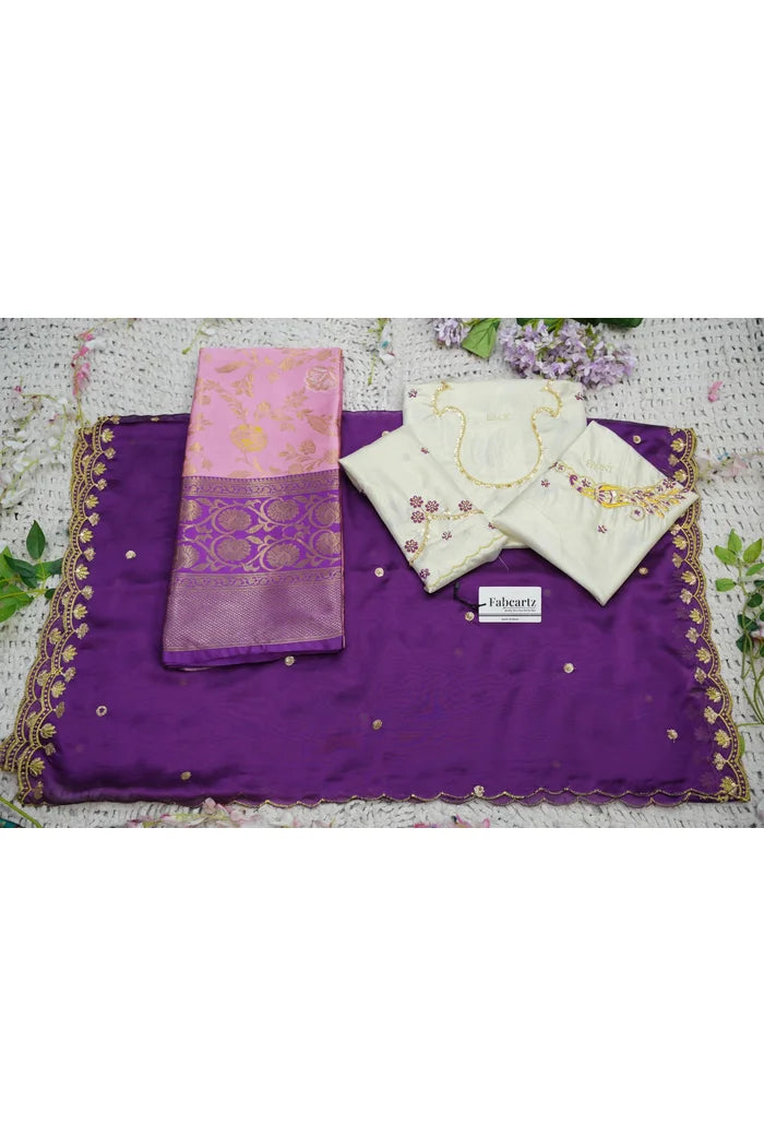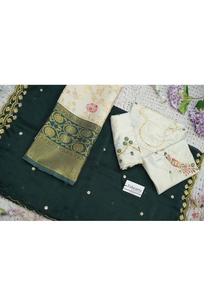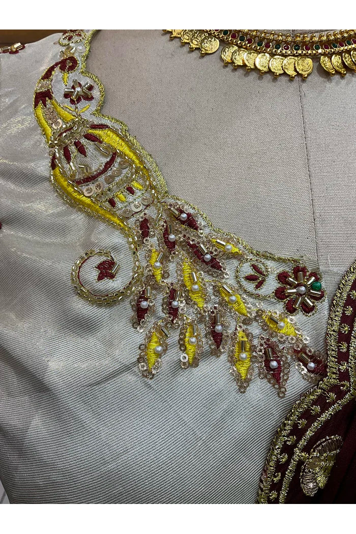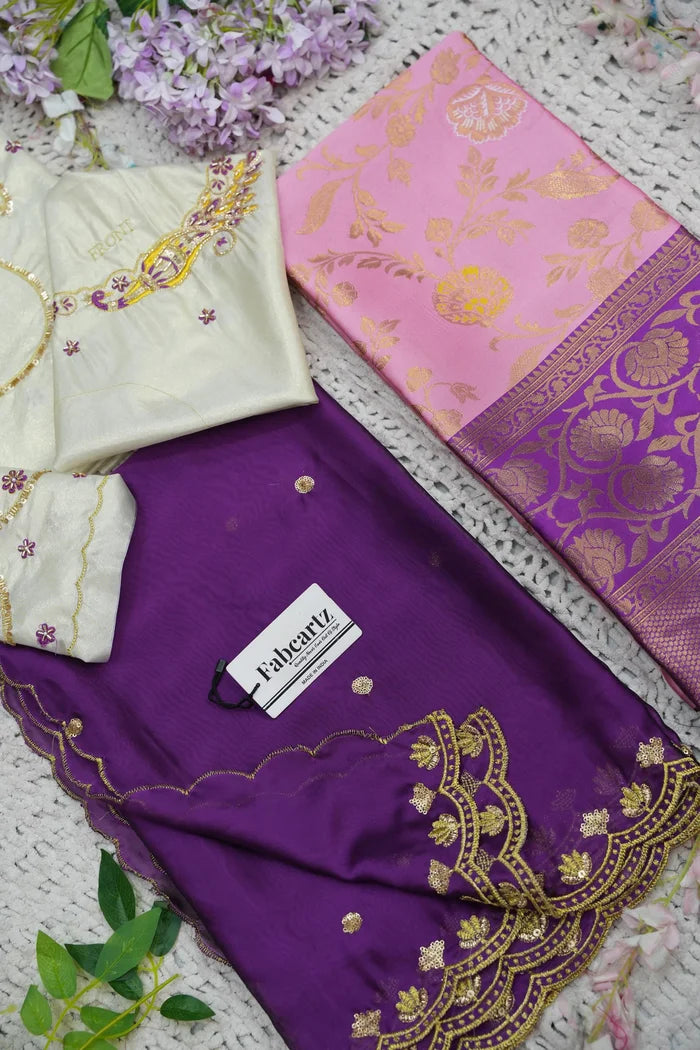 Crafted from Taffeta Satin (Lichi Silk) with intricate Zari work, offering a rich and elegant look.